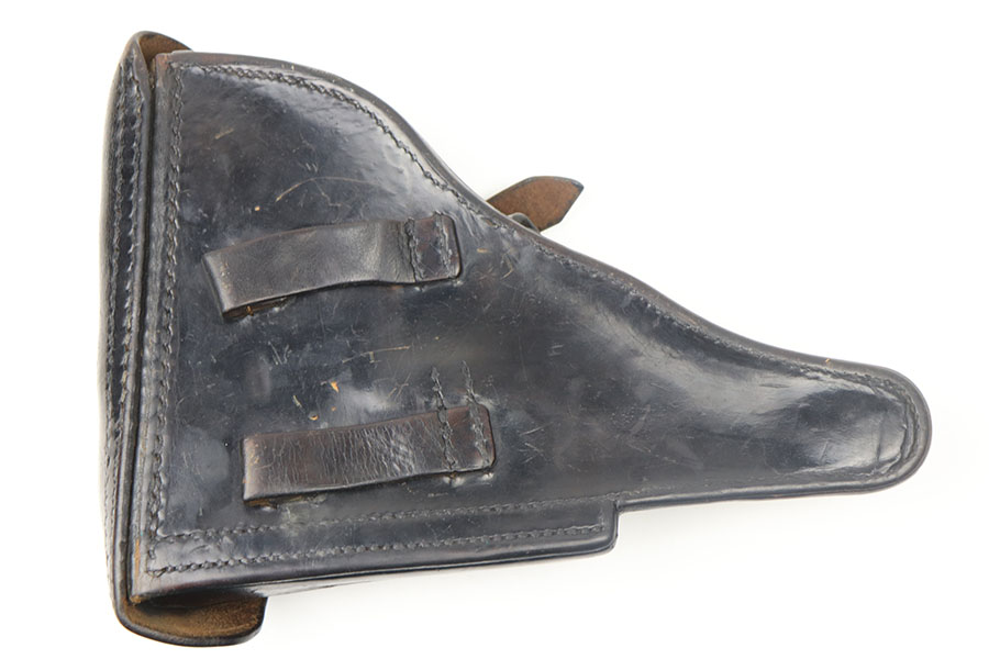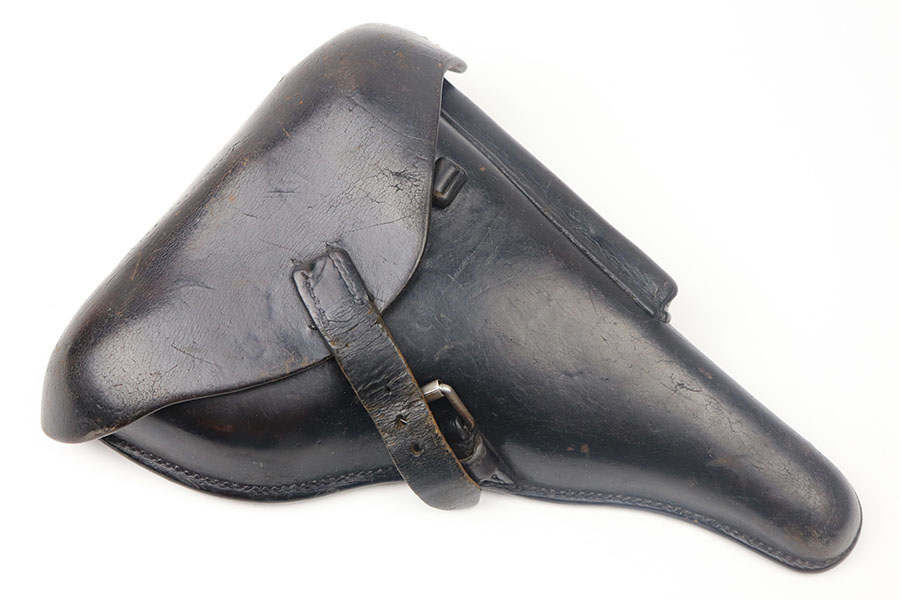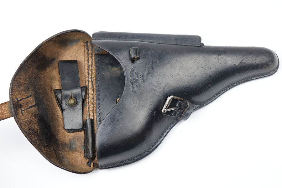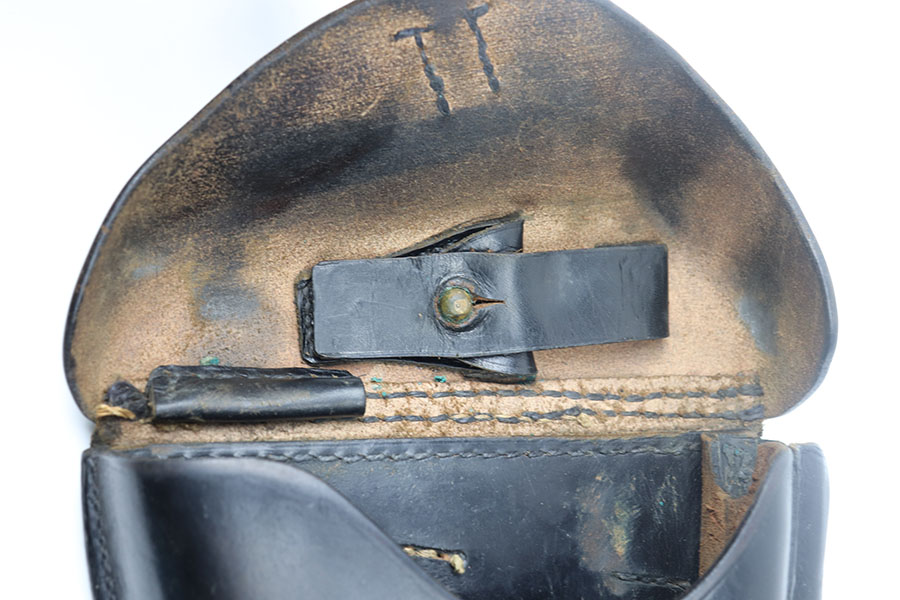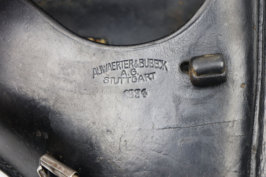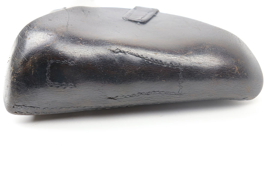 6/4/21 – This is an original 1934 dated luger holster for a K Date or G Date Mauser Luger. The holster is maker stamped, dated, and waffen proof stamped on the front leather. The waffen proof is very faint and hard to see, but is located to the left of the maker stamp. The leather has normal pliability and no major issues. Excellent all original stitching is completely intact.
