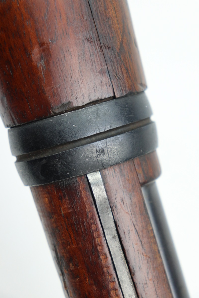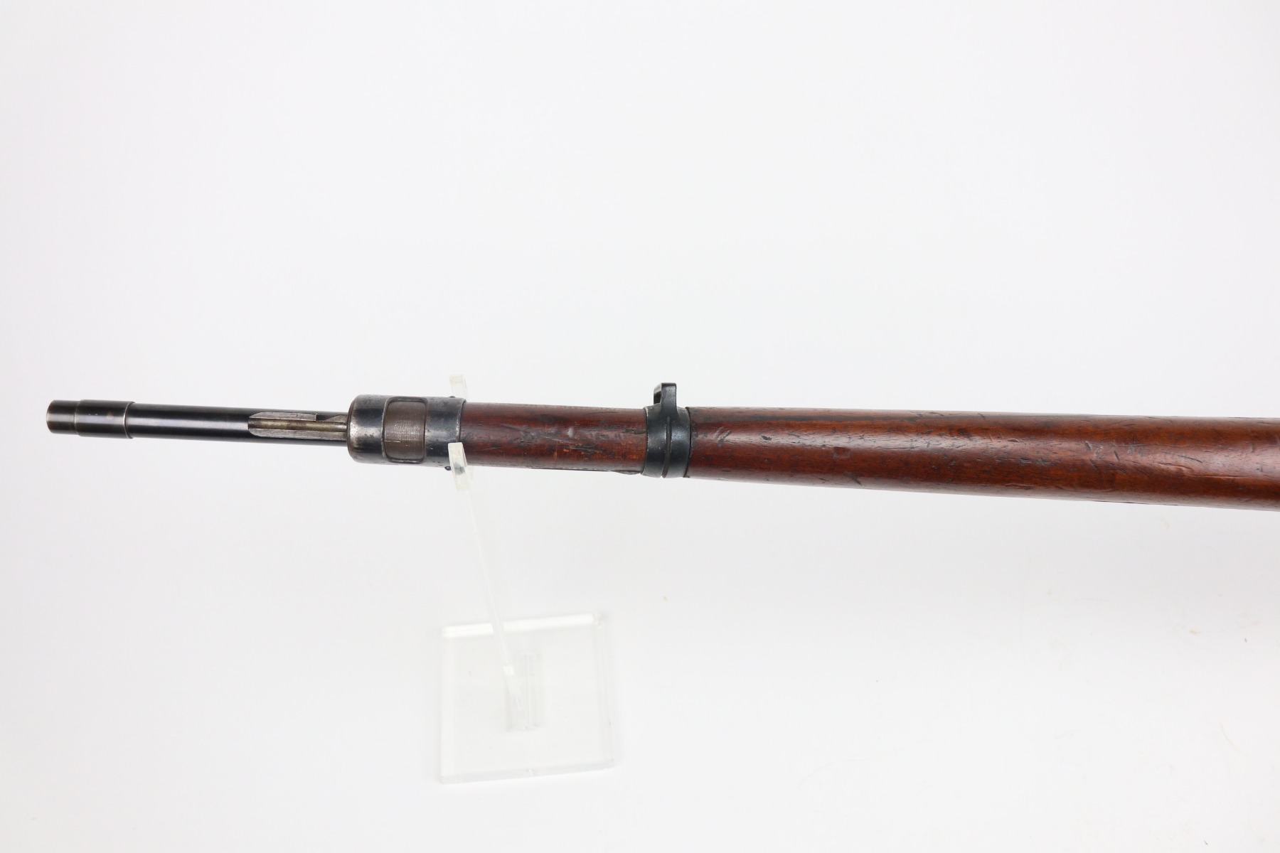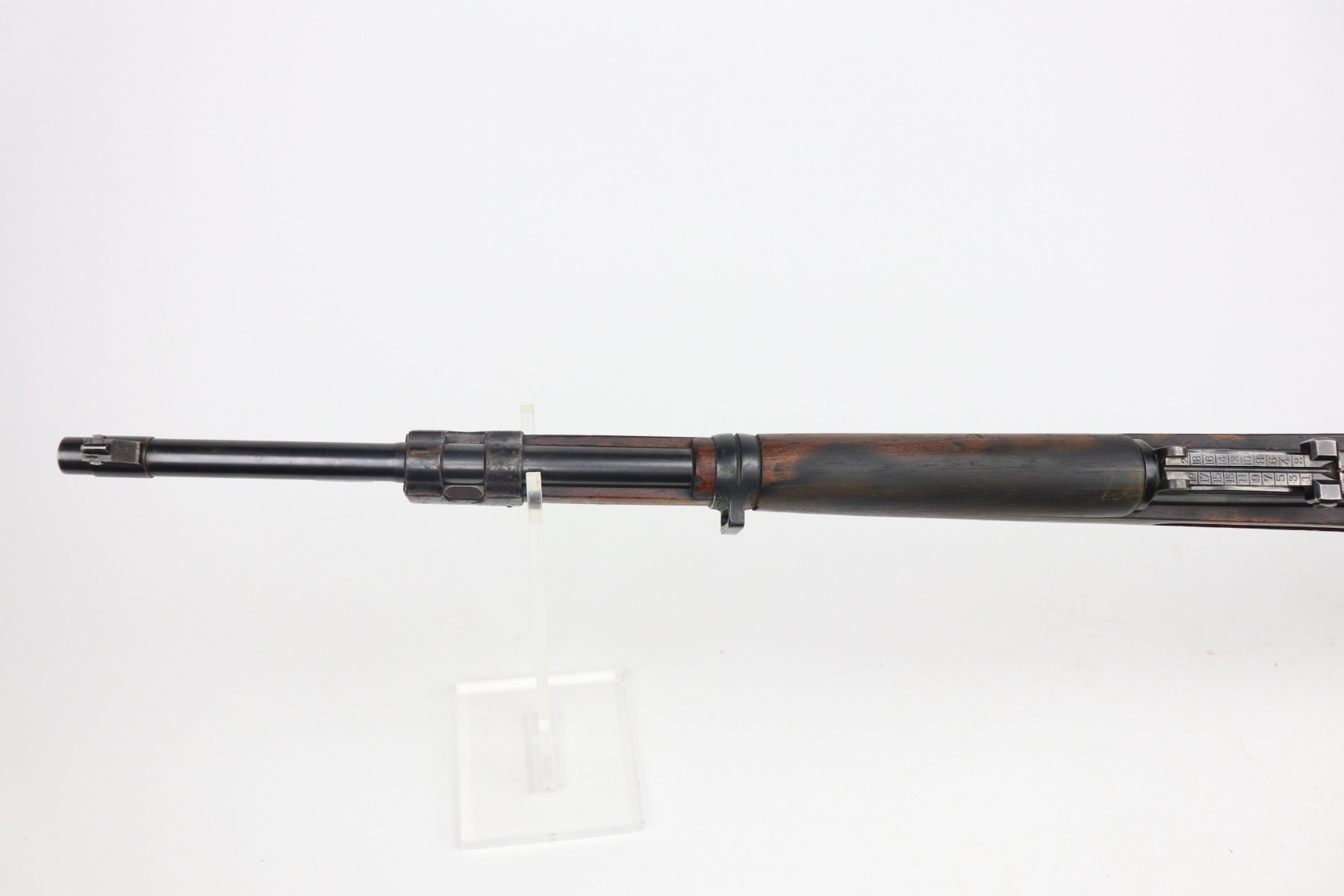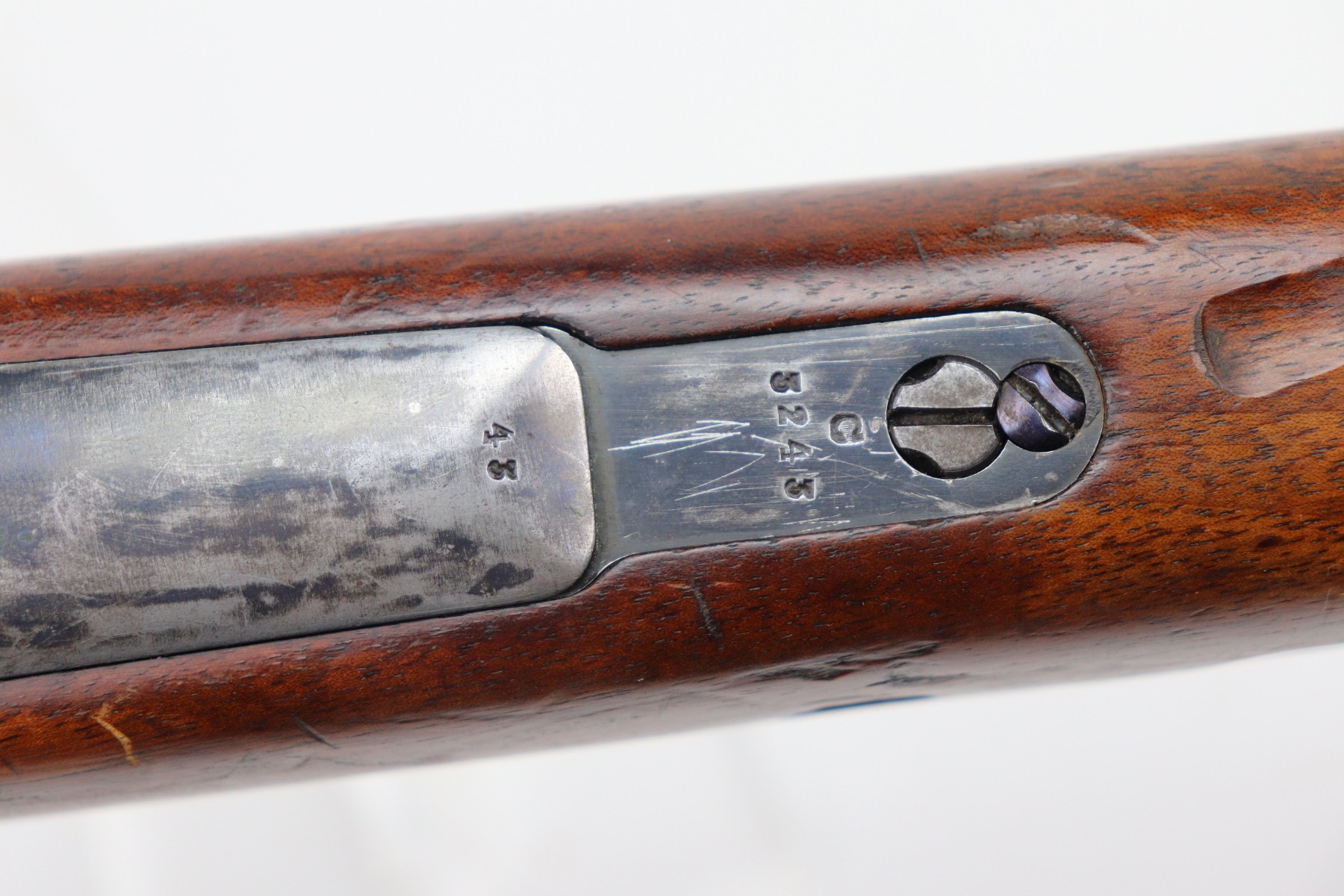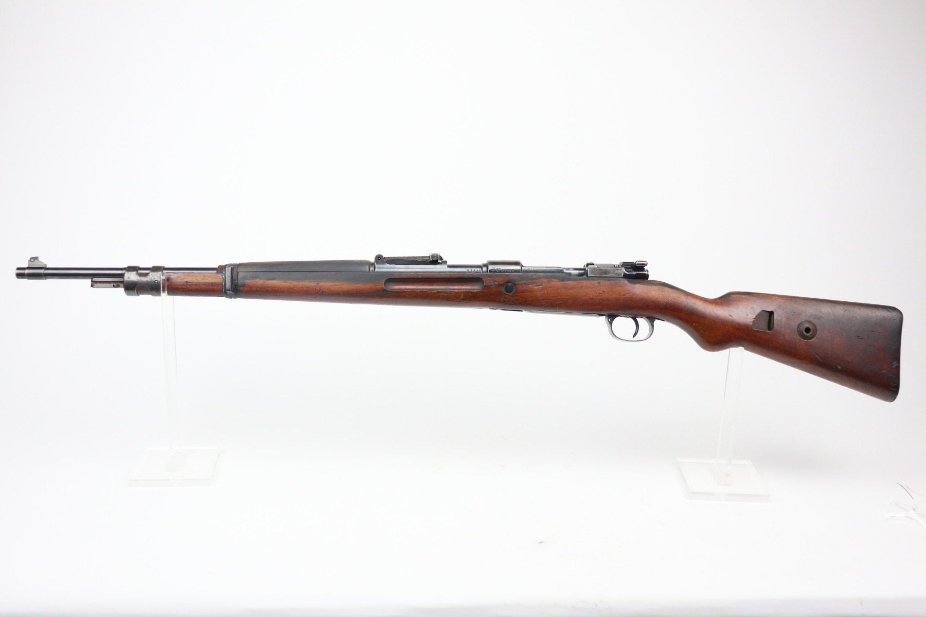 2/12/21 – This is a very nice example of a Mauser Standard Modell Rifle, made in 1934. The gun is all matching except for the rear barrel band. It has the proper “BUG” proofs. It has retained most of its original finish with minor wear on the high edges and spotty oxidation here and there. Spotty rust on the butt plate. Thinning and scratches on the floor plate. The stock is excellent with minor handling marks throughout and a streak of dark discoloration along the top of the stock. Minty bore.