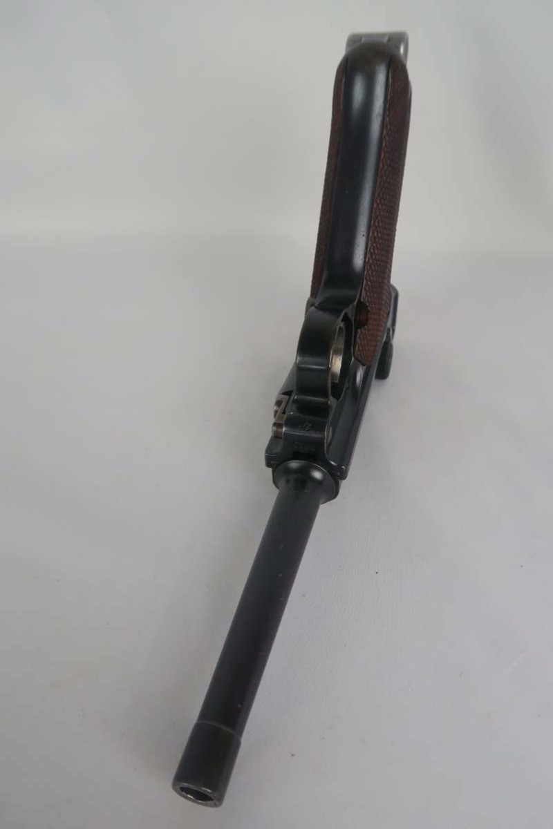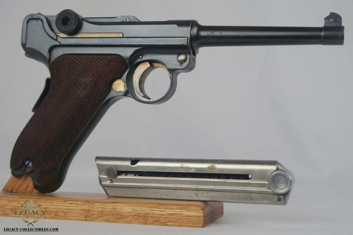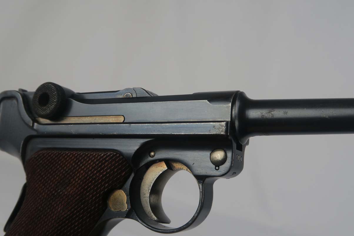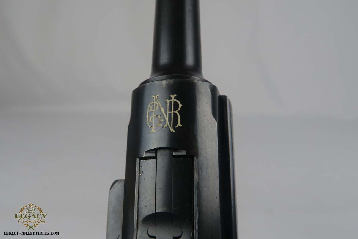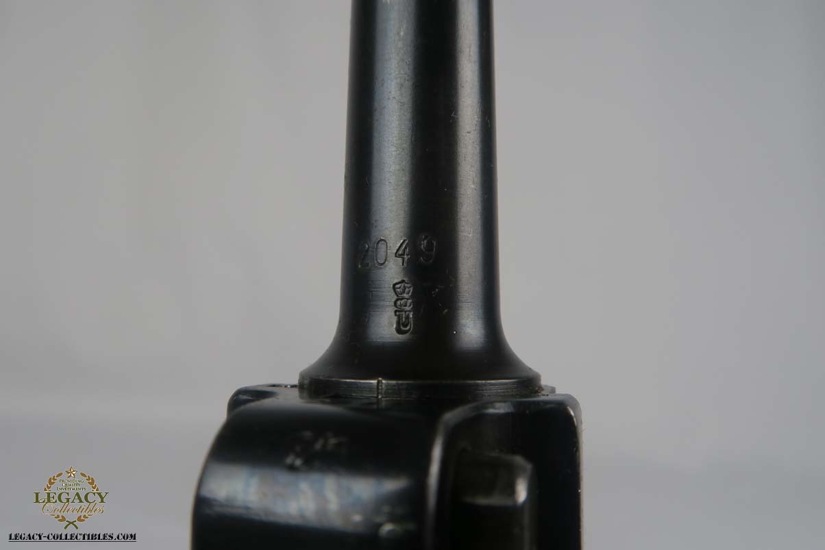 5/2/17 – This is a 1935/06 Mauser Banner Portuguese “Guarda Nacional Republicana” (Republic National Guard) made by Mauser under contract in 1935. With a 120mm (4 3/4″) Barrel chambered for the 7.65mm. This one is in very good condition with about 95% of its original finish.  All parts are matching and correct.   Excellent bore.  These Lugers were unheard of in the collector market, until many years ago when a large group was purchased from the Government of Portugal and imported into the U.S. with only 564 produced.