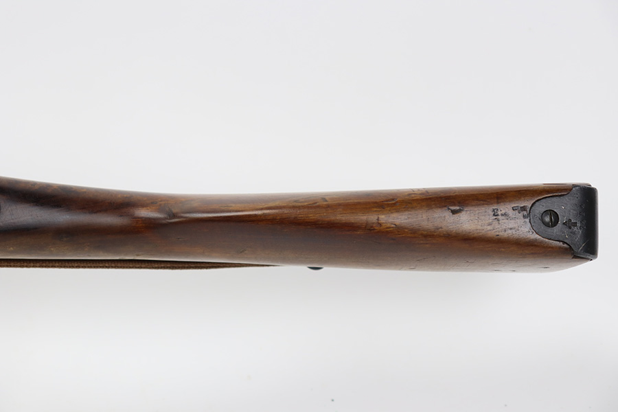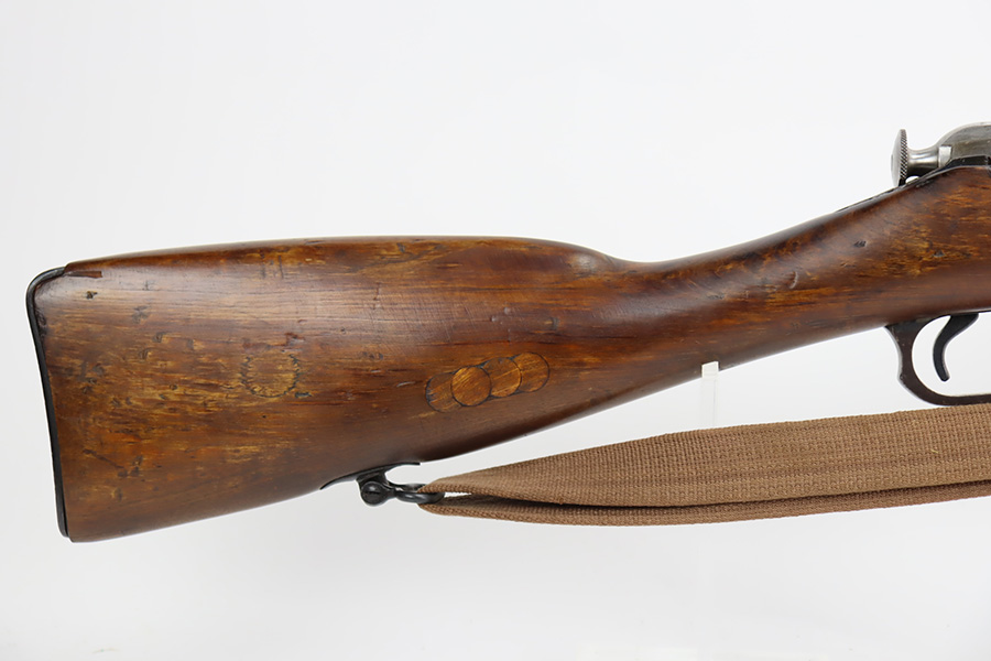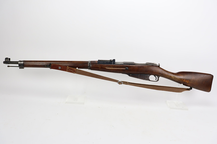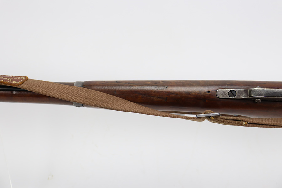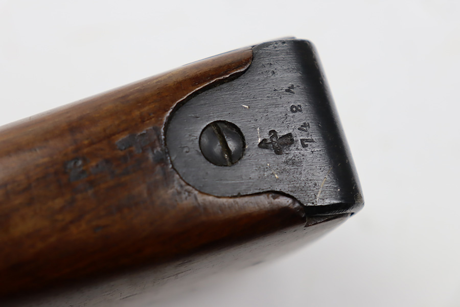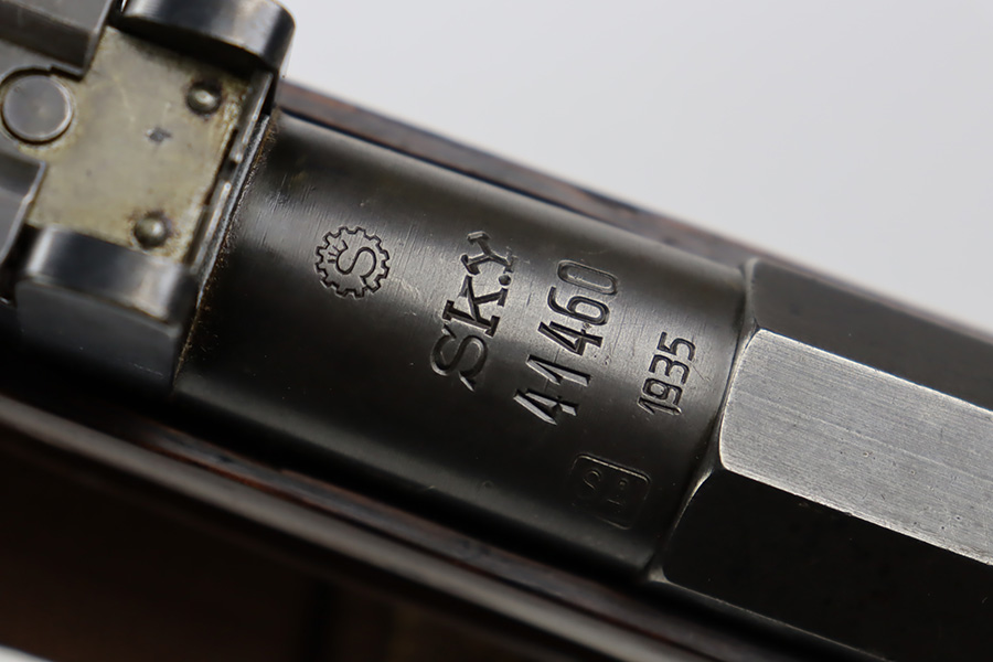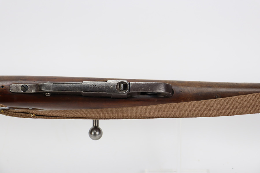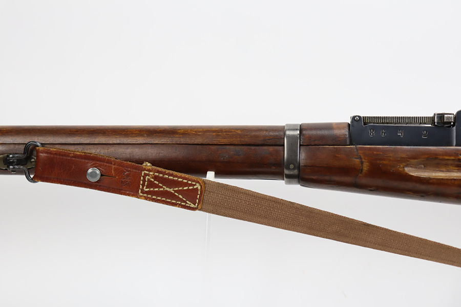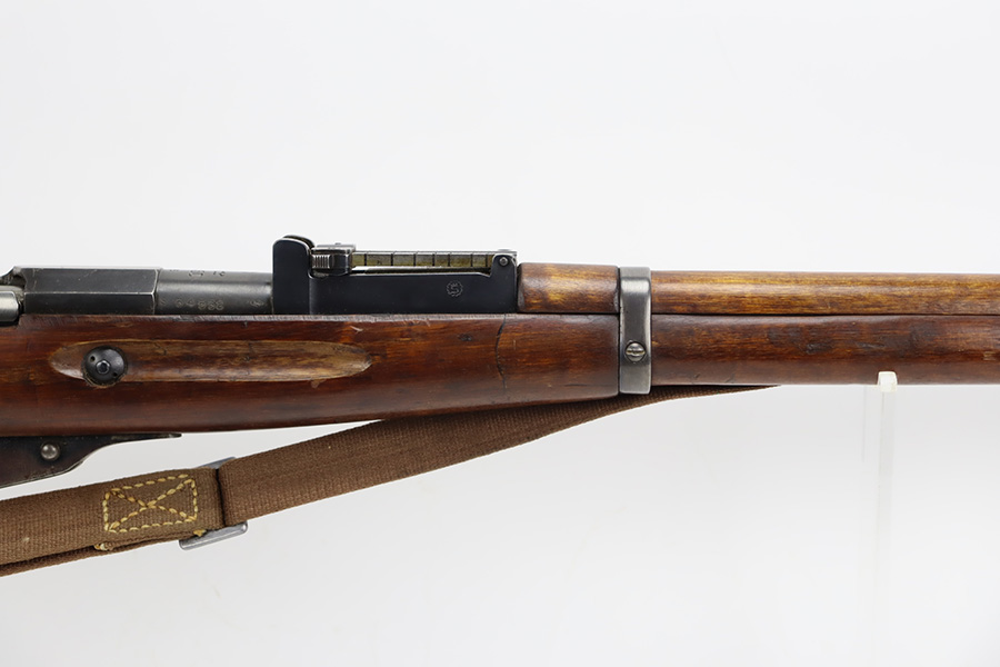 9/8/23 – This is a nice example of a Finnish Mosin M28/30 made by Sako and issued to the Finnish Civil Guard in 1934. It has the proper “SKY”, “S in Gear”, and “SA” markings. The gun is has an added receiver number S54552 for the Finnish Civil Guard District Number. There is an import mark on the barrel. The magazine and butt plate are mismatched The metal parts have retained roughly 70% of their finish. There is general thinning throughout, some brown patina on the magazine, and some light scratches, a few dots of oxidation, and some small pits on the receiver. Nice wood stock with only minor dings, but there appears to be a wood repair on the butt stock. Comes with an SKY-marked leather/canvas sling. Excellent, shiny bore with strong rifling.