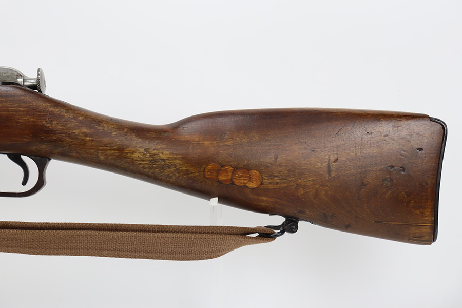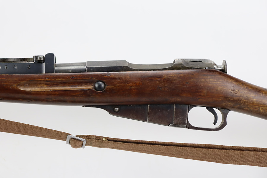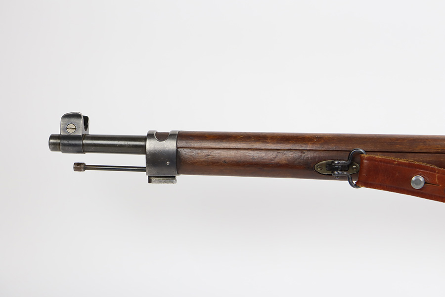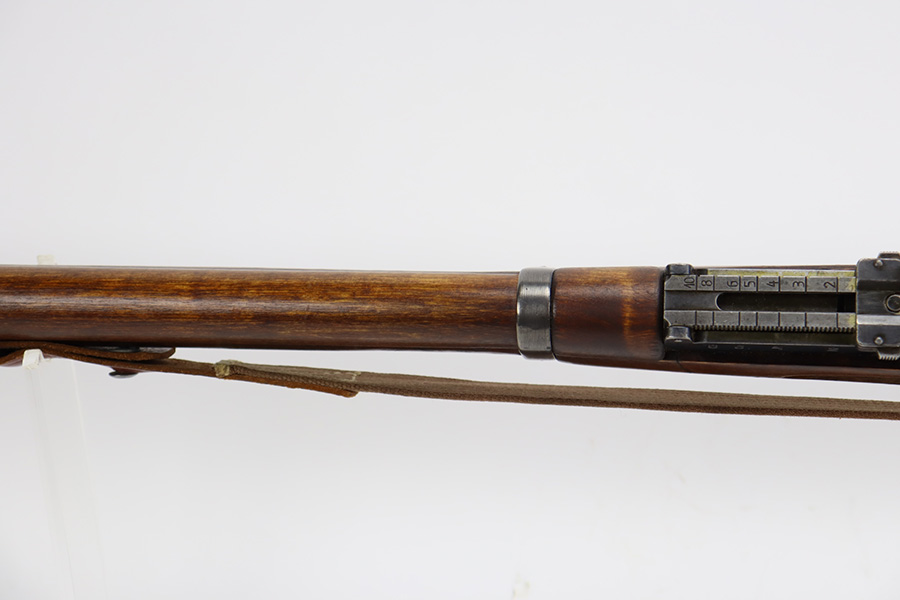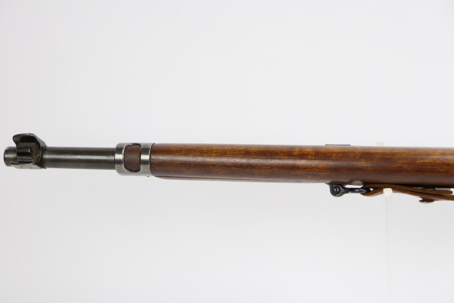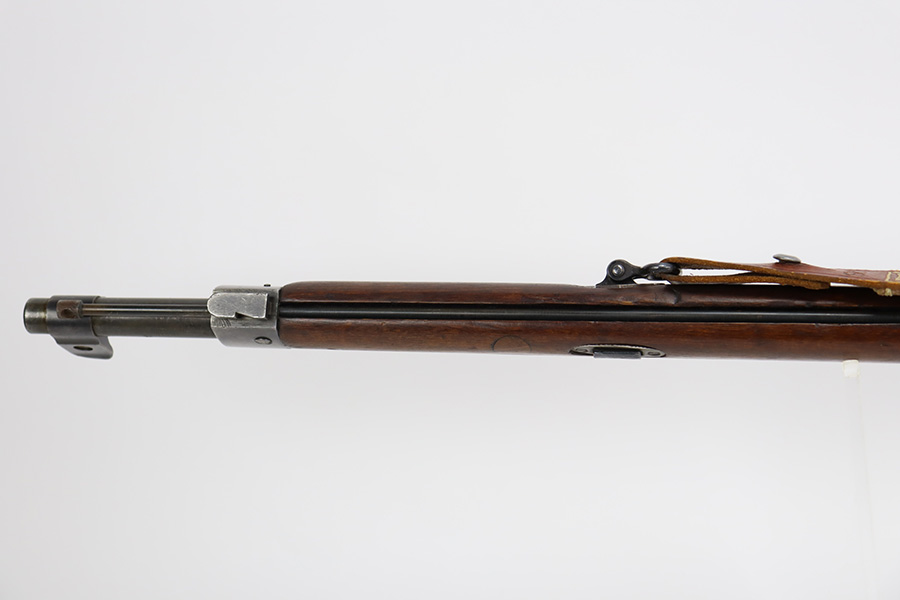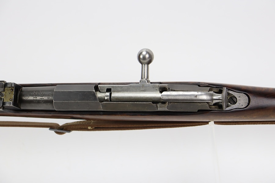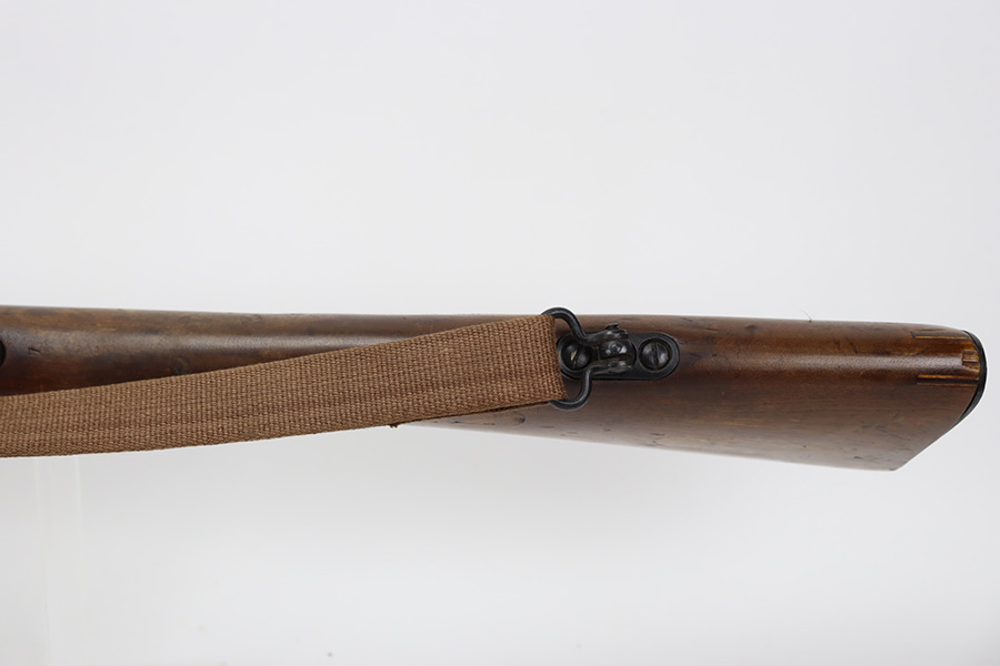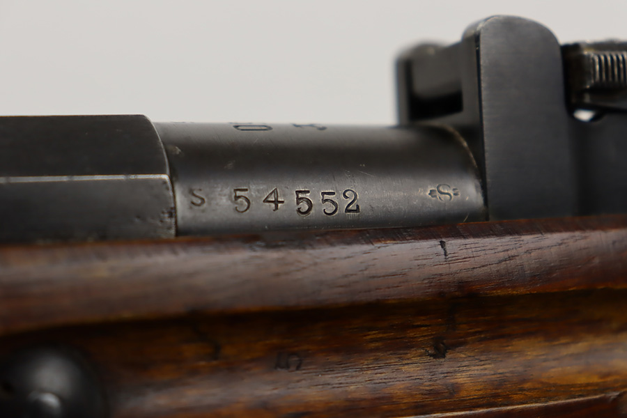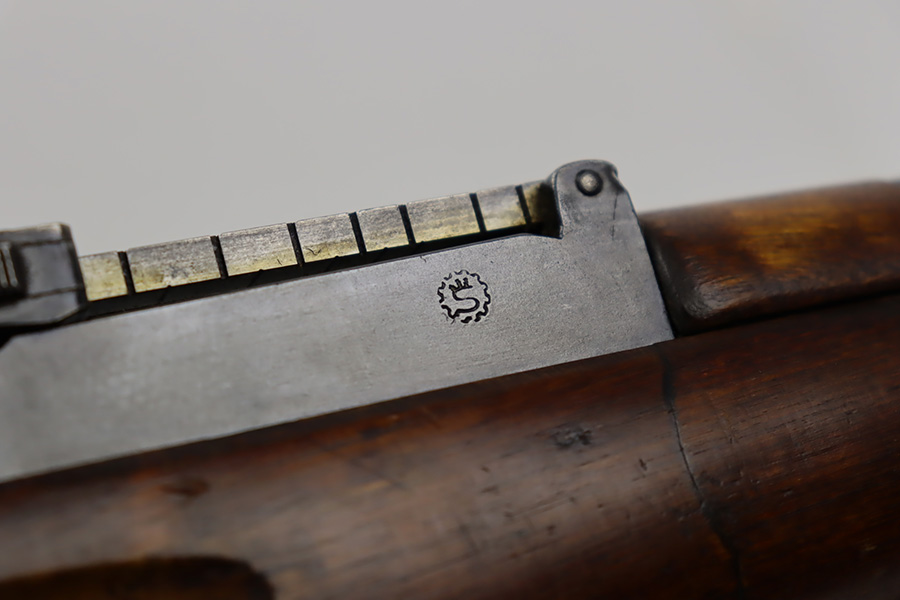 9/8/23 – This is a nice example of a Finnish Mosin M28/30 made by Sako and issued to the Finnish Civil Guard in 1934. It has the proper “SKY”, “S in Gear”, and “SA” markings. The gun is has an added receiver number S54552 for the Finnish Civil Guard District Number. There is an import mark on the barrel. The magazine and butt plate are mismatched The metal parts have retained roughly 70% of their finish. There is general thinning throughout, some brown patina on the magazine, and some light scratches, a few dots of oxidation, and some small pits on the receiver. Nice wood stock with only minor dings, but there appears to be a wood repair on the butt stock. Comes with an SKY-marked leather/canvas sling. Excellent, shiny bore with strong rifling.