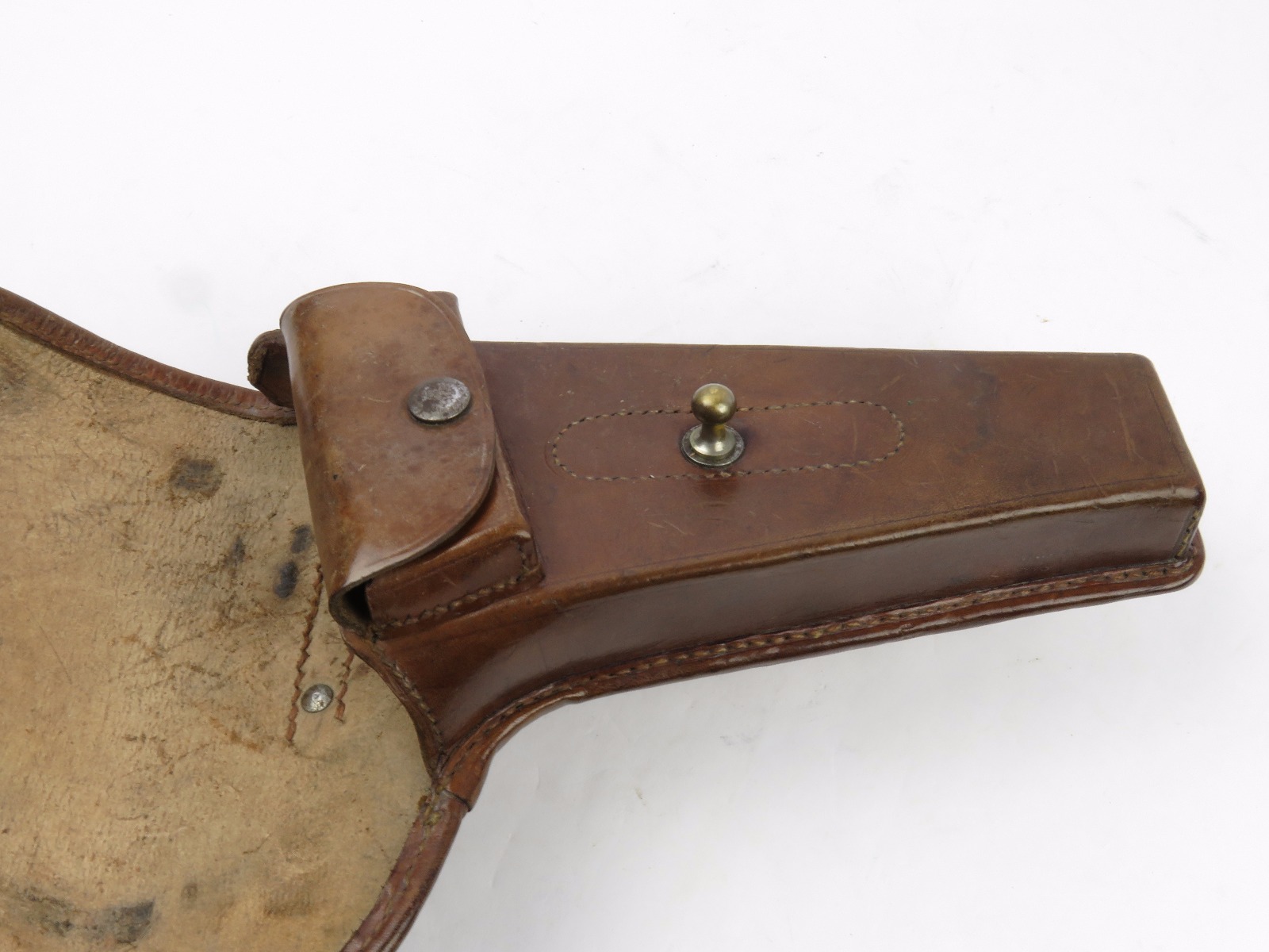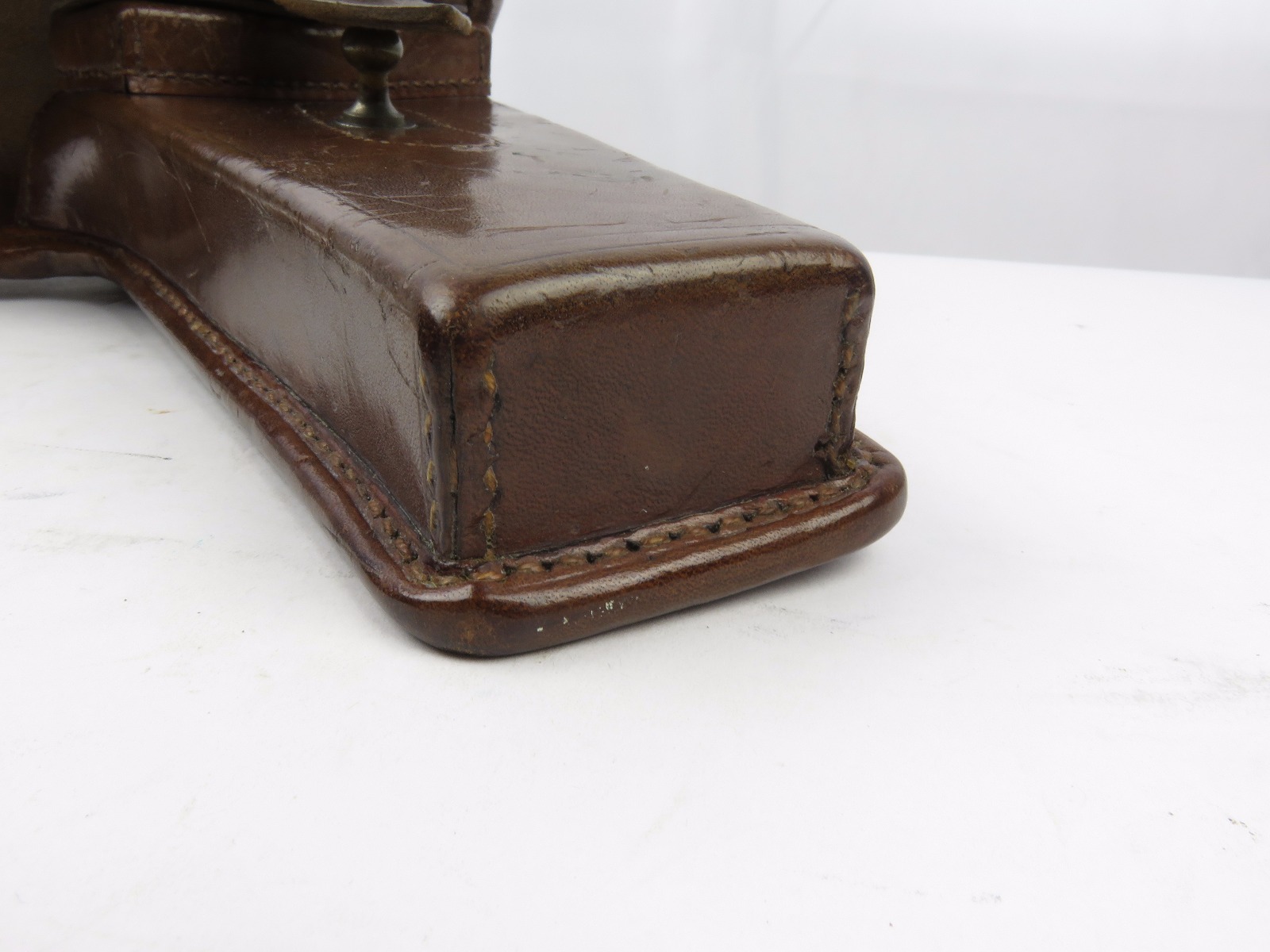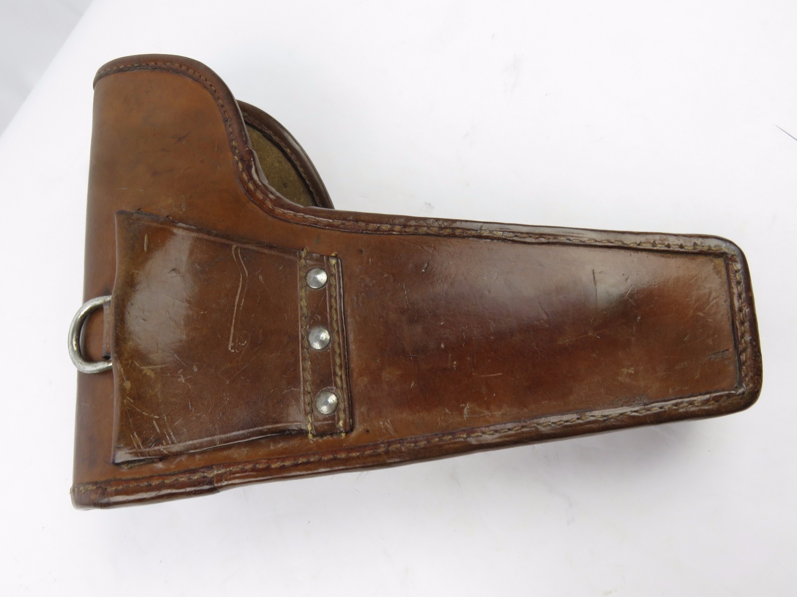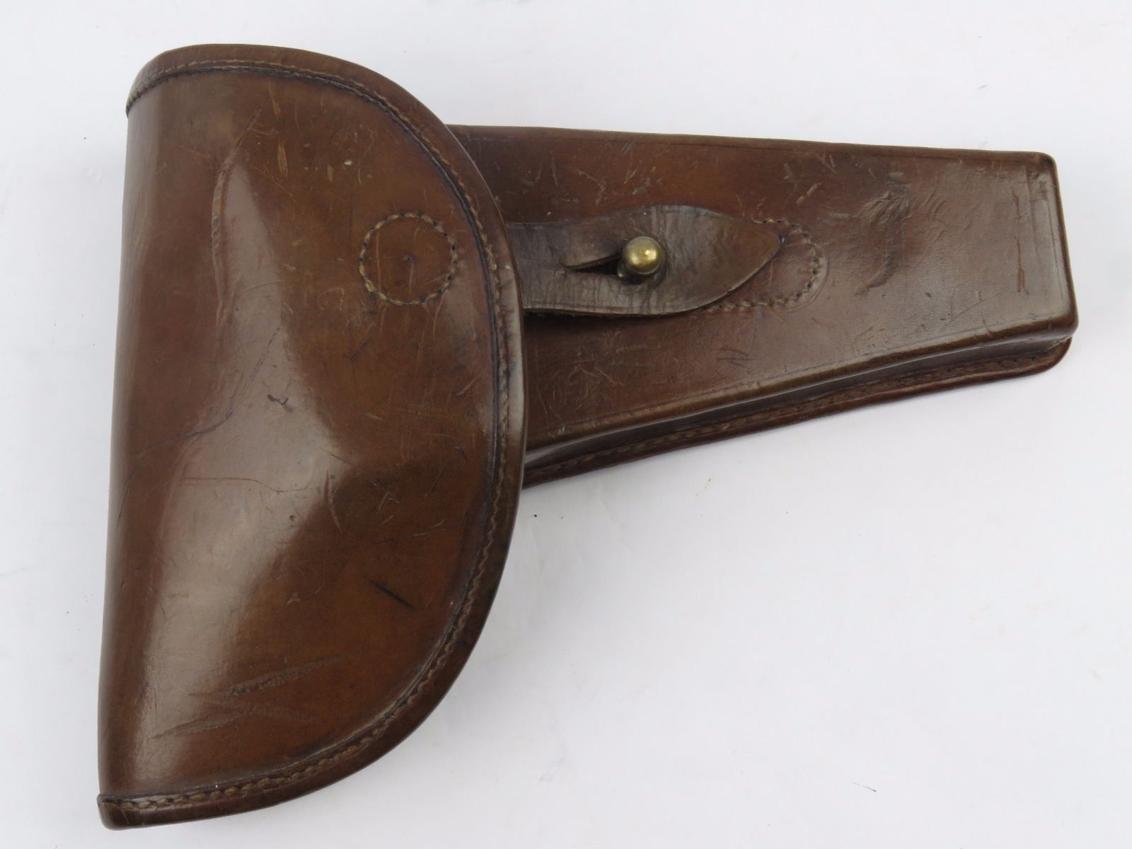 8/16/17 – This is an original Steyr Hahn Model 12 holster. The holster is in excellent condition with strong leather that has very nice shape. There are some external scuff and scratch marks from aging and use throughout WW2. The interior leather is very clean. The interior leather is ink stamped and dated 1935. The stitching is all original and in tact.
