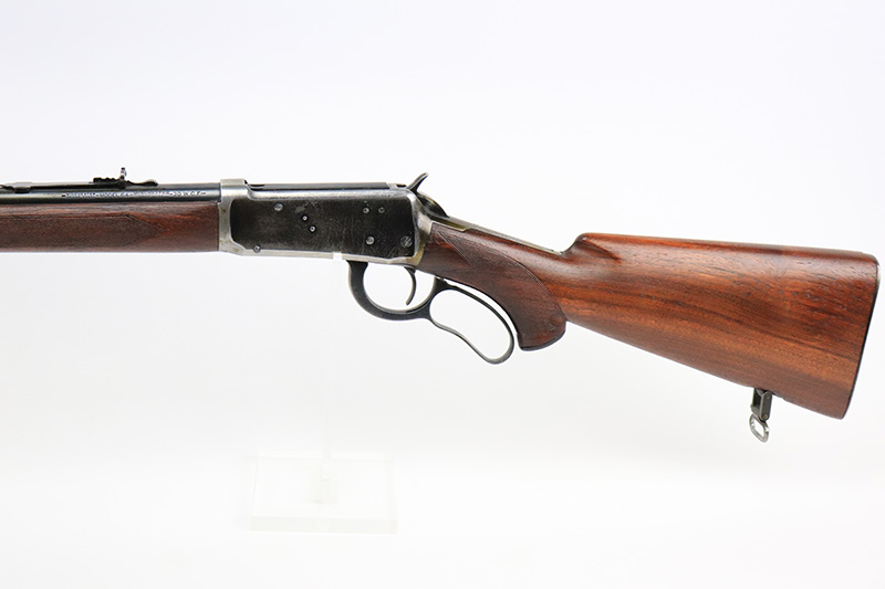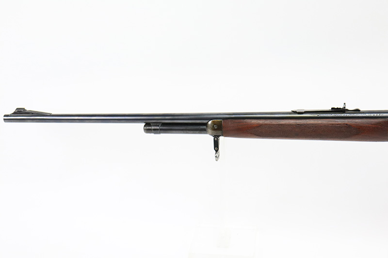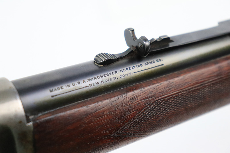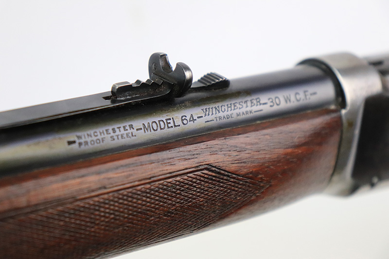 10/5/22 – This is a nice example of a Winchester Model 64 lever action rifle, manufactured in 1935 and chambered in .30-30 Winchester. It is all matching and has retained the majority of its original bluing. There is very little finish loss along the barrel, but there is noticeable finish loss and scratchy wear on the receiver. Thinning on the butt plate. Comes with an excellent wood stock – there are just a few light scratches and handling marks here and there. The bore is mint. The action is smooth.