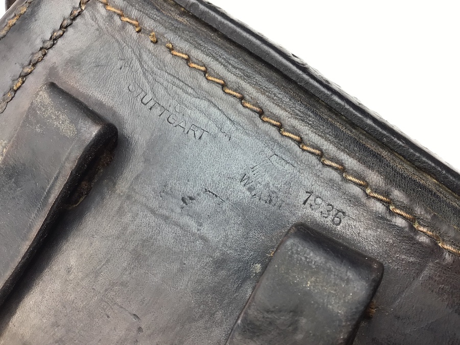 1/28/21 – Original 1936 Luger holster. Good leather and secure, intact stitching. Maker and date stamped on the back along with a droop wing eagle waffen stamp. However, the maker and waffen stamp are faint and unreadable. Secure lift strap.