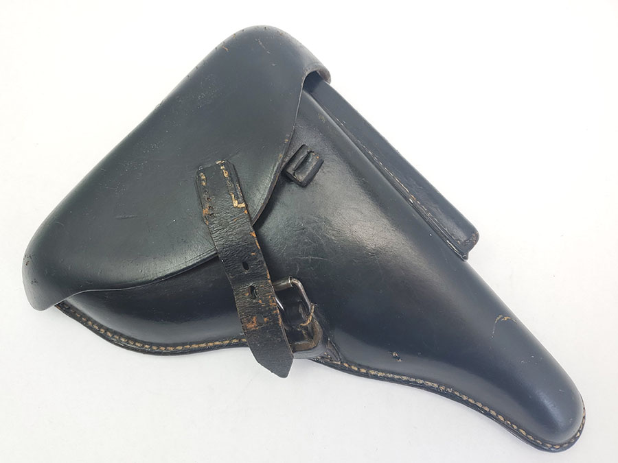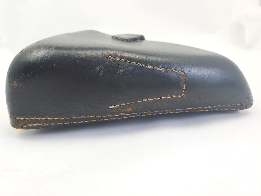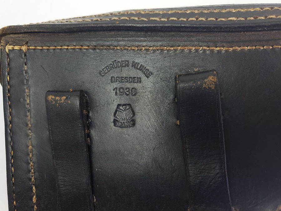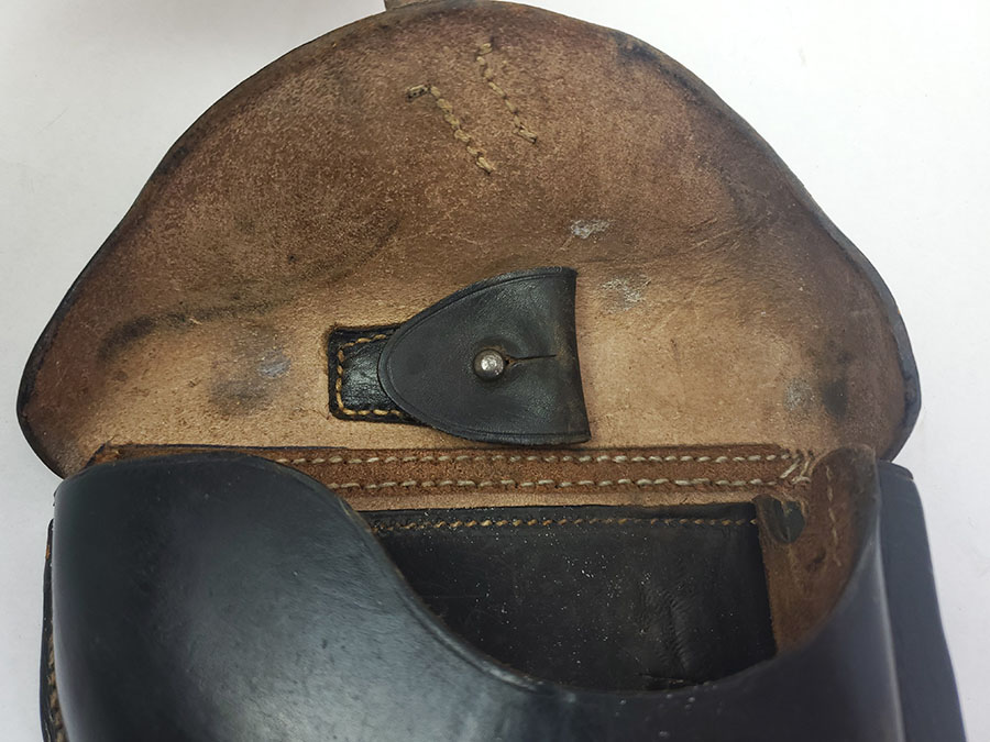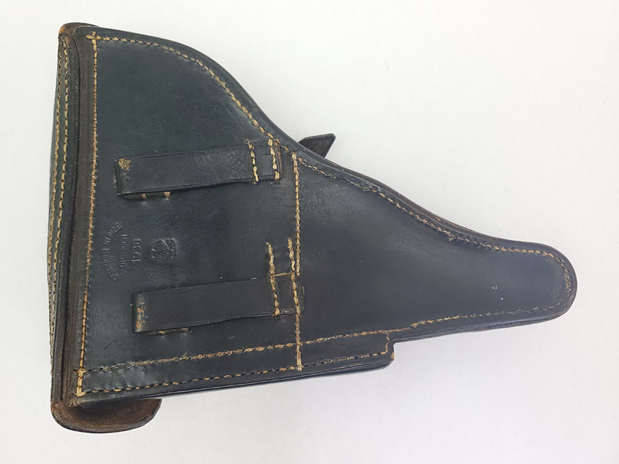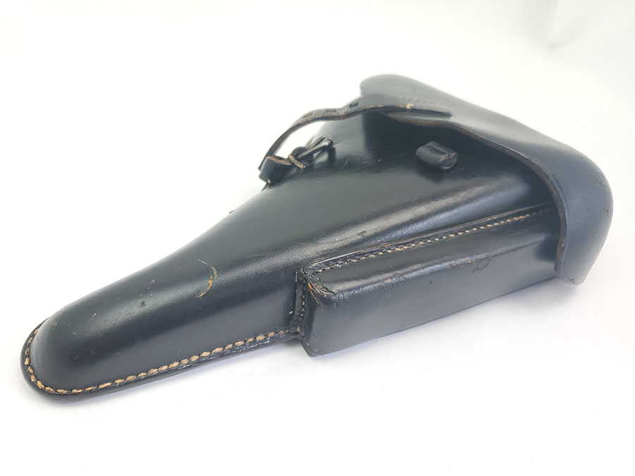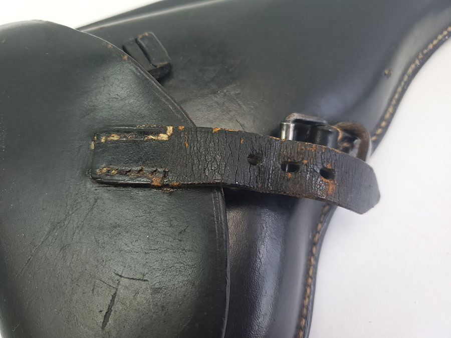 7/8/20 – This is an original 1936 dated Luger holster from WW2. The holster has great form / shape and light pliability. The closure strap bears the majority of the wear, with light surface wrinkling throughout, and a few missing stitches. The back of the holster is very well stamped and waffen proofed. The interior leather is fairly clean. All original stitching is in tact as well.