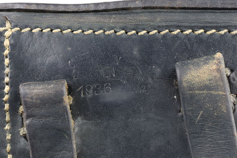 2/1/24 – This is a 1936-dated military holster for a Mauser Luger. It is waffen-proofed and Carl Heinichen maker marked. Overall in very nice condition. The leather is soft, and the stitching is great. Small hole in the tool pouch.