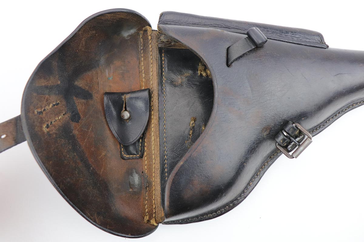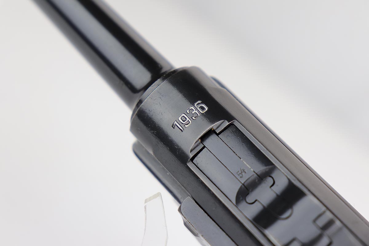 12/4/19 – This is an all matching and original Mauser Luger from 1936, including one of the original, matching magazines. The pistol has 85-90% of the original blue, as there isn’t much actual finish loss but some notable patination in several areas. The grips are sharp and in fantastic shape but unmarked. Minty bore. The holster is also 1936 dated and has a fairly sharp WaA330 proof.