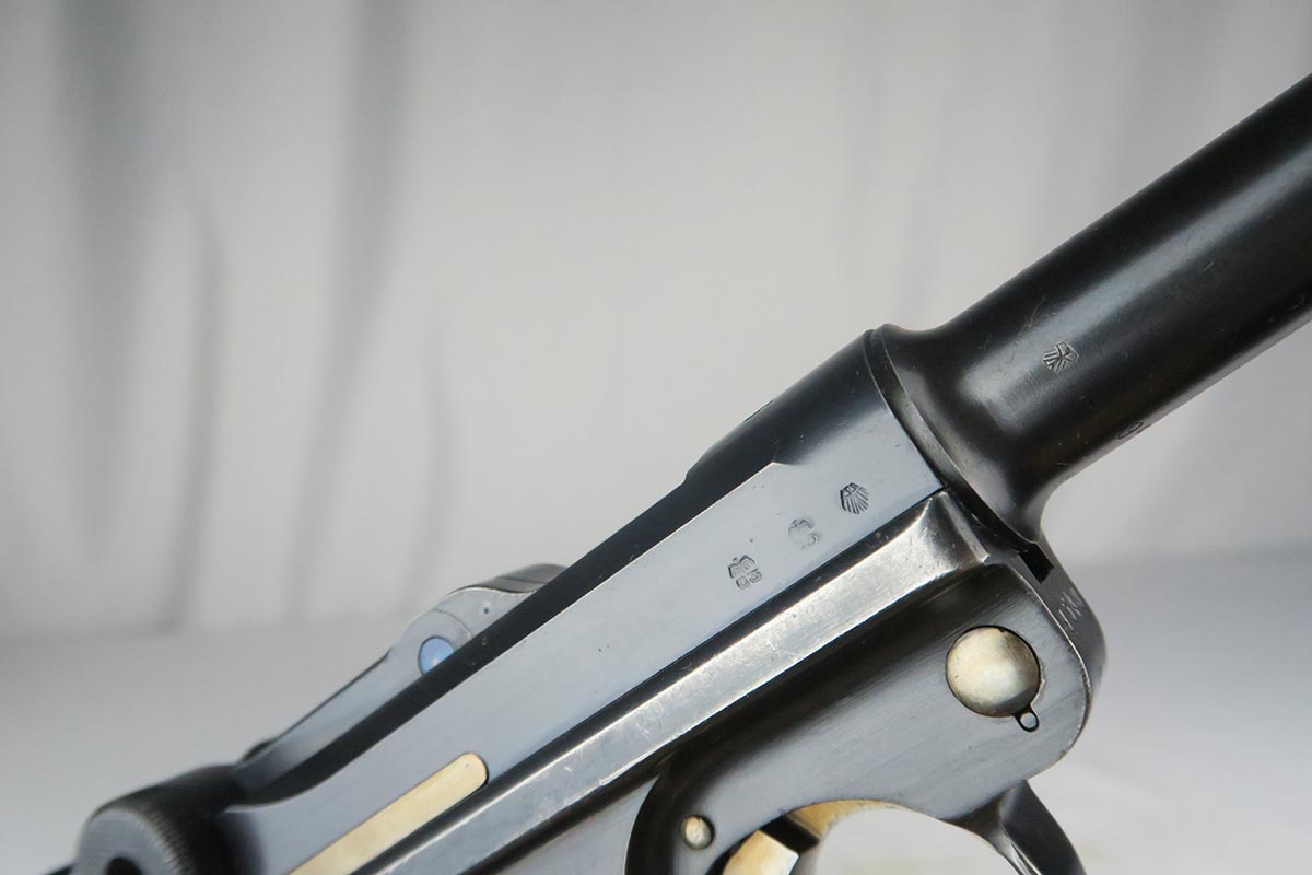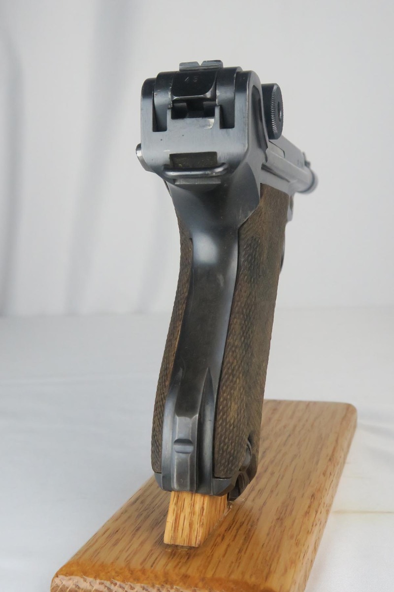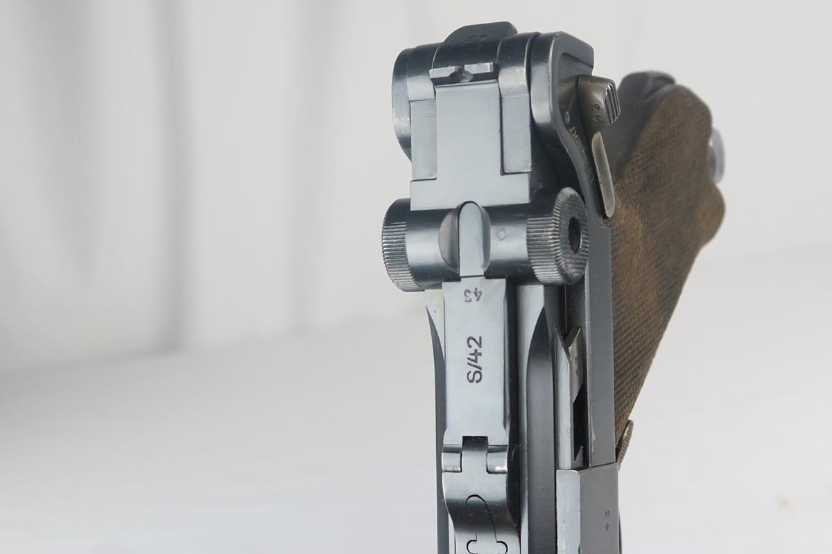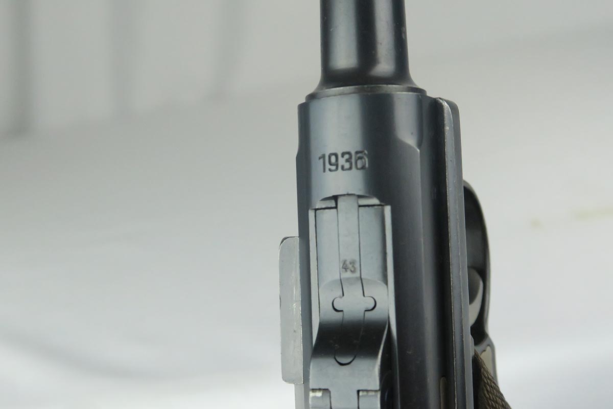 1/15/18 – This is an original and matching Mauser luger that was manufactured in 1936 for the German Army. The pistol retains about 90-92% of its original bluing with rub wear on the high edges and some thinning on the straps. The grips are correctly unnumbered and appear original to the pistol. All numbered parts are matching aside from the magazine, which is period correct but numbered to a different luger. The bore shows minor frost but good rifling and no pitting.
