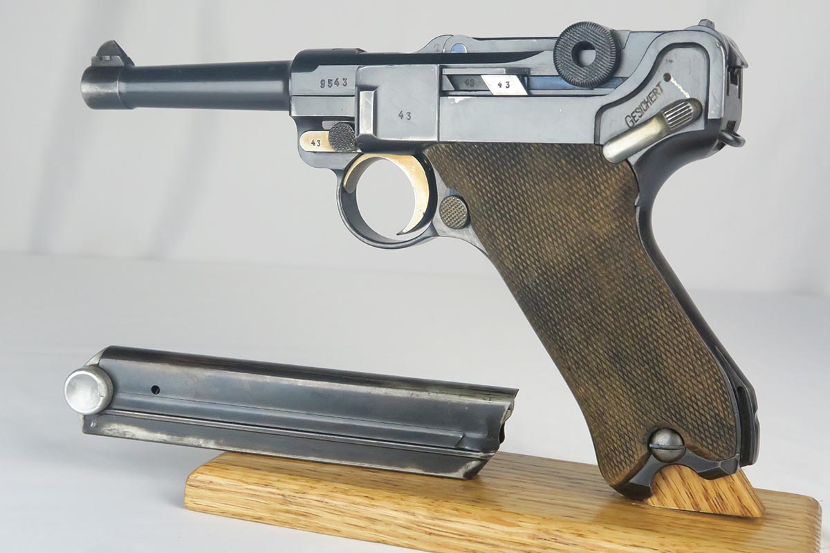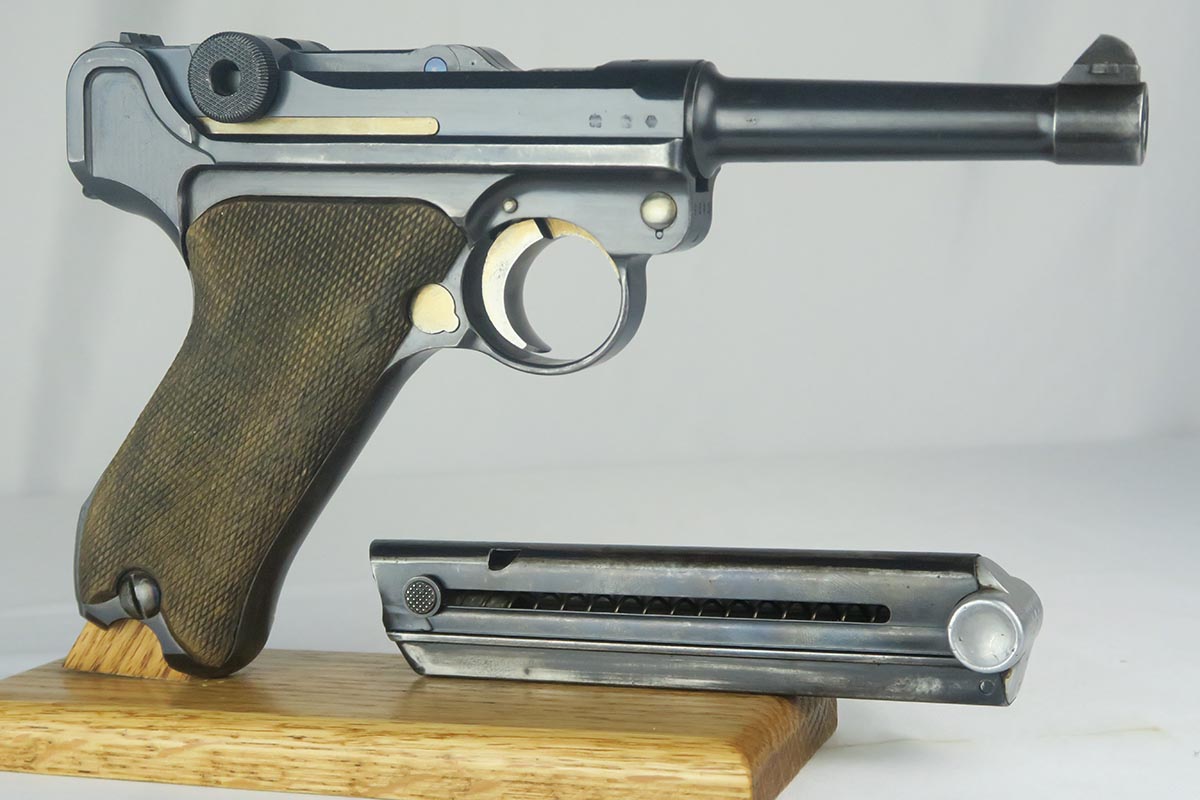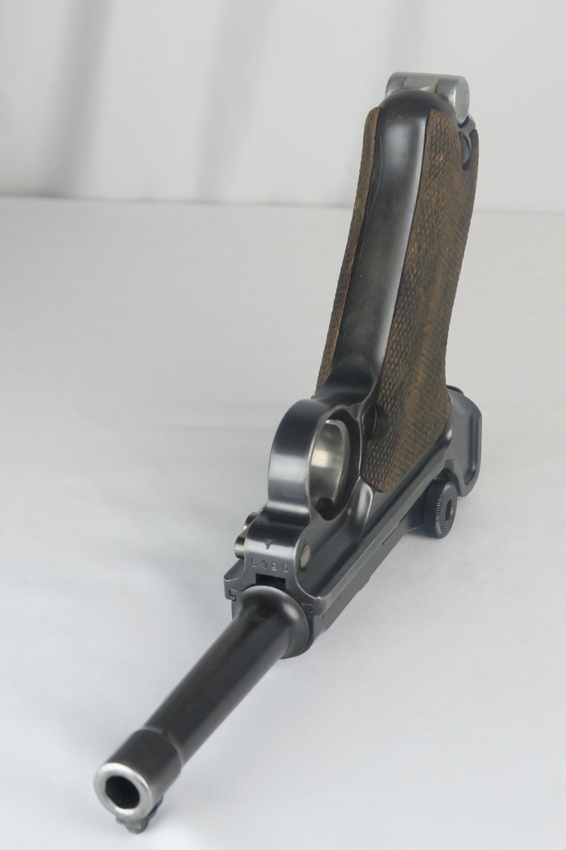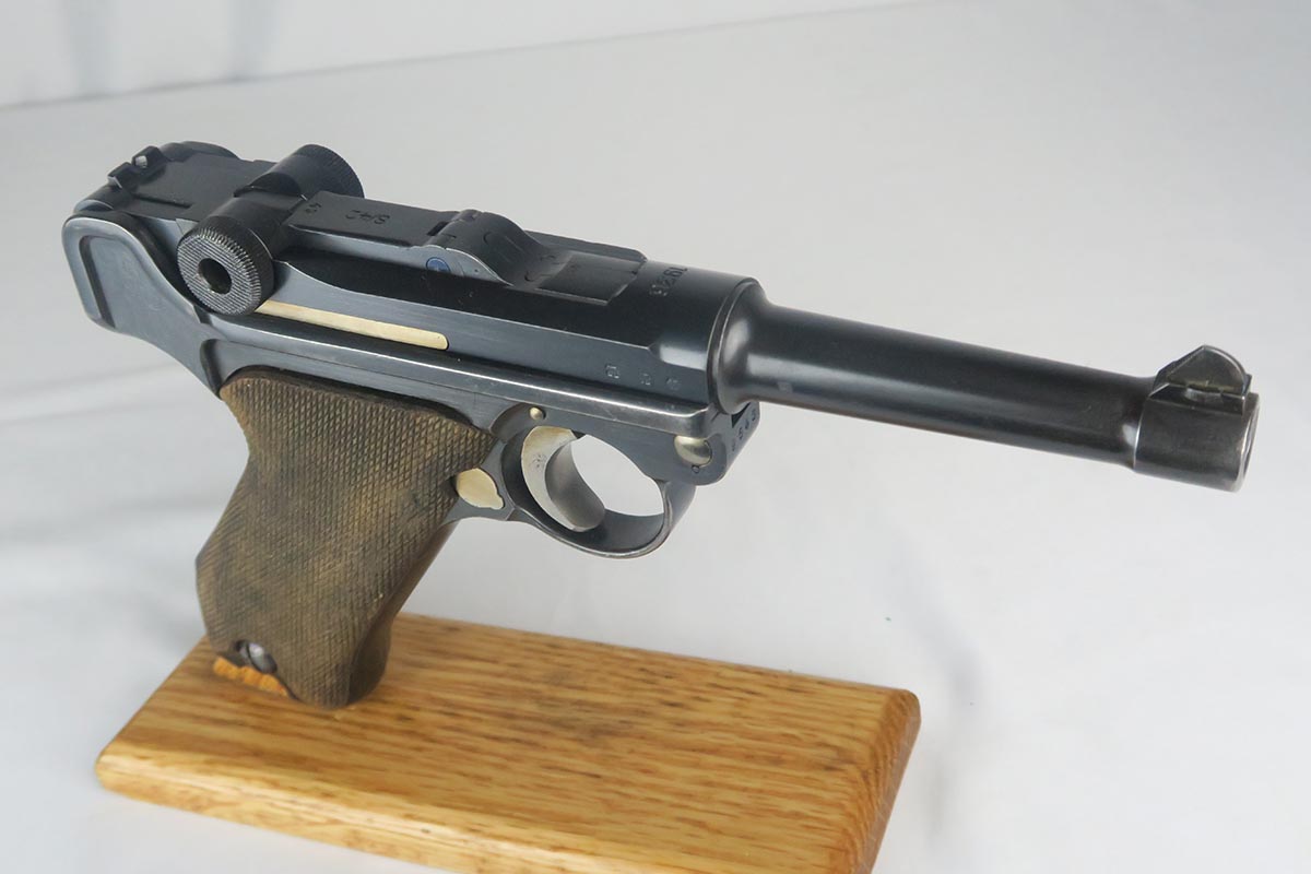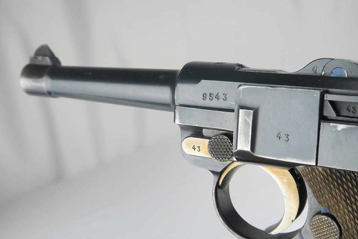 1/15/18 – This is an original and matching Mauser luger that was manufactured in 1936 for the German Army. The pistol retains about 90-92% of its original bluing with rub wear on the high edges and some thinning on the straps. The grips are correctly unnumbered and appear original to the pistol. All numbered parts are matching aside from the magazine, which is period correct but numbered to a different luger. The bore shows minor frost but good rifling and no pitting.
