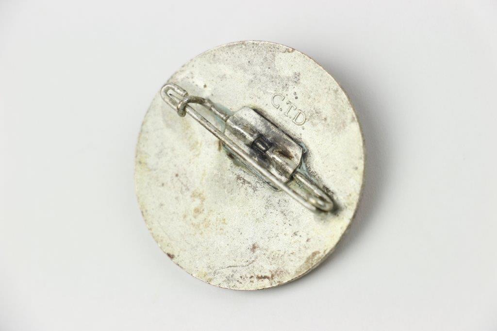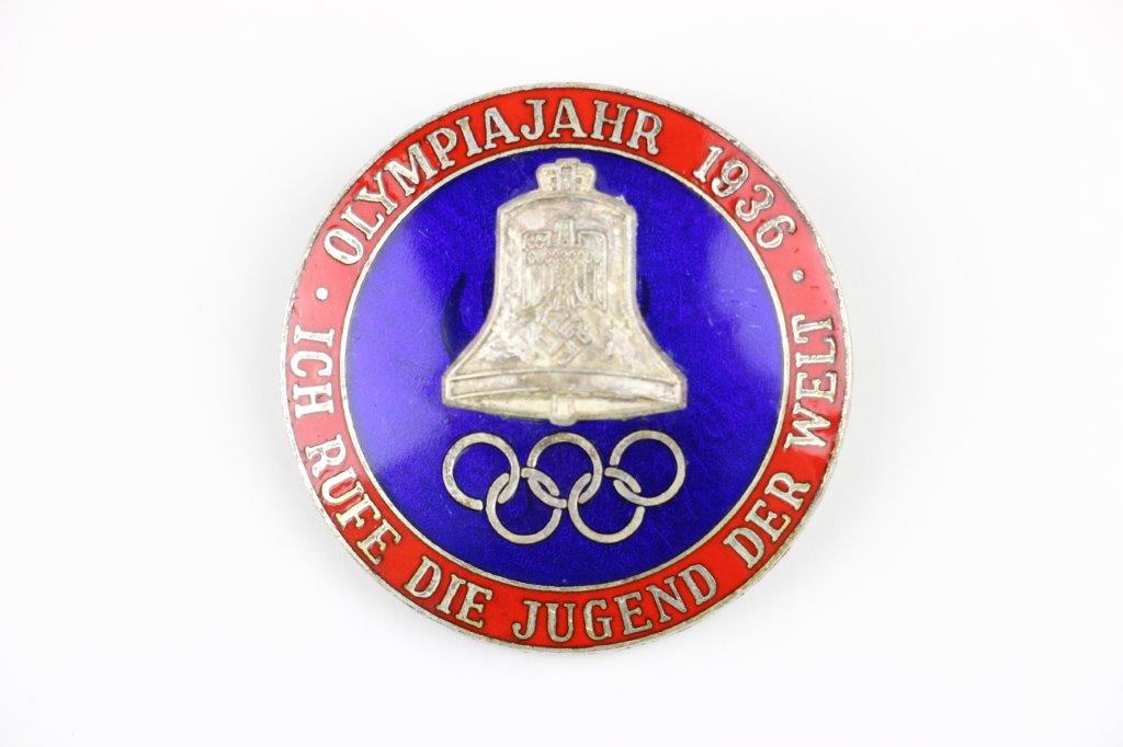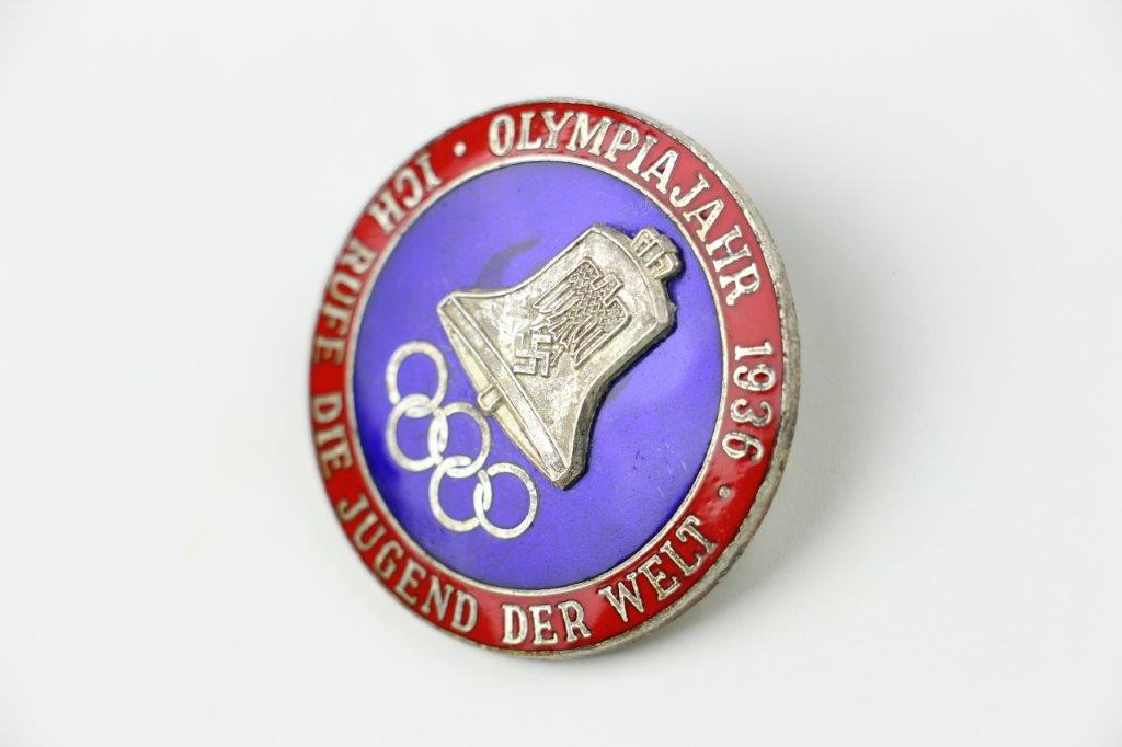 4/8/24 – This is a WW2 German 1936 Olympic Games badge. The small pin (diameter of 4cm) is in great overall condition with enamel paint and a fastened bell logo with German Eagle in the center. The inscription translates to: “I’m Calling the Youth of the World”. Perhaps worn by recruiters or Olympic Qualifying Officials. The reverse of the pin is maker marked “C.T.D.”. There’s light surface patina throughout.