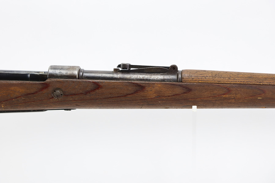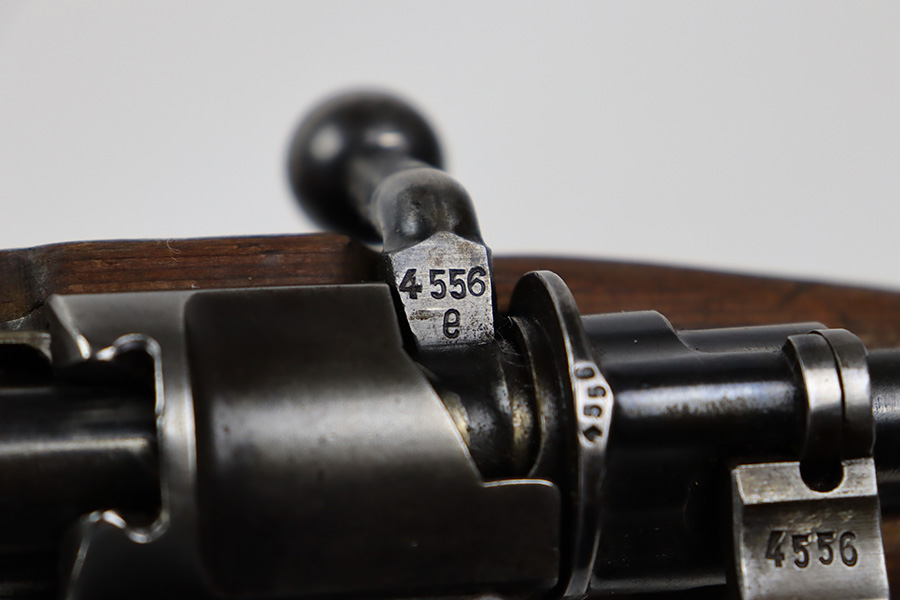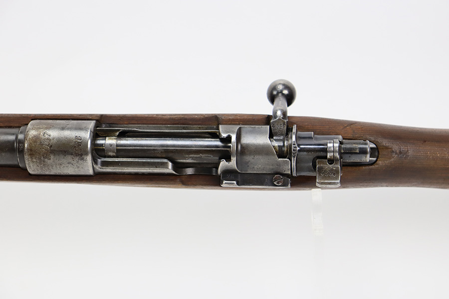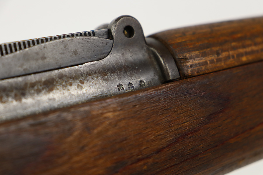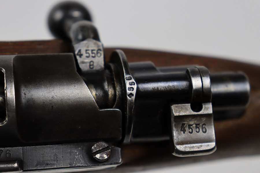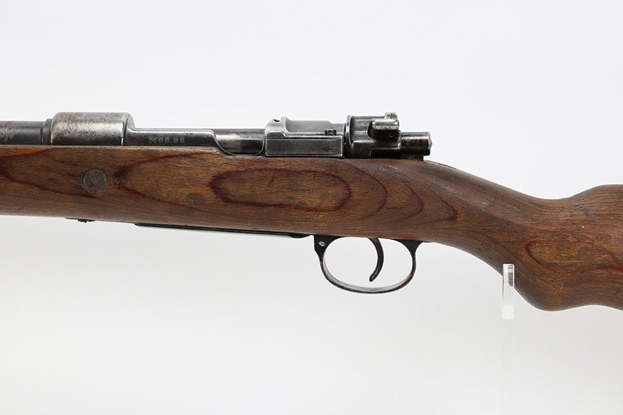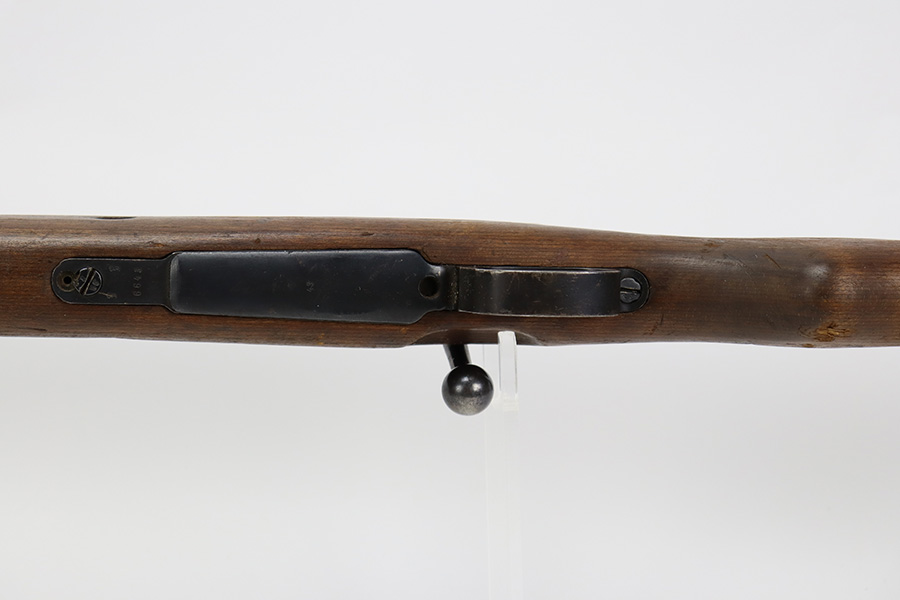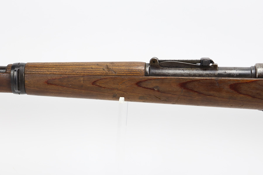 8/30/23 – This is a 1936 production Sauer K98 rifle with a matching barrel. The rest of the parts are mis-matching and generally put together from both WW1 and WW2 era parts. The rifle shows surface patina and honest wear throughout, but there is no rust or pitting. No import stamps as well. The metal finish rates around 65%. The wood stock has handling wear and a few typical scratches, dings, and dents. There’s a small chip in the wood near the wrist area, and some wear at the base of the buttstock, but this shouldn’t affect functionality. The right side of the buttstock still shows the original waffen military proof stamps. The bolt assembly is matching to itself, and is functional with smooth operation. The bore shows signs of use wear and mild corrosion throughout, but should still function as there’s strong rifling throughout. We rate the bore 7/10 overall.