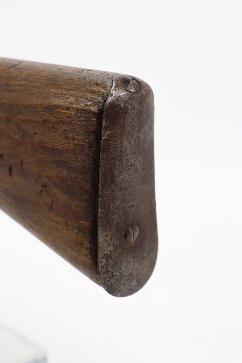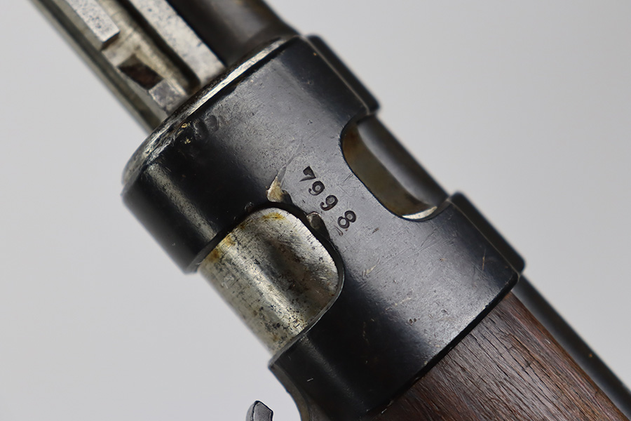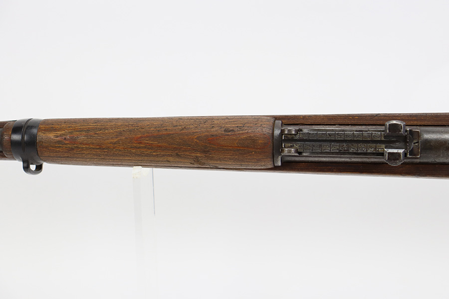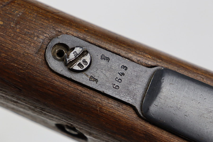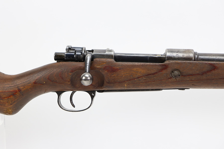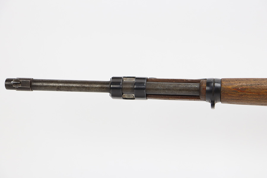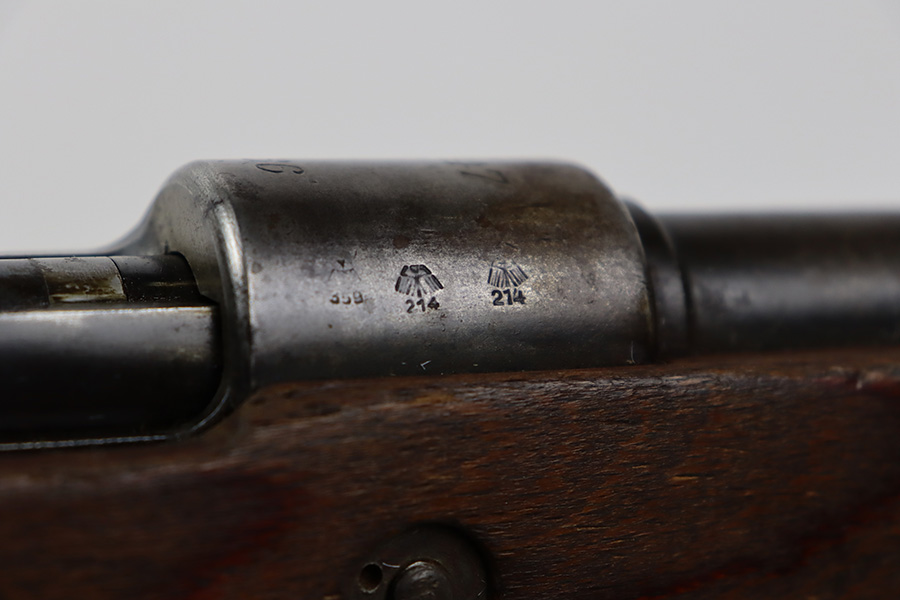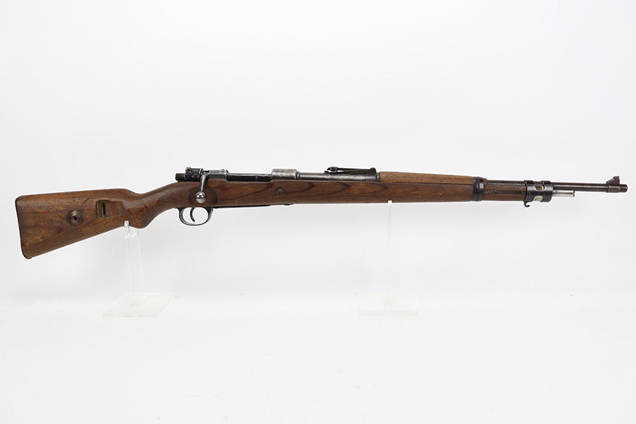 8/30/23 – This is a 1936 production Sauer K98 rifle with a matching barrel. The rest of the parts are mis-matching and generally put together from both WW1 and WW2 era parts. The rifle shows surface patina and honest wear throughout, but there is no rust or pitting. No import stamps as well. The metal finish rates around 65%. The wood stock has handling wear and a few typical scratches, dings, and dents. There’s a small chip in the wood near the wrist area, and some wear at the base of the buttstock, but this shouldn’t affect functionality. The right side of the buttstock still shows the original waffen military proof stamps. The bolt assembly is matching to itself, and is functional with smooth operation. The bore shows signs of use wear and mild corrosion throughout, but should still function as there’s strong rifling throughout. We rate the bore 7/10 overall.