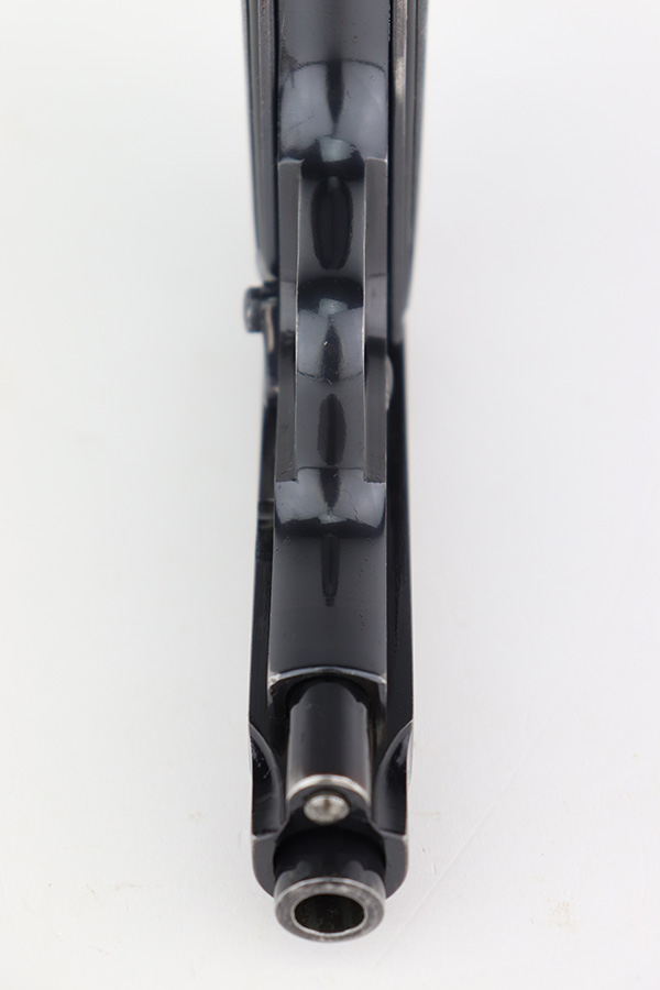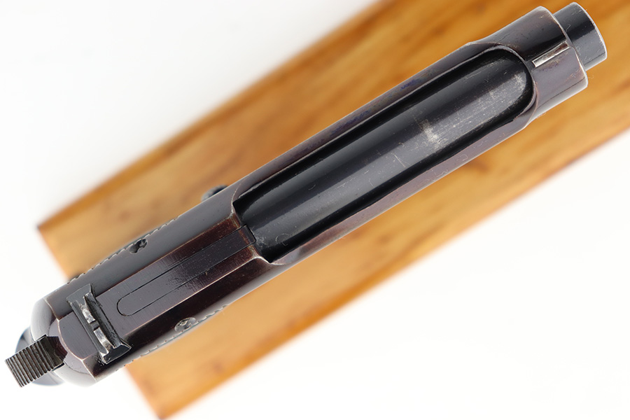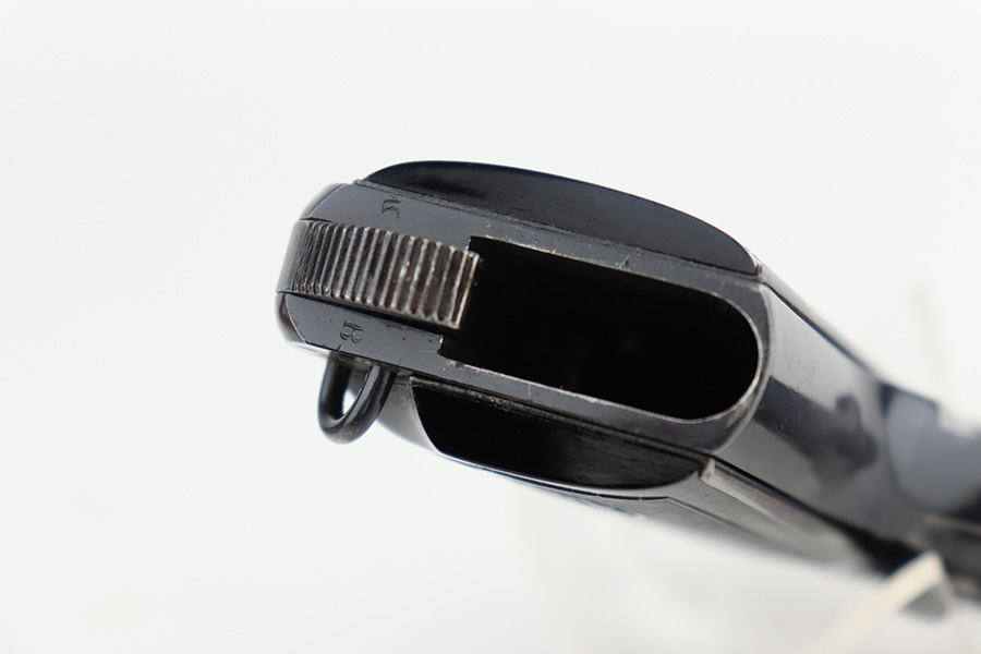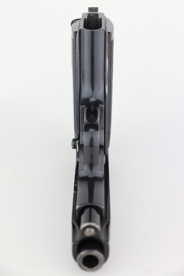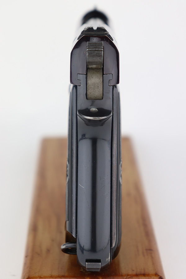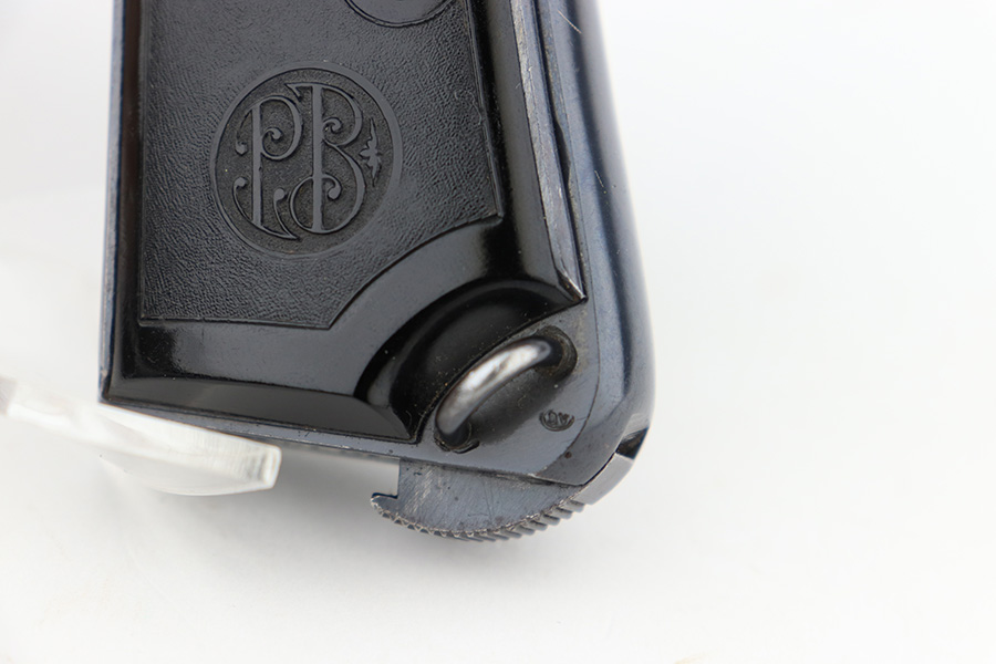 12/6/22 – This is a very nice example of a Beretta Model 1934 issued to the Italian military in 1937. It is all matching and has the proper “Crown RE” Italian military proofs on the left side of the frame. It has retained about 93% of its original high polish finish. The slide has a really nice plum color. There is just minor wear around the muzzle and on the high edges of the slide. Fitted with excellent period-correct black bakelite grips and comes with one proper magazine. The rifling in the bore is a bit worn with minor pitting throughout.
