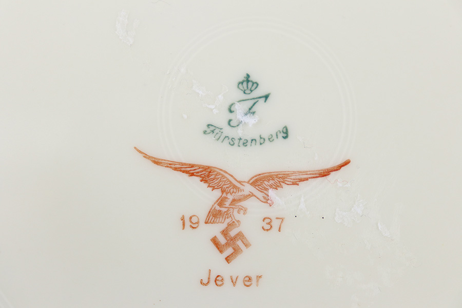 11/3/23 – This is an original porcelain bowl from 1937. The underside of the bowl is maker marked with a Luftwaffe eagle and 1937 date. The bowl has some mild residue from tape on the underside, but no major issues (this residue can easily clean off). The diameter is 23.5cm. Measures about 4cm tall, so a fairly shallow bowl.