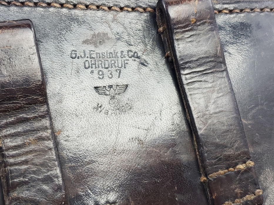 4/17/20 – This is an original 1937 dated Luger holster in excellent overall condition. The holster has strong leather and very nice shape with light pliability. The exterior leather has only a few minor scuffs. The back leather is well stamped with a maker stamp, date, and waffen eagle military proof stamp. Excellent original stitching is all tight and in tact as well. The interior leather has some minor use marks, but no major issues.