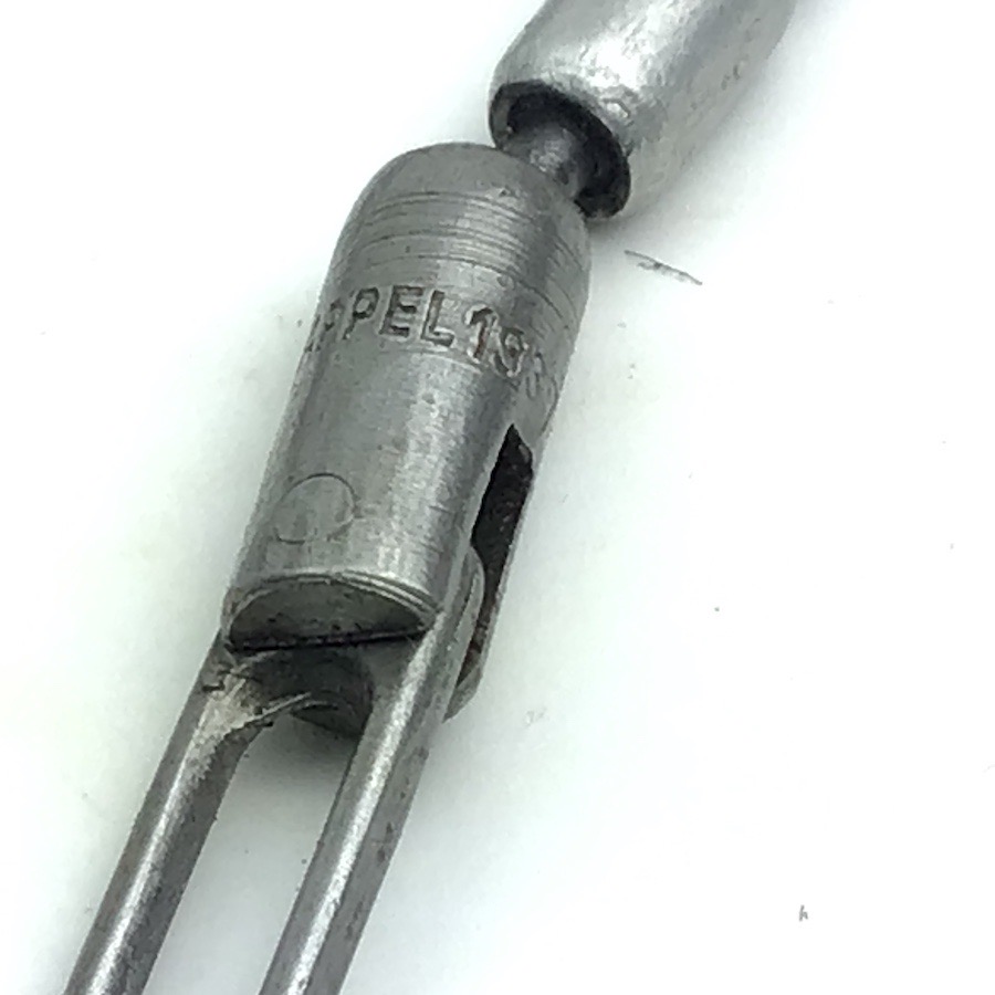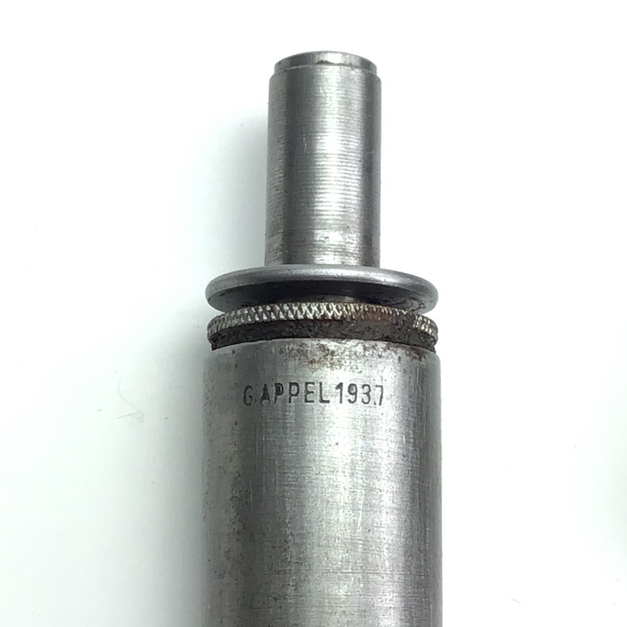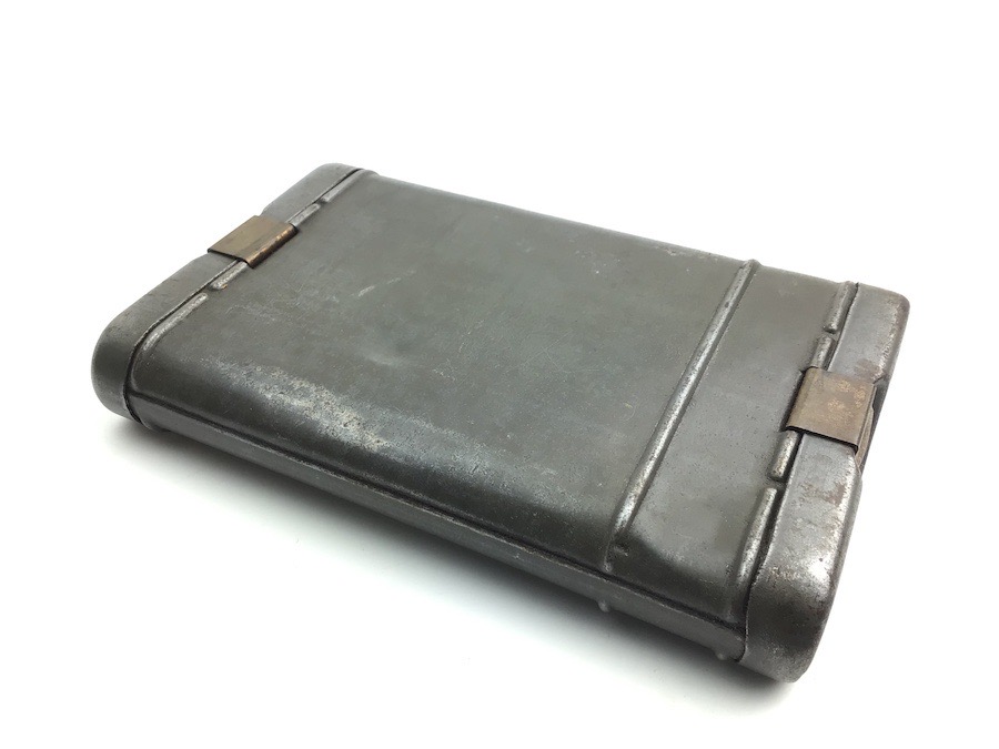 1/31/24 – Located at our Ohio office. Original and great condition cleaning kit for the Mauser K98 8mm rifle. The tin has typical wear a few dents. The lids and clasps function properly. One lid is stamped “64” along with military waffen “WaA20” . The oiler and pull chain are maker and date stamped “G.APPEL 1937”