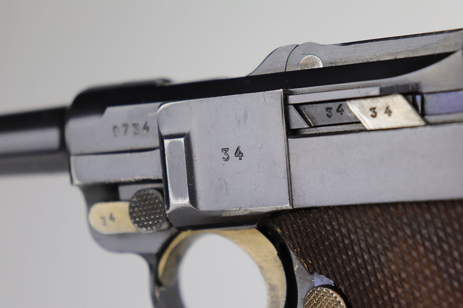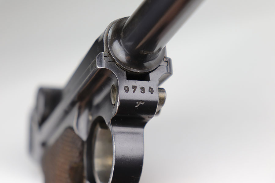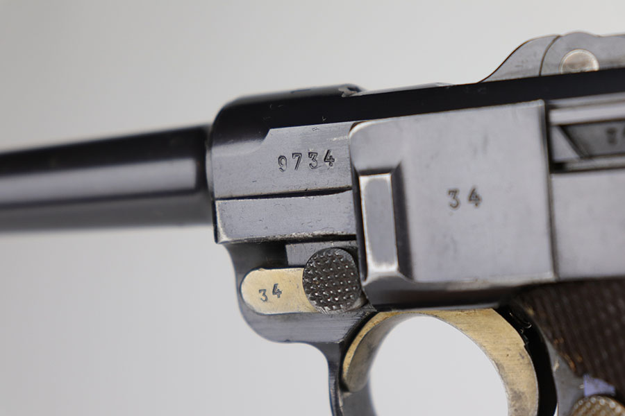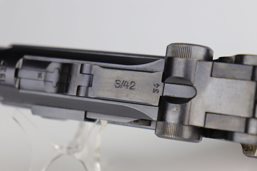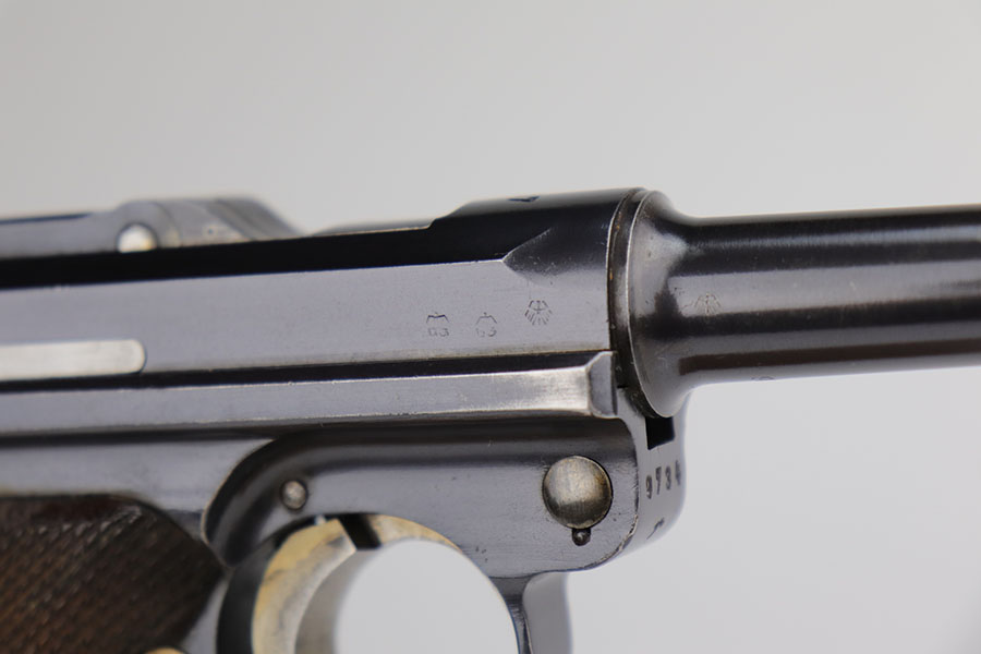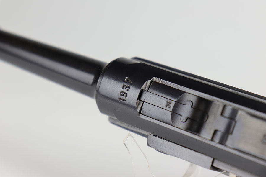11/3/20 – This is a nice example of a complete Nazi Mauser Luger rig from 1937 with holster, spare magazine and tool. The gun has all matching numbers with about 94% of the original blue remaining. There’s just standard high edge wear from the holster on sideplate, muzzle, rails and stock lug. It’s a first variation example with strawed small parts, and that original straw rates at about 70%. The grips fit perfectly but are mismatched to the gun, and both magazines are period original but mismatched. Holster is in good condition with 1937 date, waffenamt and Hans Romer maker mark. Rig is completed by an original tool with droop/63 marking. Bore has frost throughout but no pitting.