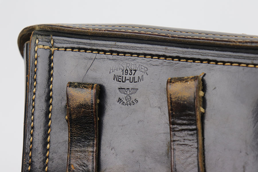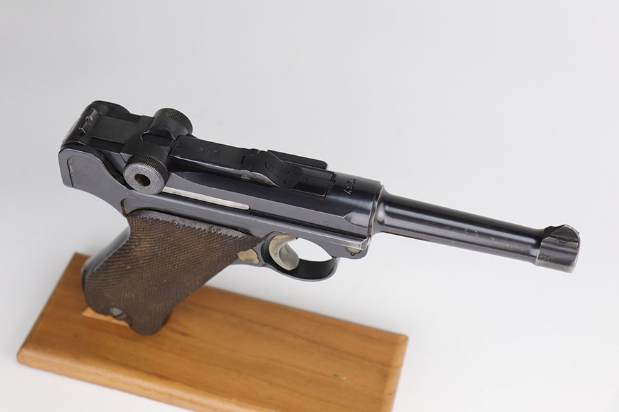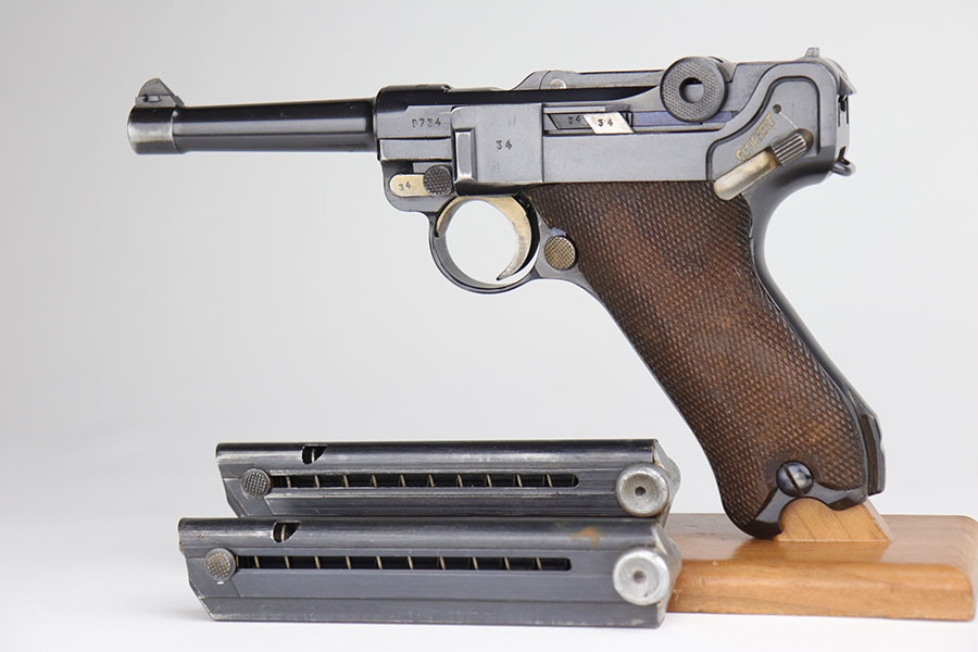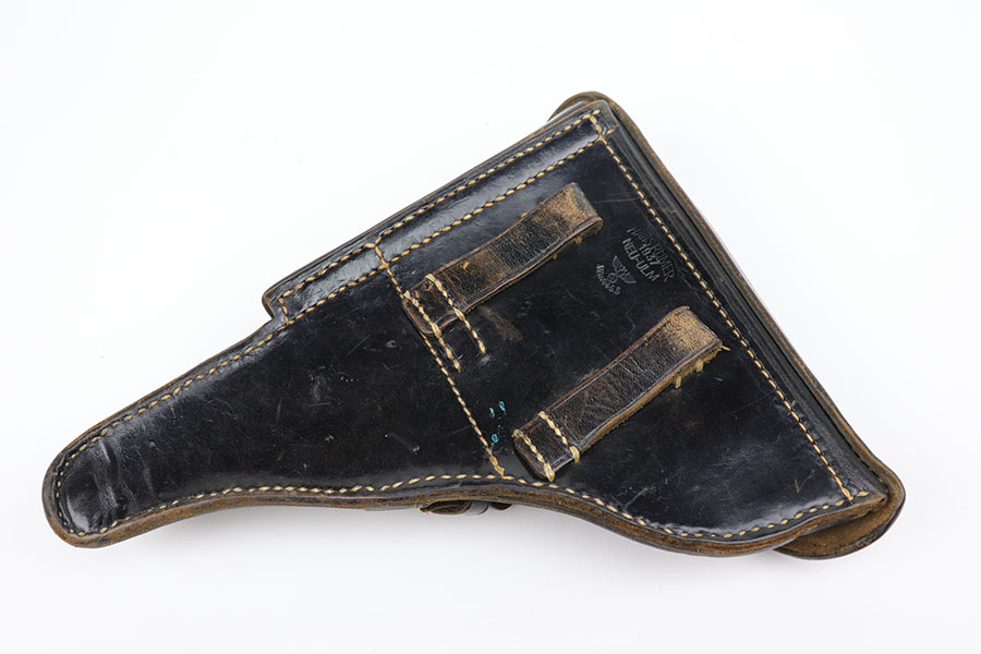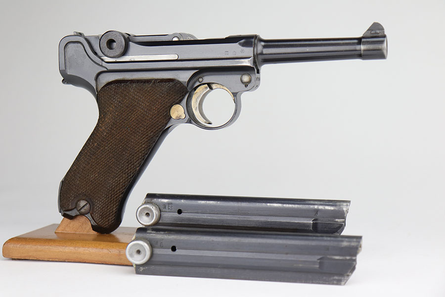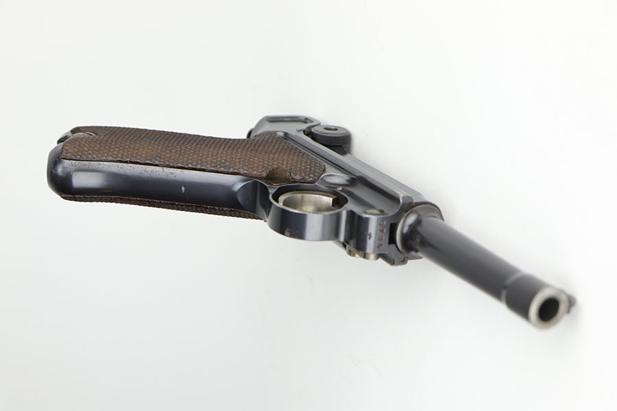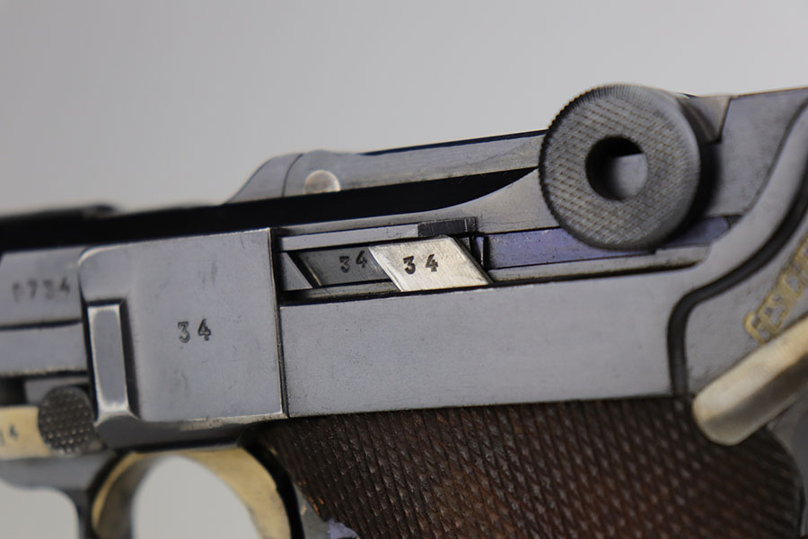 11/3/20 – This is a nice example of a complete Nazi Mauser Luger rig from 1937 with holster, spare magazine and tool. The gun has all matching numbers with about 94% of the original blue remaining. There’s just standard high edge wear from the holster on sideplate, muzzle, rails and stock lug. It’s a first variation example with strawed small parts, and that original straw rates at about 70%. The grips fit perfectly but are mismatched to the gun, and both magazines are period original but mismatched. Holster is in good condition with 1937 date, waffenamt and Hans Romer maker mark. Rig is completed by an original tool with droop/63 marking. Bore has frost throughout but no pitting.