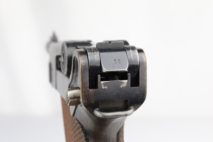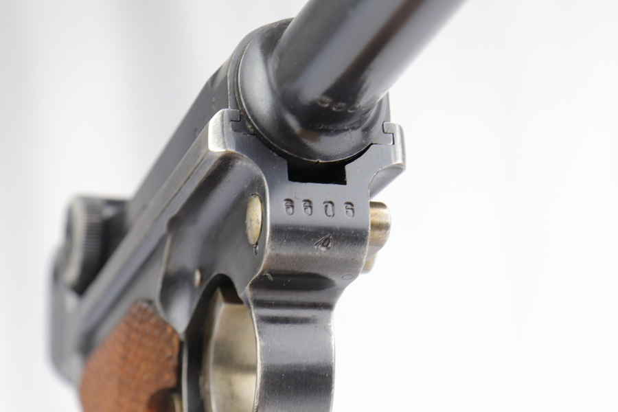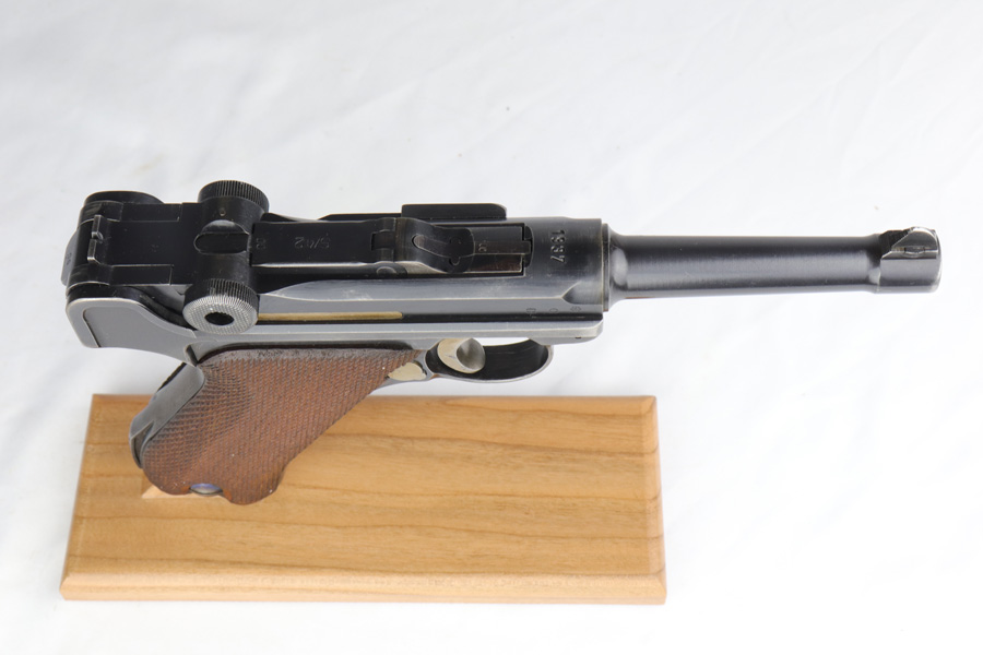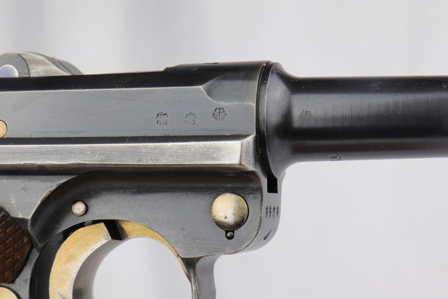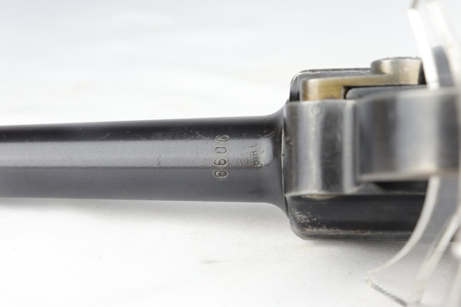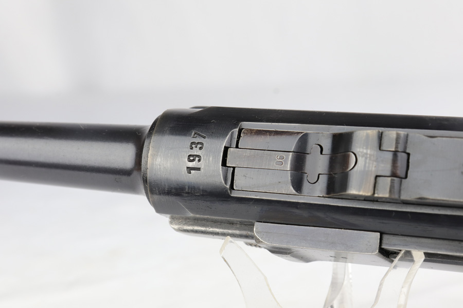 3/11/19 – This is a first variation 1937 Mauser Luger rig with strawed small parts, 1936 dated holster, original takedown tool and two matching magazines. While one magazine appears original and correctly numbered, the second does not appear factory numbered. The pistol is all original and matching though, with about 85% blue remaining. The majority of wear is found on the straps. Small parts have excellent straw. Grips are in great condition and matching numbered to the pistol. The holster shows some age but is in good condition with clearly visible proofs. Proper E/63 tool.