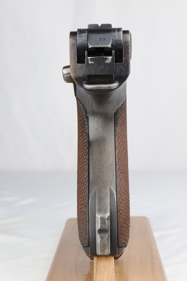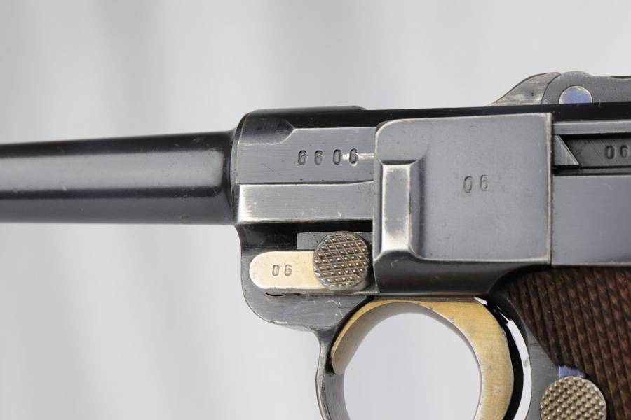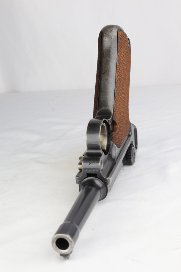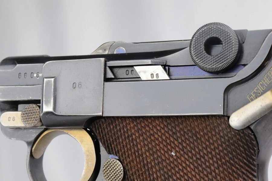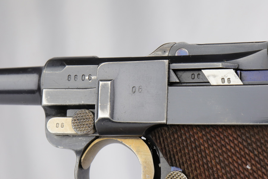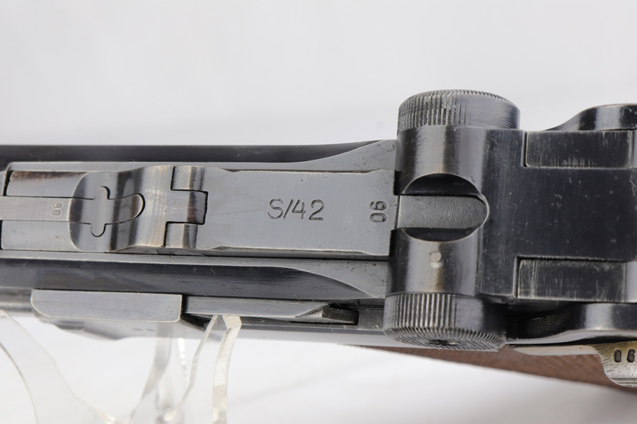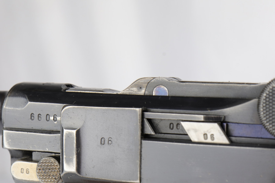3/11/19 – This is a first variation 1937 Mauser Luger rig with strawed small parts, 1936 dated holster, original takedown tool and two matching magazines. While one magazine appears original and correctly numbered, the second does not appear factory numbered. The pistol is all original and matching though, with about 85% blue remaining. The majority of wear is found on the straps. Small parts have excellent straw. Grips are in great condition and matching numbered to the pistol. The holster shows some age but is in good condition with clearly visible proofs. Proper E/63 tool.