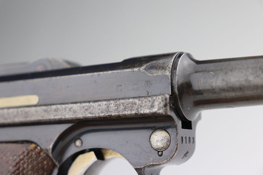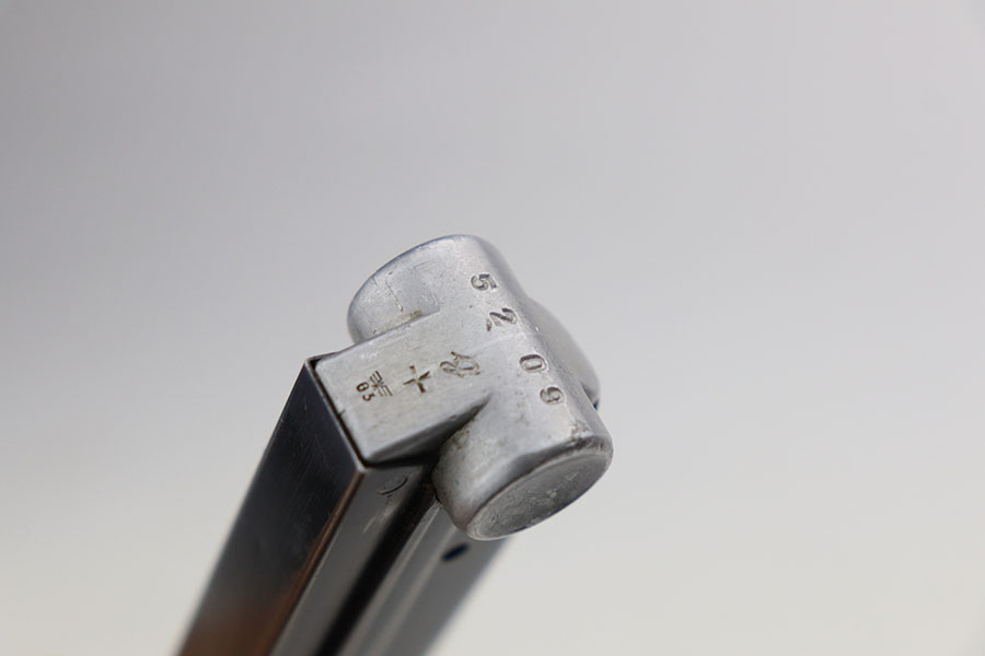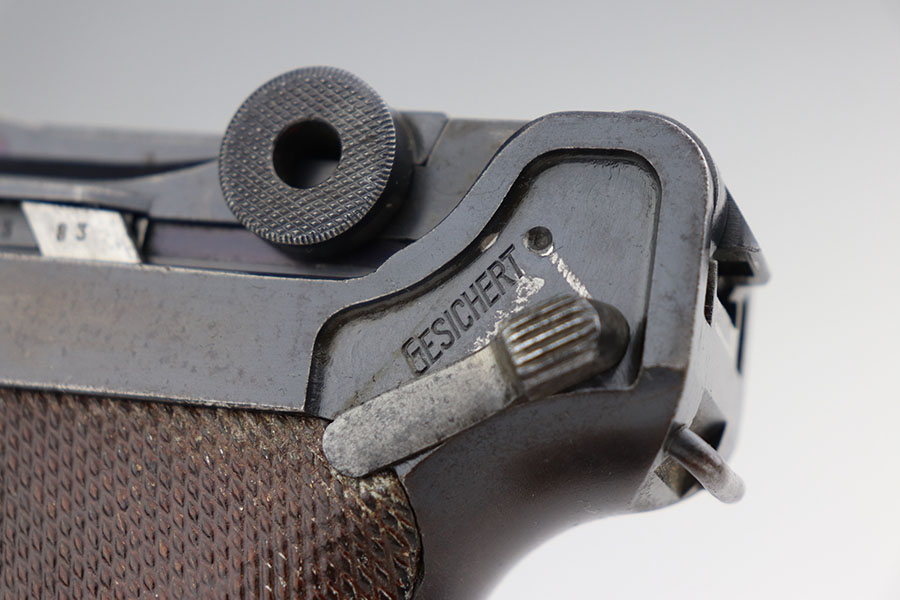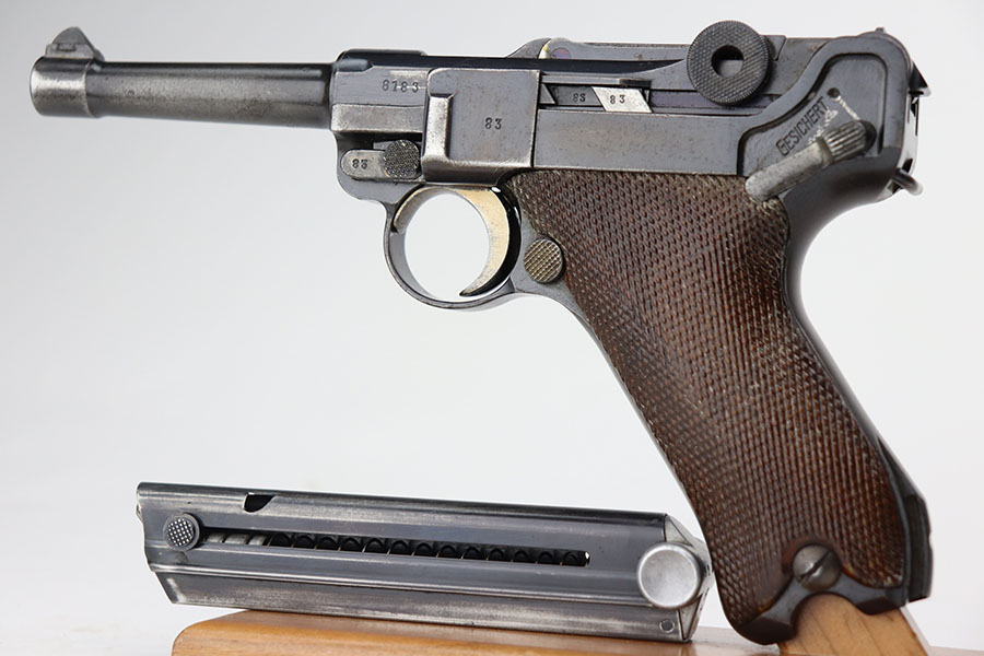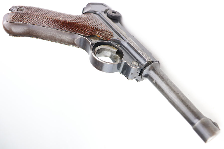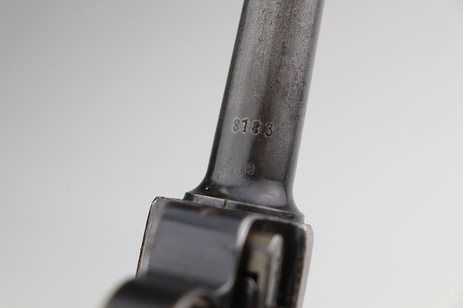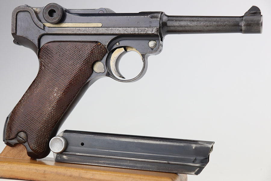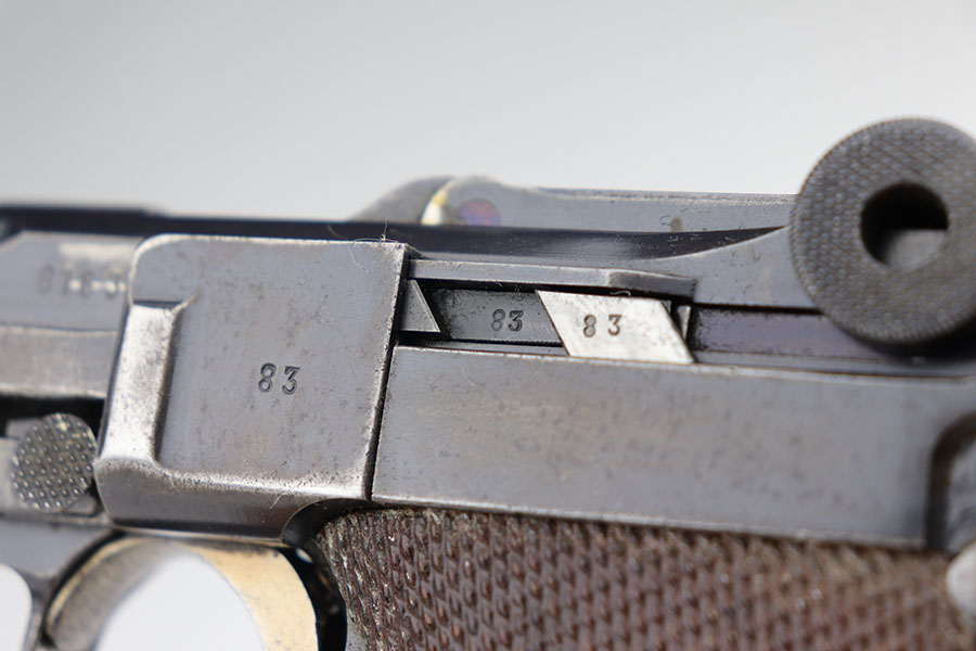 1/26/21 – This is a matching and original Nazi Mauser Luger from 1937. All numbers matching throughout, with unmarked grips and a period original but mismatched magazine. Bluing is original throughout but obviously worn, especially on the straps. The grips fit perfectly but have been lacquered. Bore has some rifling but frost and freckling throughout.