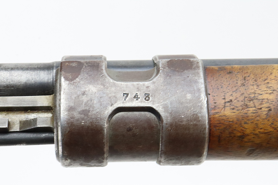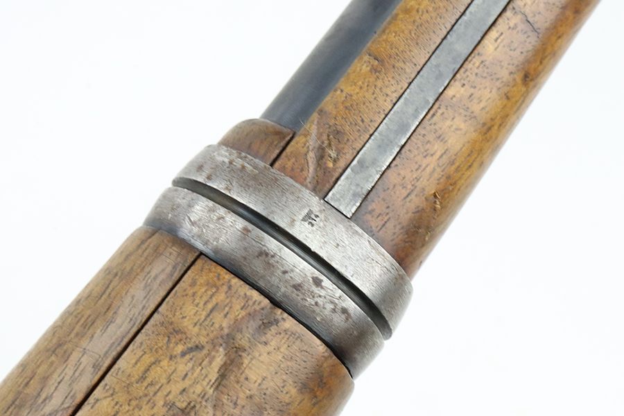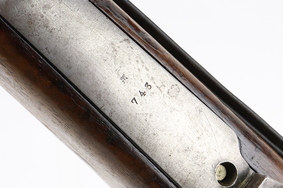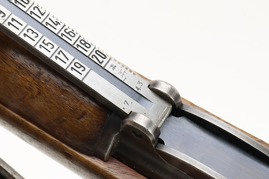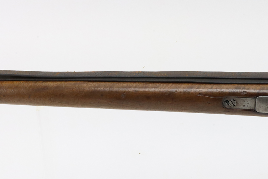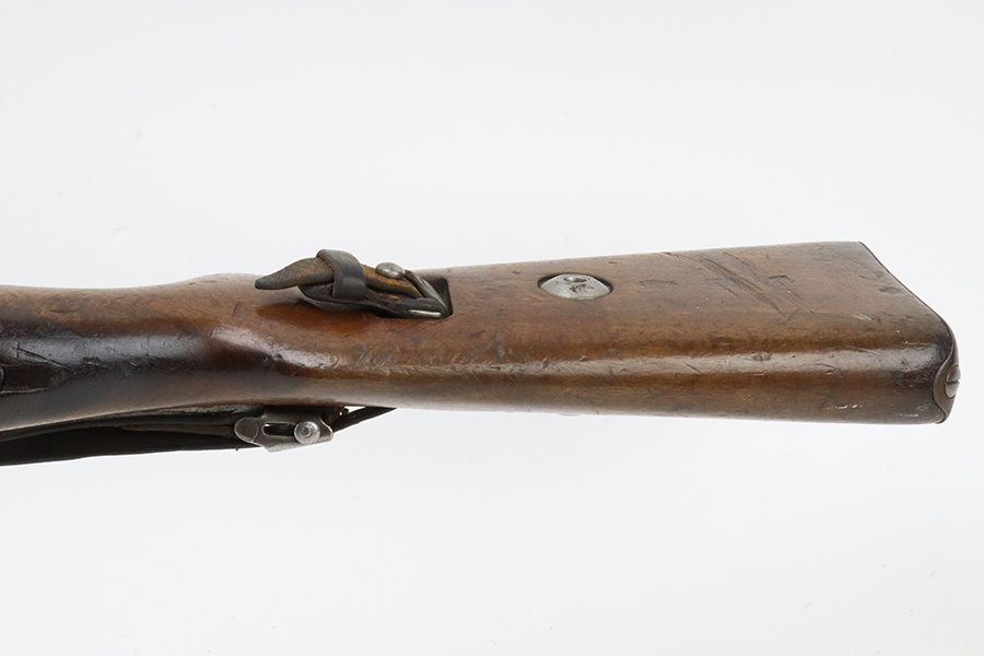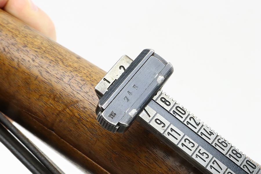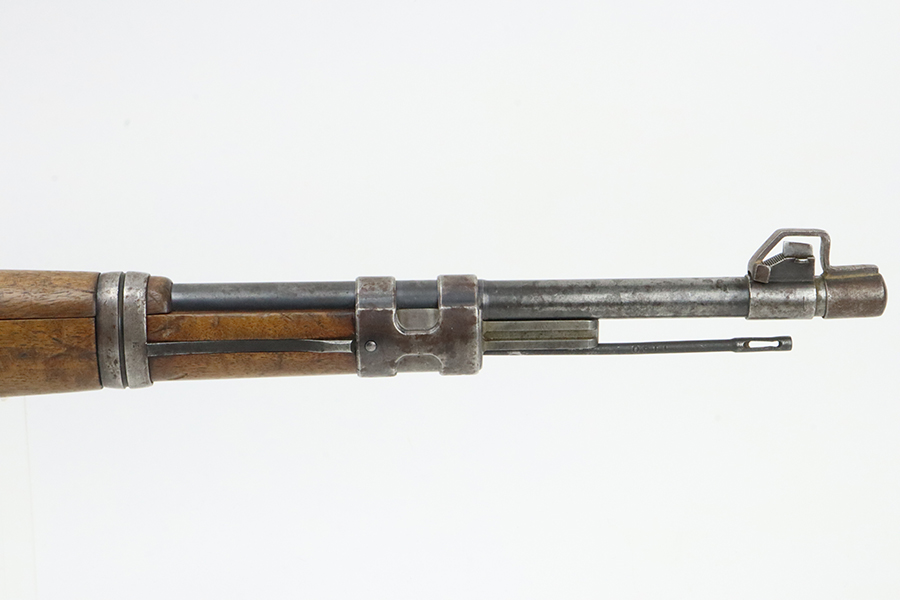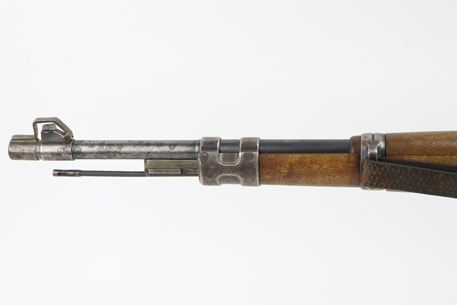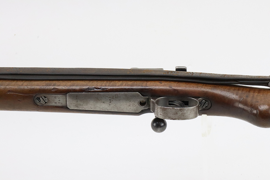 2/5/24 – This is a nice example of an “S/147” Code JP Sauer K98 rifle issued to the Nazi military in 1938. The gun is completely matching, including the wood stock. The metal parts have retained roughly half of their original finish with obvious thinning throughout and noticeable spotty oxidation along the barrel. The wood has no major damage but shows bruising and scratching throughout. The butt stock has visible waffen proofs, but there are some scratches on the right side that obscure some of the proofs. The bore has good rifling with light pin-pricking throughout. Comes with an original leather sling and muzzle cap.