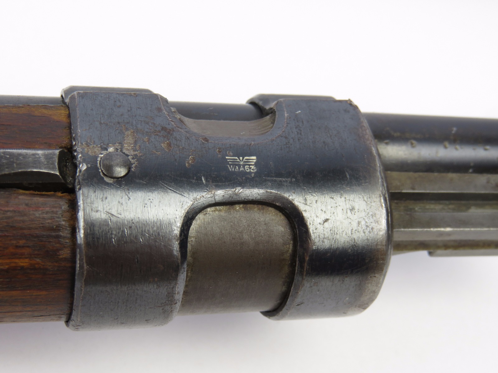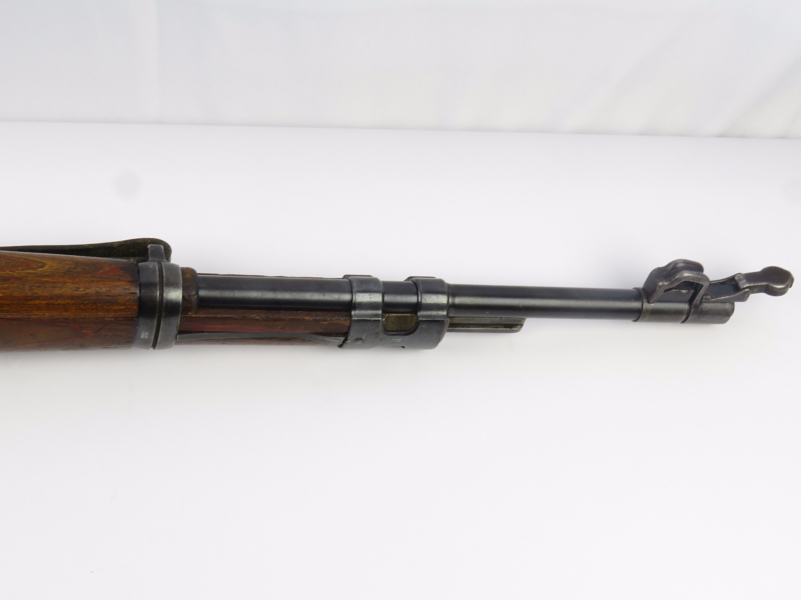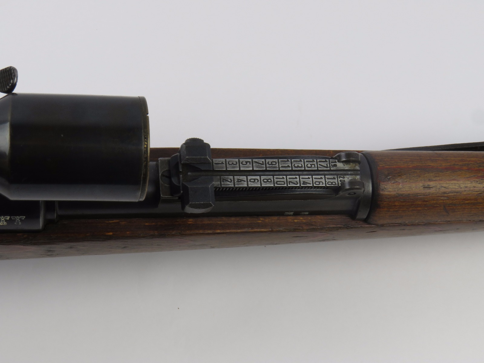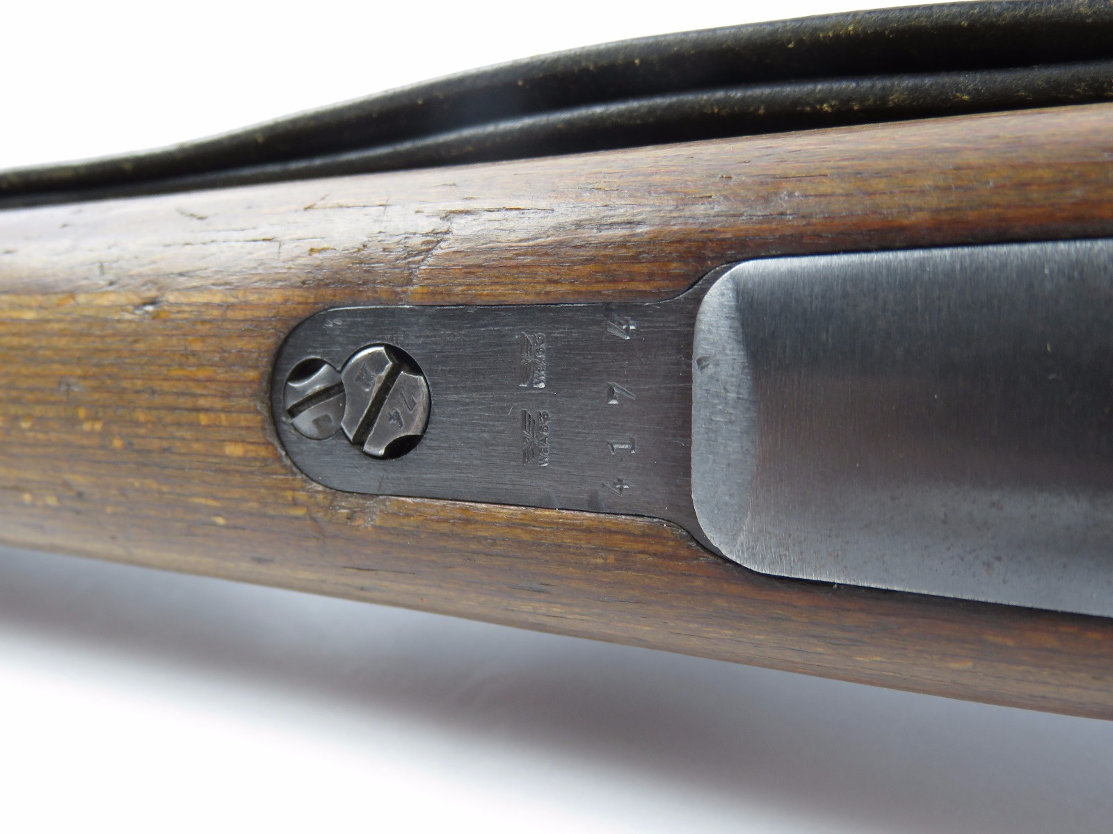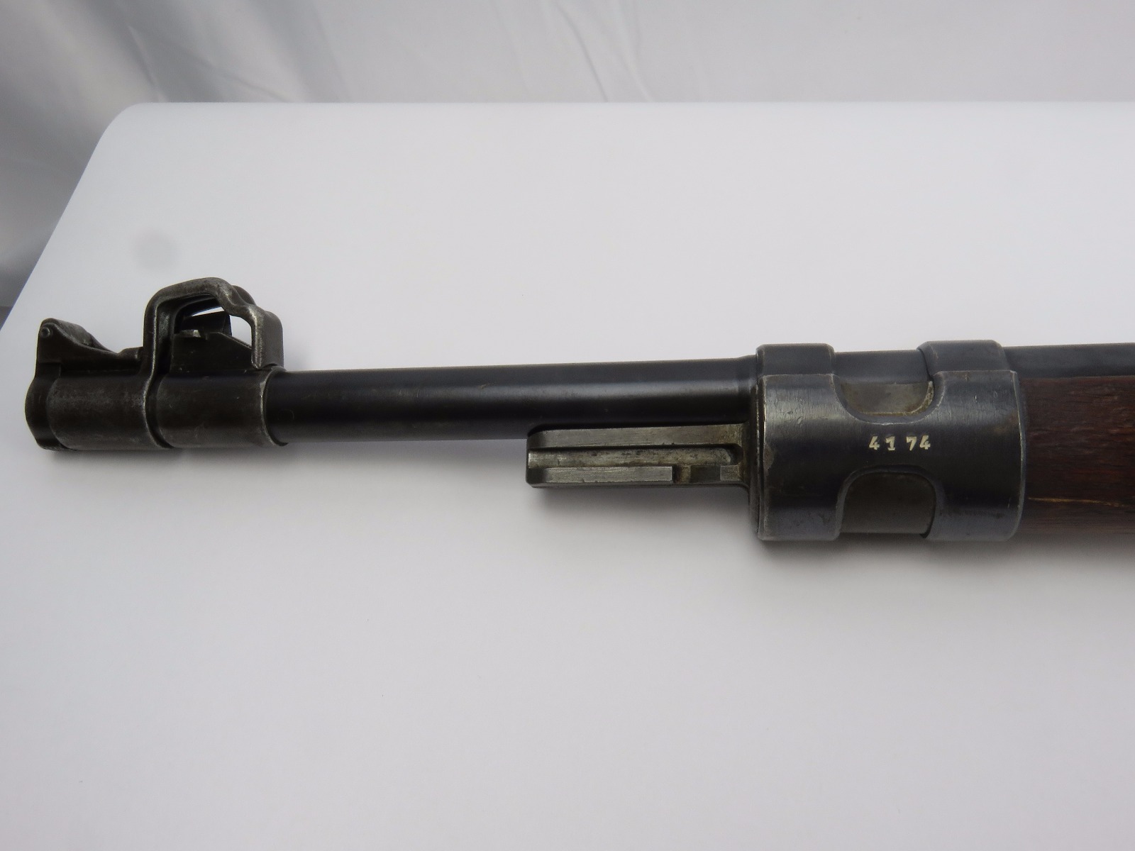 9/28/17 – This is an original WW2 production K98 sniper rifle. The rifle was produced in 1938 and is dated along with a “42” code on the receiver, which is a Mauser production code. The receiver and bolt of this rifle is all matching and correct with minimal wear. There is some surface patina but no notable flaws. The barrel has a little more discoloration as the metal gets closer to the muzzle, where there is a high-end fight sight and barrel cover. This is most likely original to the gun because of how the wear on the cover matches the wear on the muzzle area. It also makes sense that a sniper would want this type of cover for their front sight and barrel. The scope itself is in excellent condition with some browning wear throughout the high polish blued finish. The rear lens has a phosphated finish which is unique. Appears all original and correct. The optics are crystal clear and the reticle is crisp. The scope mount is serial numbered to the gun, and we speculate that this isn’t correct, as the scopes were made in different factories than the guns. However, the font is very close, if not exact to the WW2 German style. Also, the mount fits the wood stock perfectly and there are no signs of tampering. This could very well be the original scope that was issued with this sniper rifle. The stock is lightly sanded, and there is some minor wood chewing at the lower end of the butt plate. Overall the stock is in great shape with no major issues though. There are multiple eagle/63 eagle proof stamps on the side and underside of the wood. (Two underside and Two on the side of the stock, with one additional eagle-only stamp on the side of the stock.) The parts are all matching, correct, and original guaranteed.
