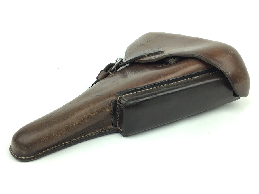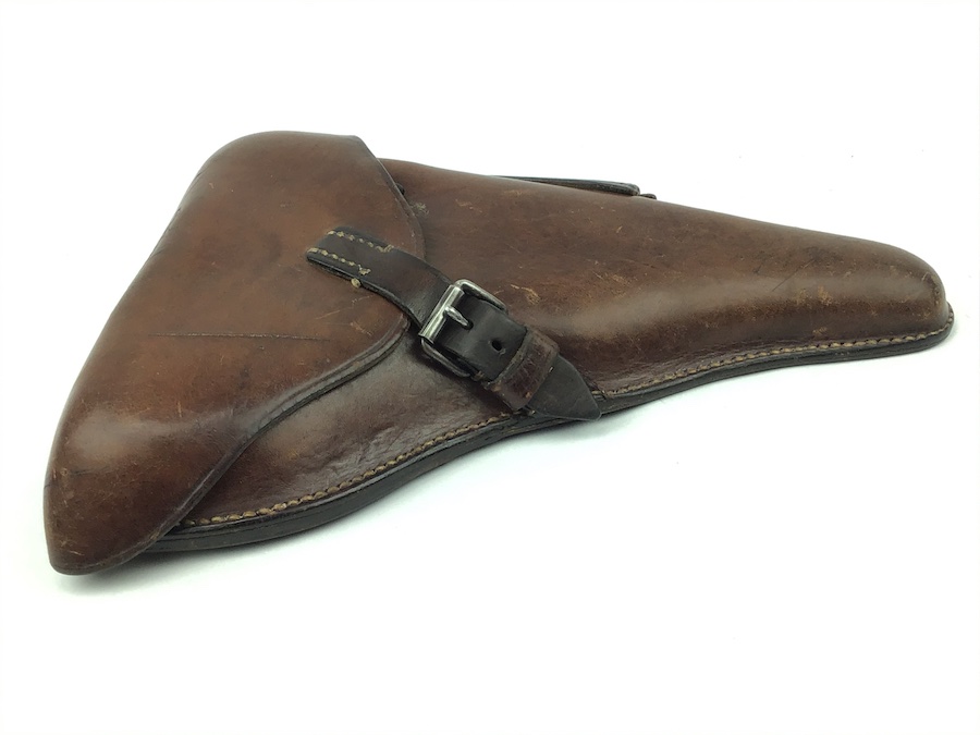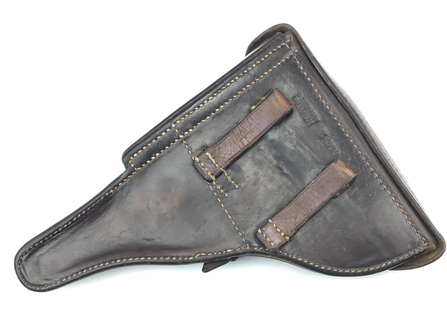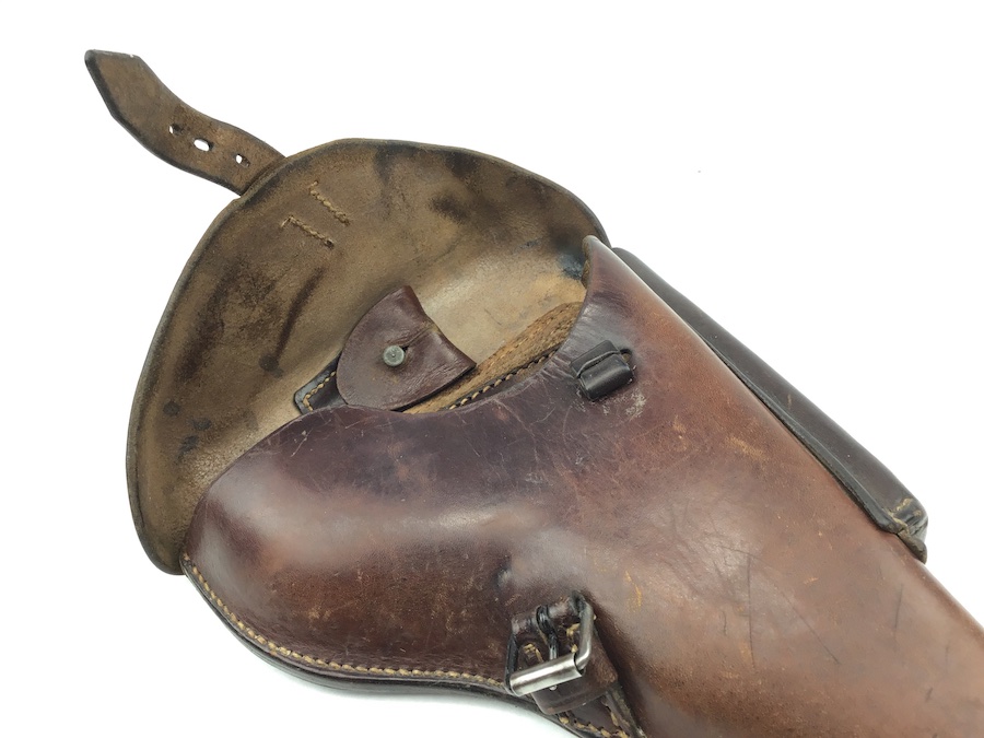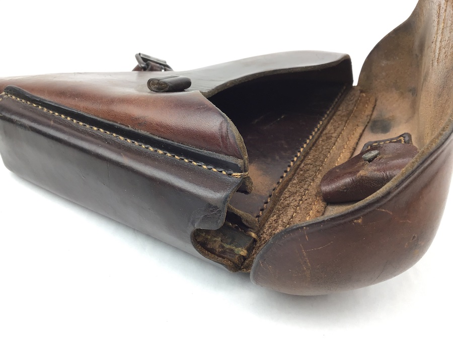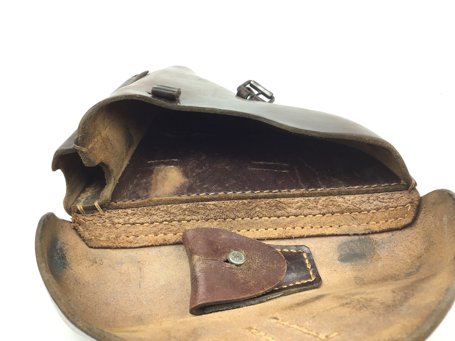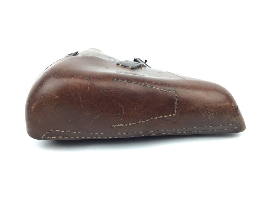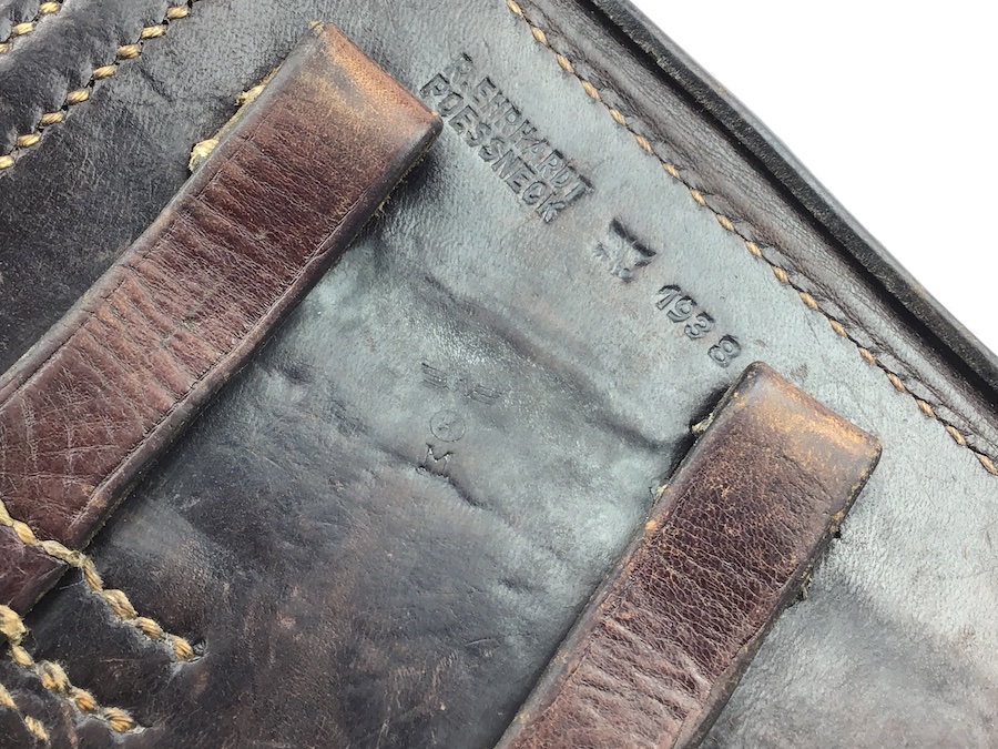 10/16/20 – This is an original 1938 dated Kriegsmarine holster. The back of the holster is dated, faint waffen proofed, Kriegsmarine eagle/M proof, and maker stamp. The holster is in great to excellent condition with all original stitching and leather in tact. The leather is strong with good pliability. The interior leather is clean with a secure lift strap. Guaranteed all original and authentic.