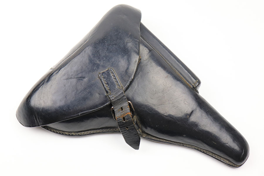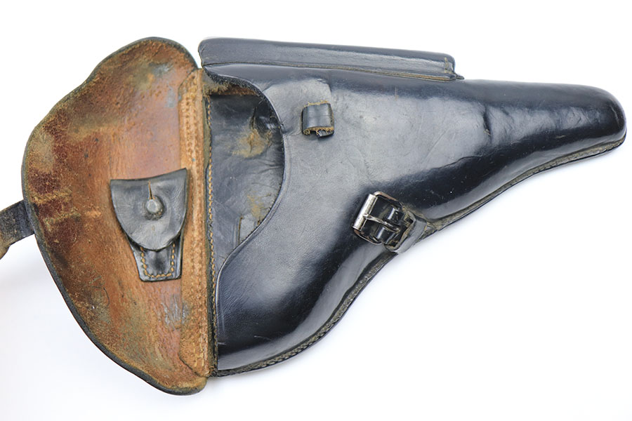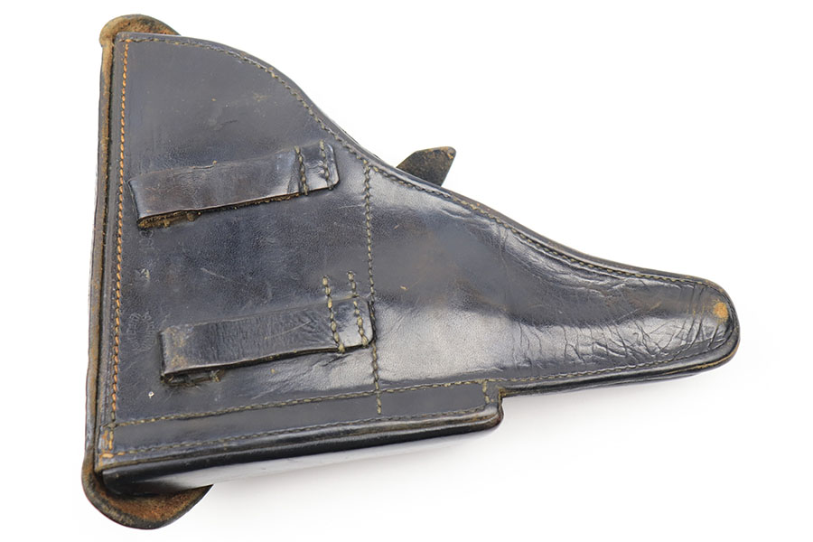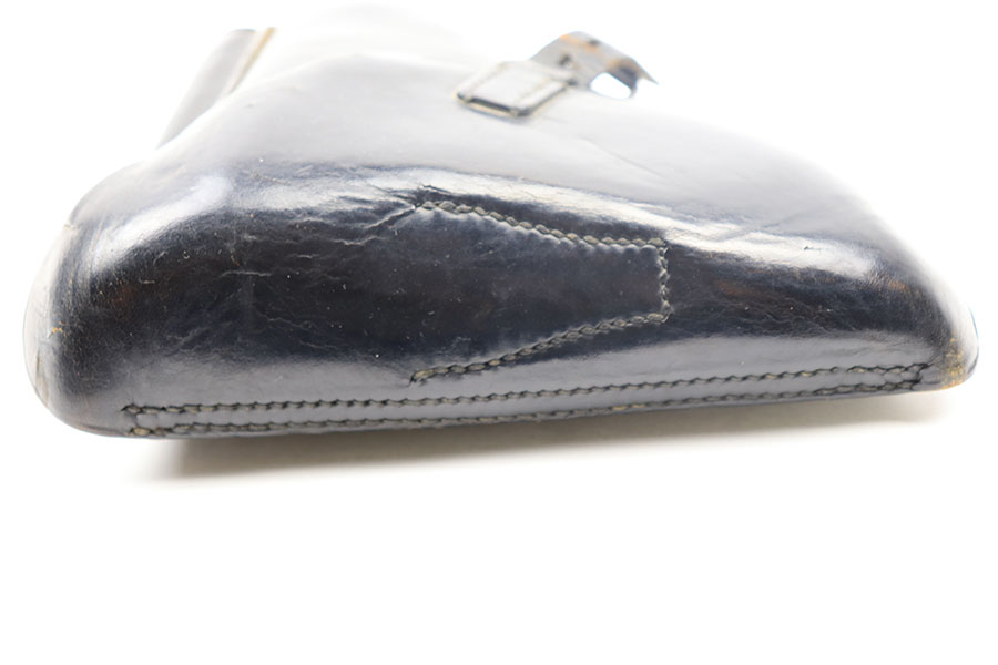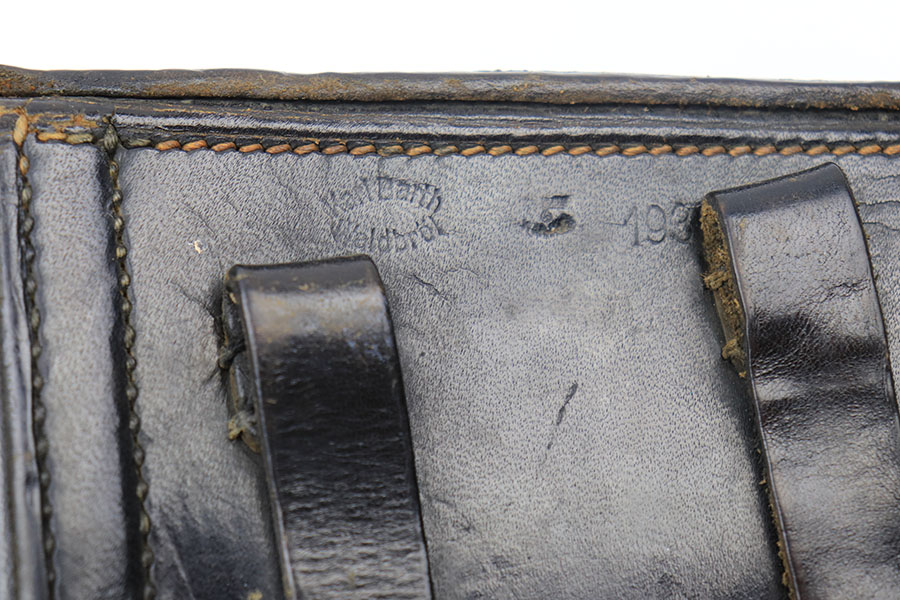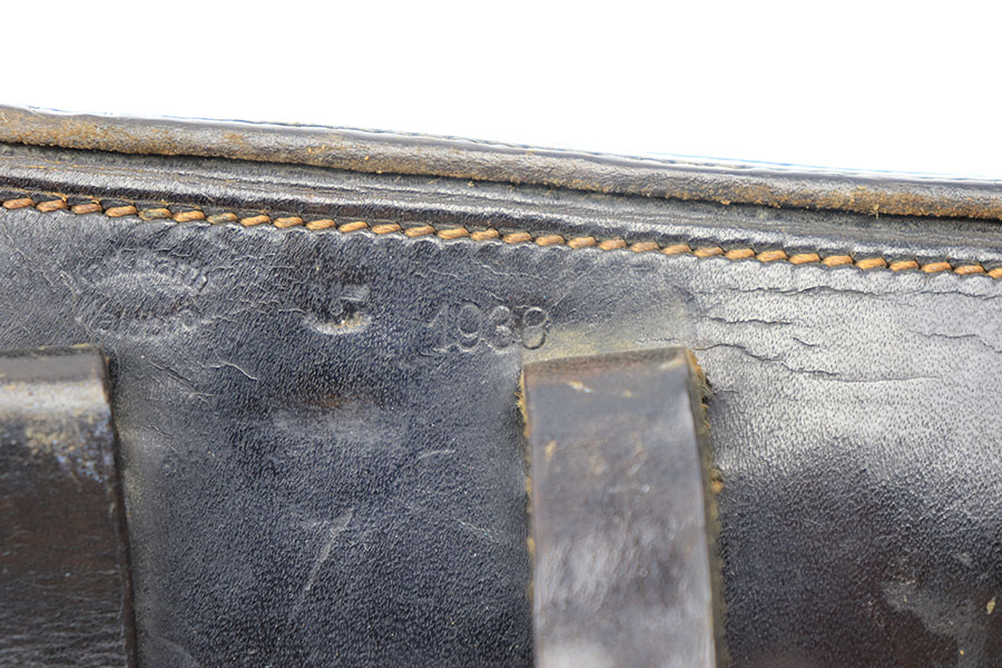 5/10/21 – This is an original 1938 dated Luger holster. The holster is maker stamped, dated and waffen proof stamped on the back leather. The leather is in great condition with some mild surface wear and light pliability but no major issues. Some signs of previous use on the interior leather. No stitching issues.