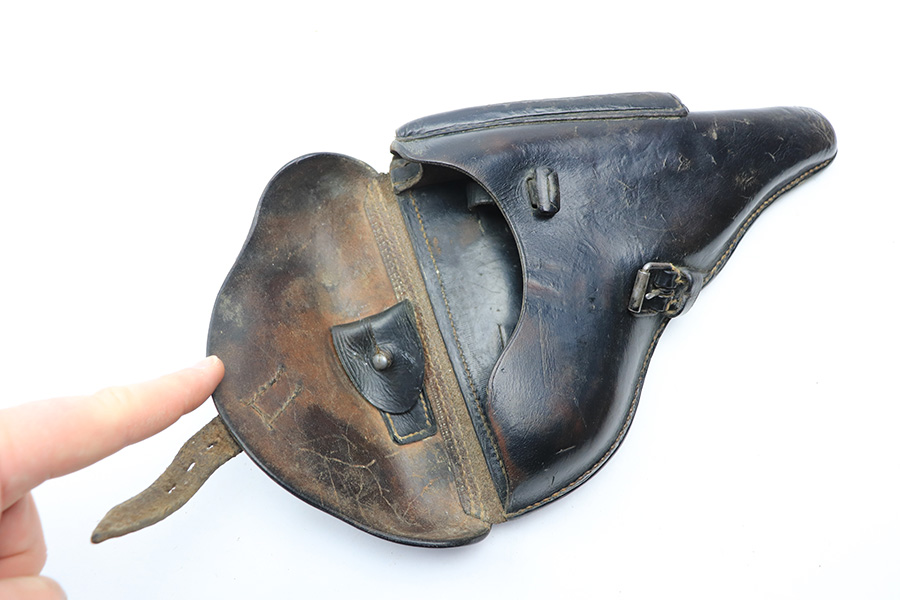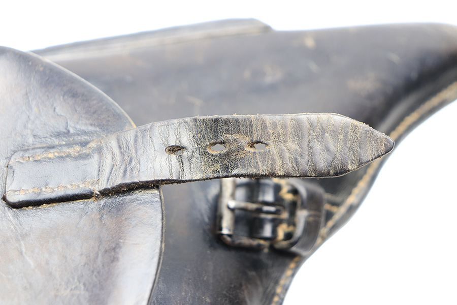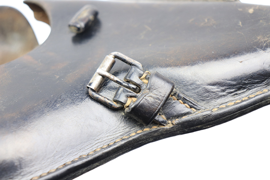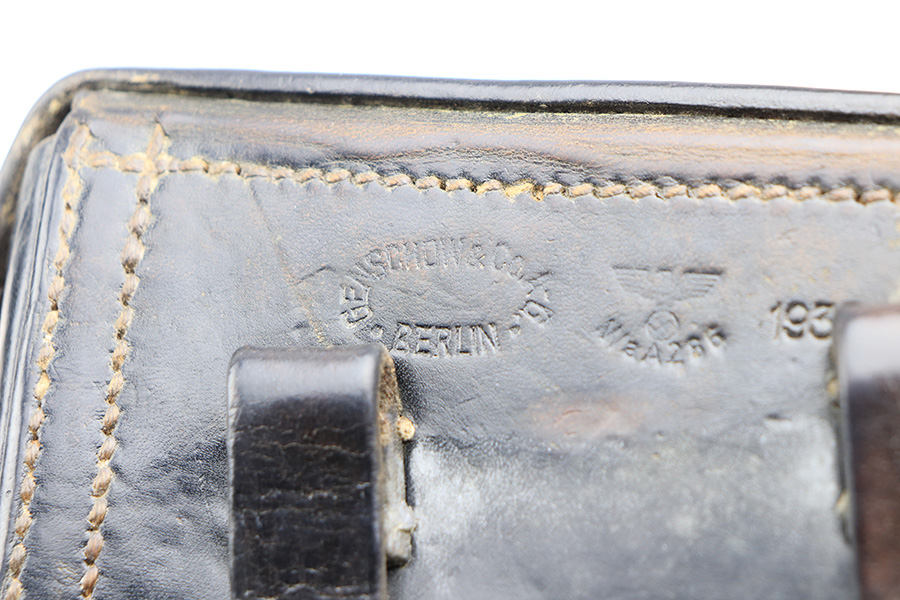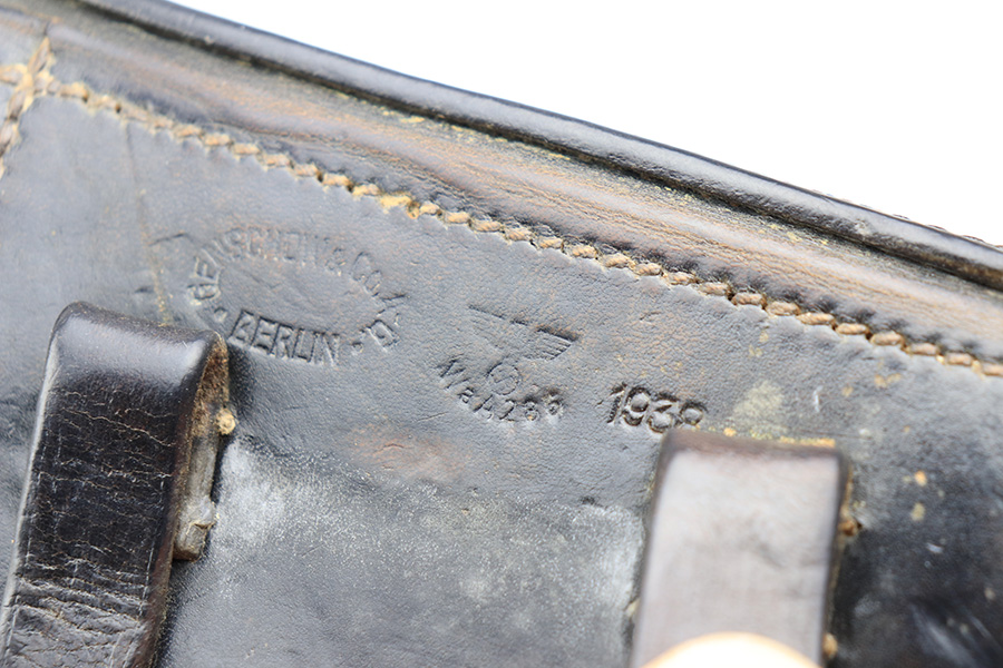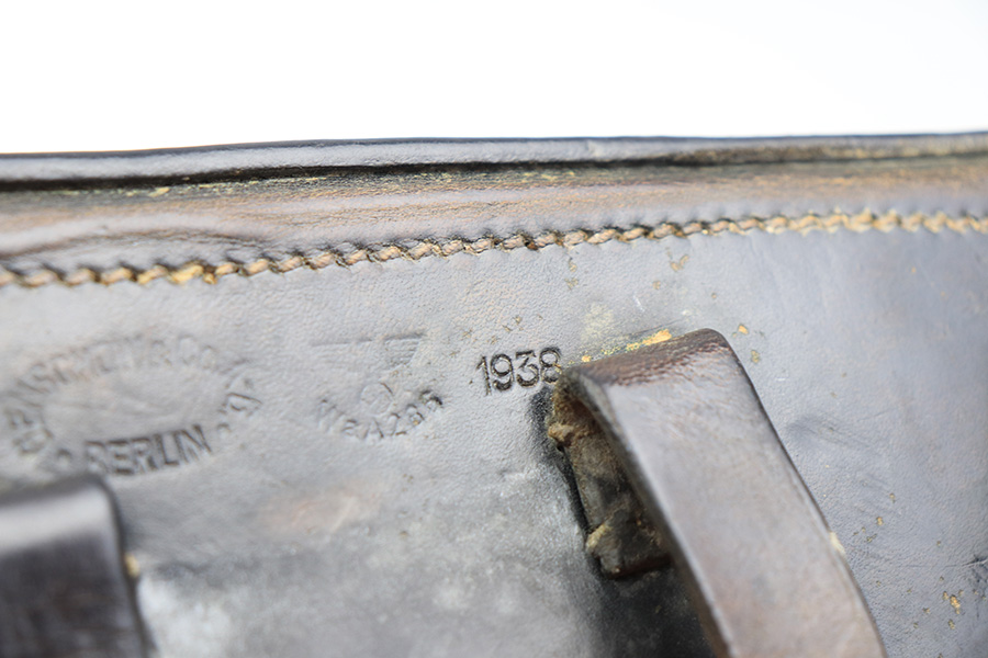 3/3/22 – This is an original 1938 Luger holster from WW2. The back of the holster is dated, maker stamped, and waffen proof stamped. The leather ahs normal signs of aging and pliability with no excessive wear or damage. There’s surface wrinkling and scuffs, mostly near the front toe of leather and on the magazine pouch. No stitching issues of note and a fairly clean interior.