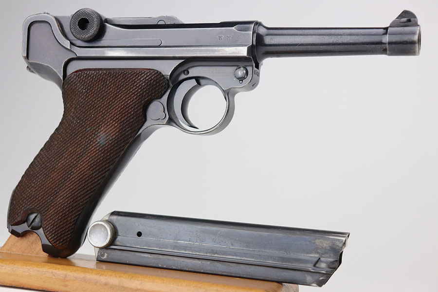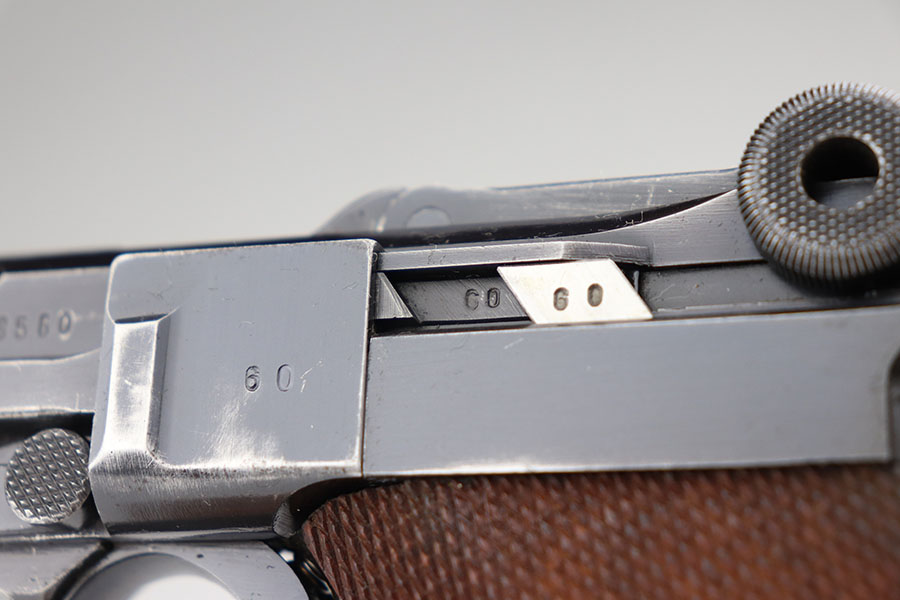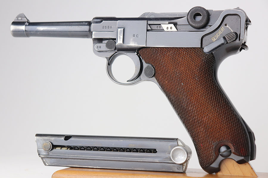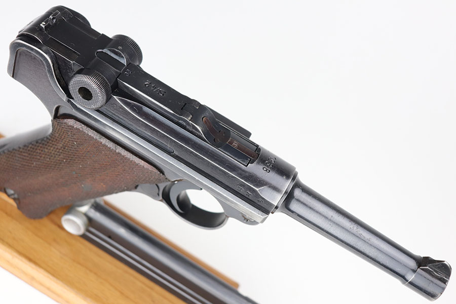 1/29/21 – This is an original and matching example of a 1938 Nazi Mauser Luger with both of the original, matching magazines. The blue rates at around 92% with wear on the right side rail, sideplate, left side of barrel and bottom of front strap. Excellent bore. Terrific grips aside from a small patch of smoothing on the right panel. Both magazines are original and factory numbered to the gun. Comes with an excellent 1939 dated holster.