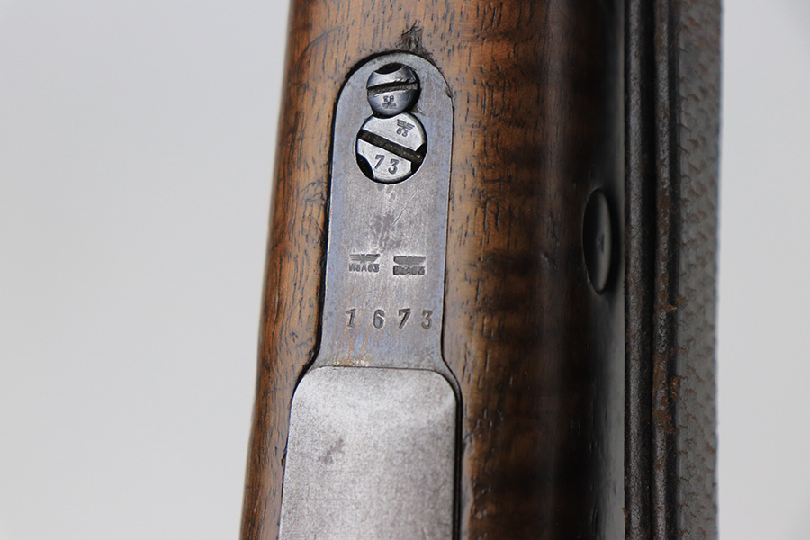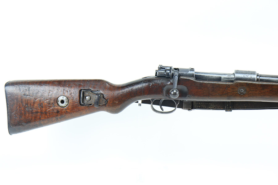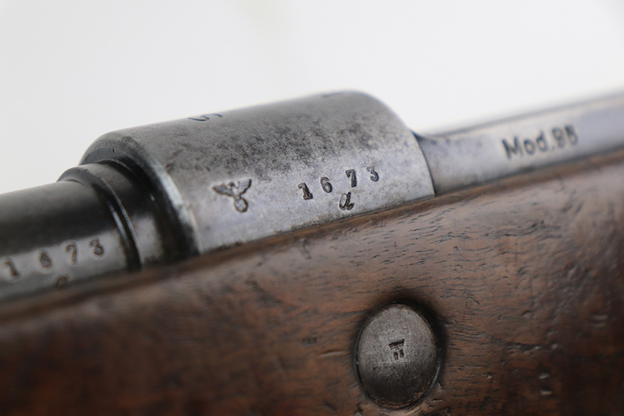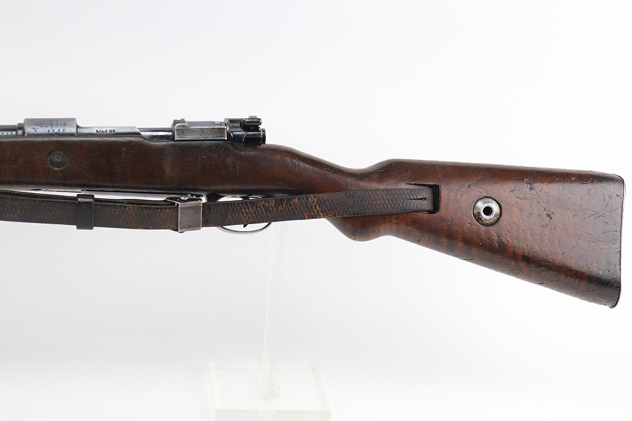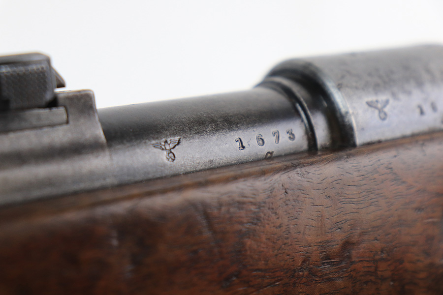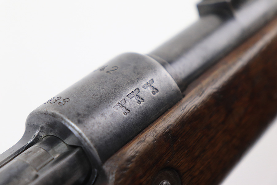 12/10/21 – This is an all matching and original Nazi Mauser K98 from 1938. It’s Heer Army marked on the stock with several other clear waffenamts. It’s a nice, honest example of an original Nazi K98 that may have seen some action. Matching numbers throughout include the stock, buttplate, bolt assembly, receiver, barrel, rear sight, trigger assembly, barrel bands and even the original cleaning rod! The finish is obviously thin throughout but no notable pitting. The bore has strong rifling but a little frost and freckling throughout. Comes with period original sling.