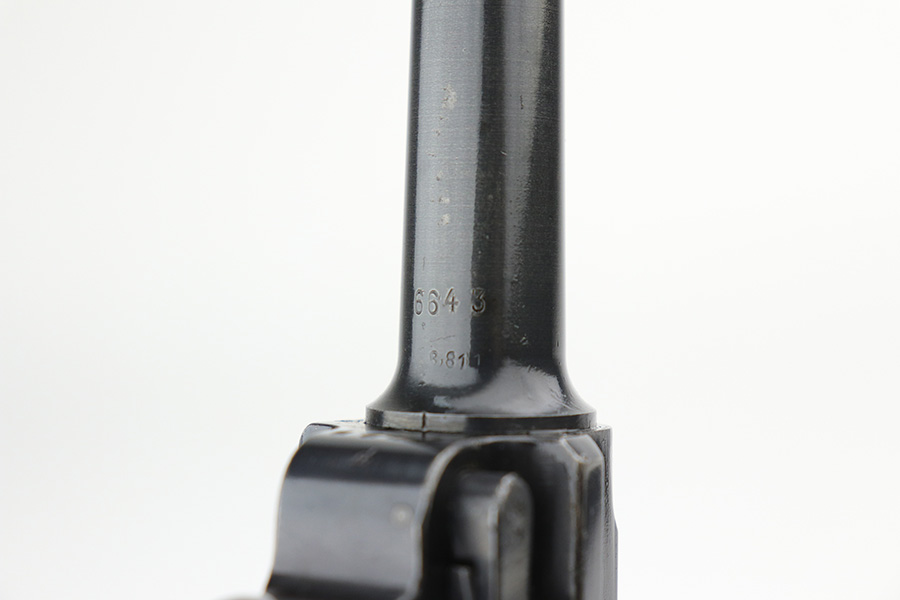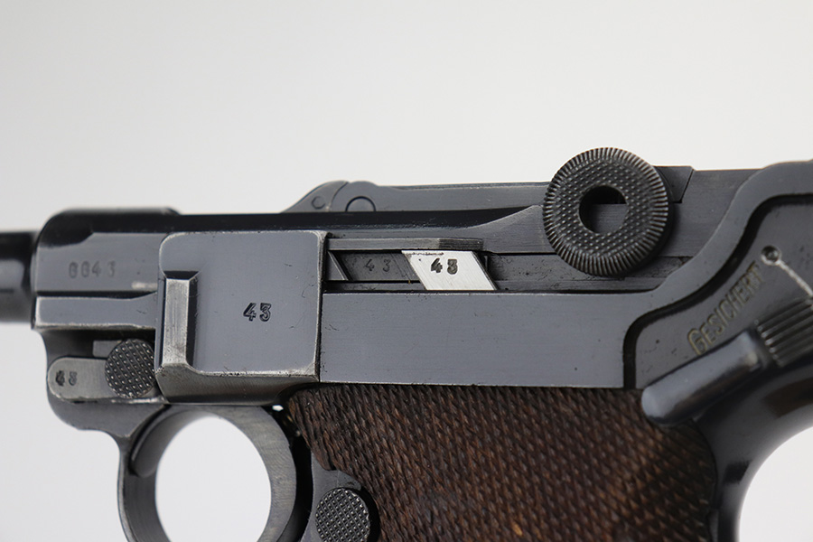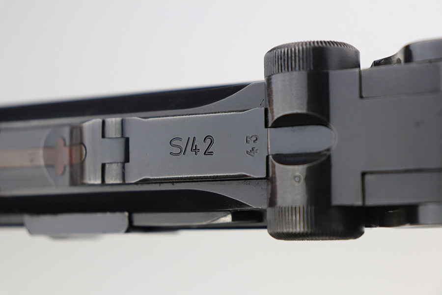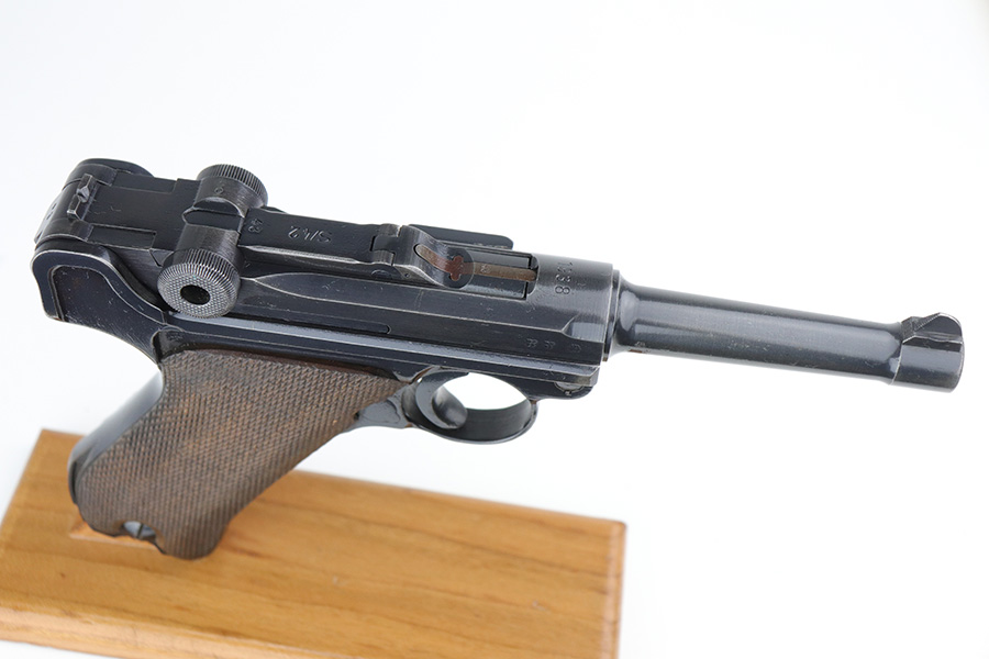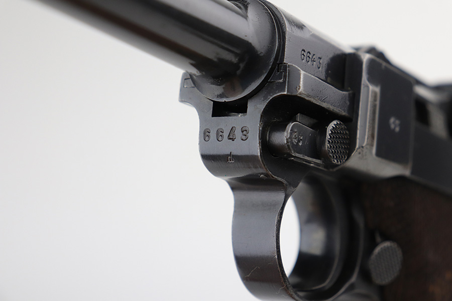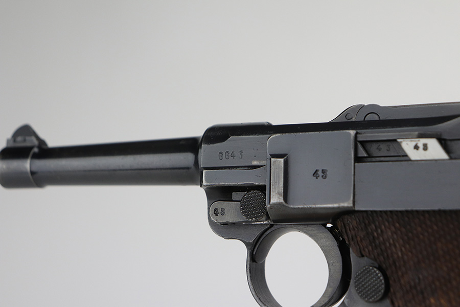 9/24/21 – This is an excellent example of a Mauser Luger issued to the Nazi military in 1938. It is all matching and has the proper “Eagle 63” military proofs. It has retained about 96% of its original finish. There is very minor wear on the side plate and on the side rails. Minor wear and some minor pin-pricking around the muzzle. Minor thinning and spotty wear on the barrel. Some light scratching on the front strap. Comes with nice matching grips – some minor bruising. Also comes with a period-correct mismatched re-numbered magazine. The bore has good rifling with minor pin-pricking throughout.