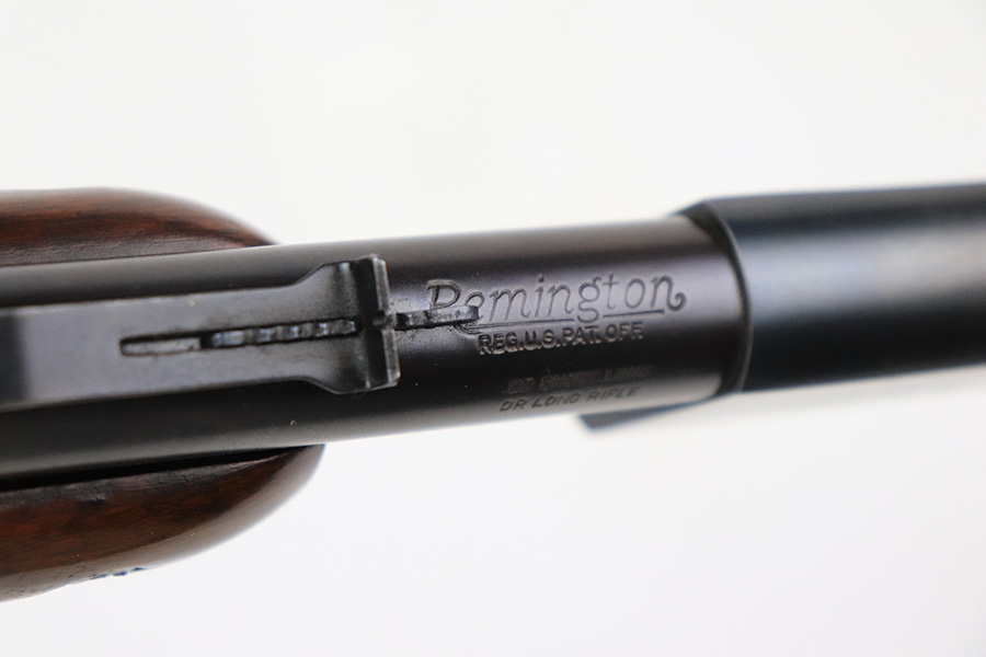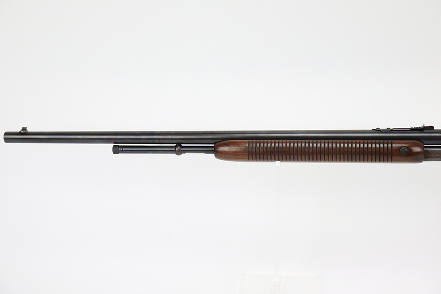 8/31/22 – This is a very nice example of an early Remington Fieldmaster Model 121 manufactured in January of 1938 and chambered in .22 short, long, long rifle. All matching and all correct. There is almost no actual finish loss, but there is brown patina visible under most of the bluing. The wood stock is nice with only minor dings and scuffs here and there. Mint bore.