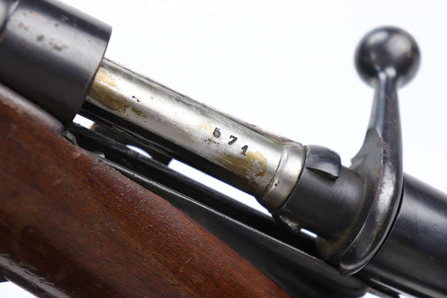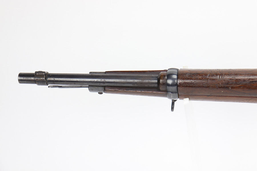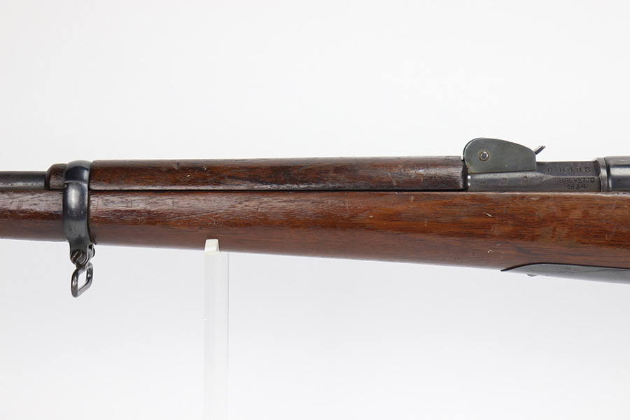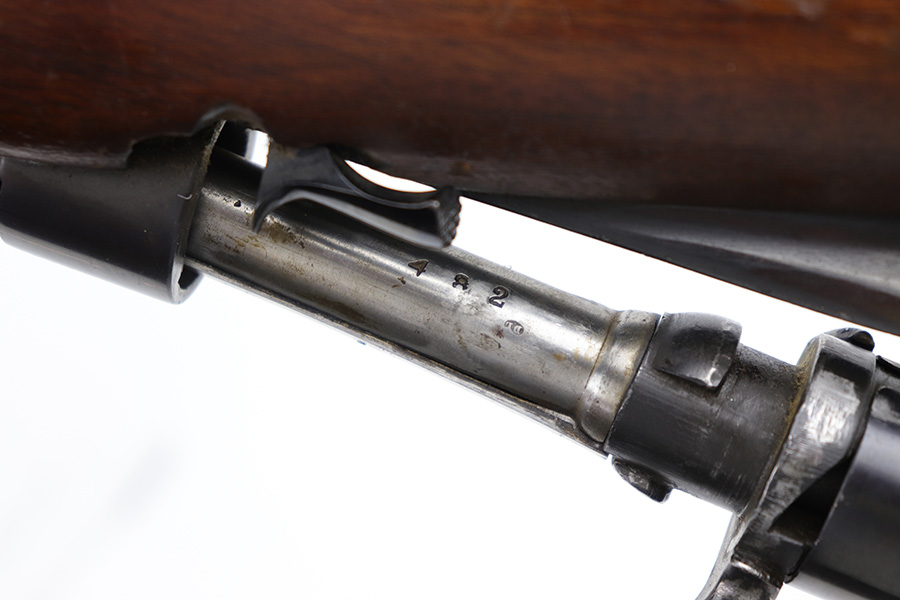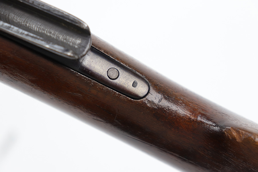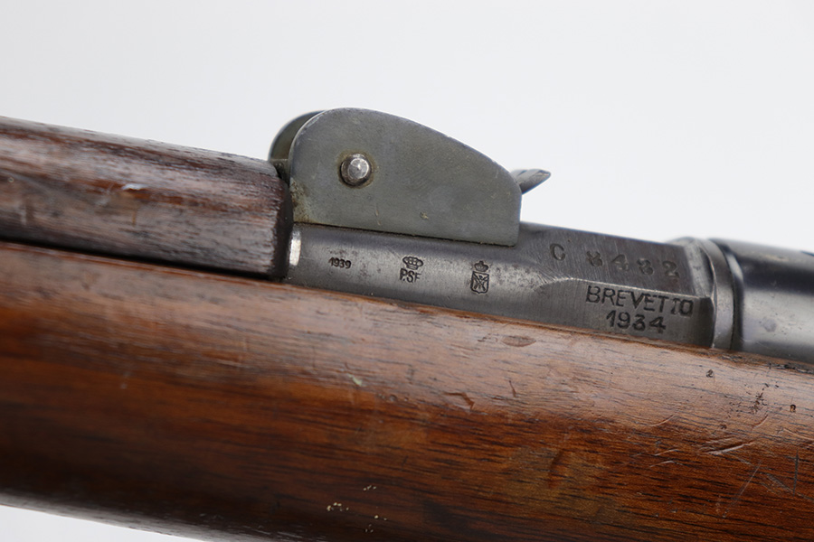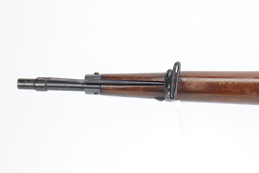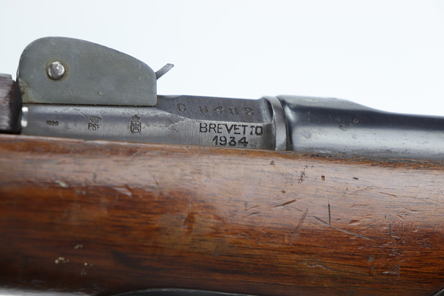 6/15/23 – This is a Beretta Model 1934 Training Carbine, manufactured in 1939 and chambered in .22 LR. All matching with the proper Italian proofs throughout. The metal parts have retained about 95% of their original bluing. Most of the actual finish loss is on the butt plate, where there is spotty oxidation. Beyond that, most of the wear is light spotty discoloration throughout and some handling marks here and there. The wood furniture has no major damage but shows obvious signs of wear, mostly scratching. Comes with original cleaning rod. Mint bore.