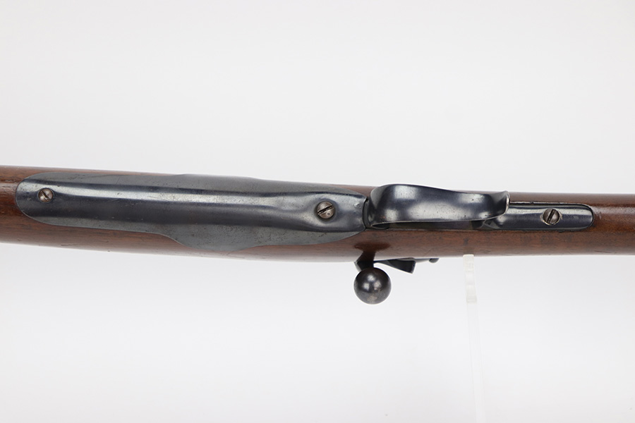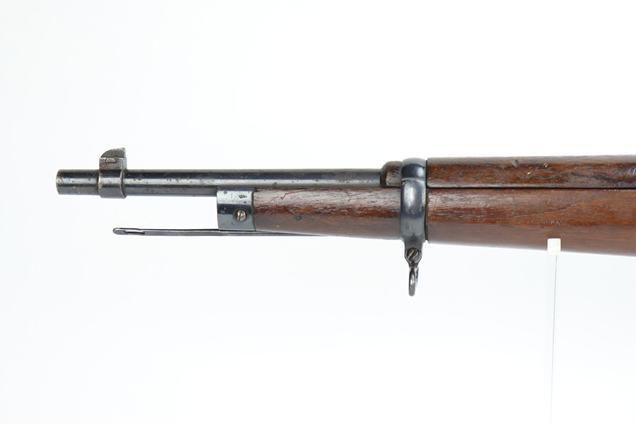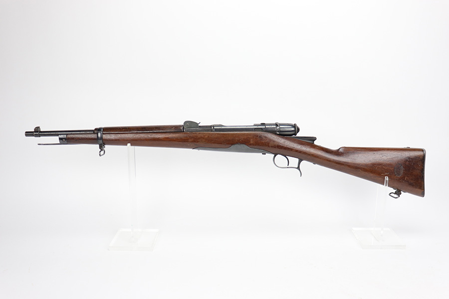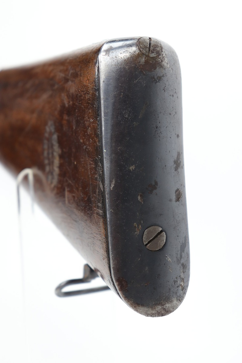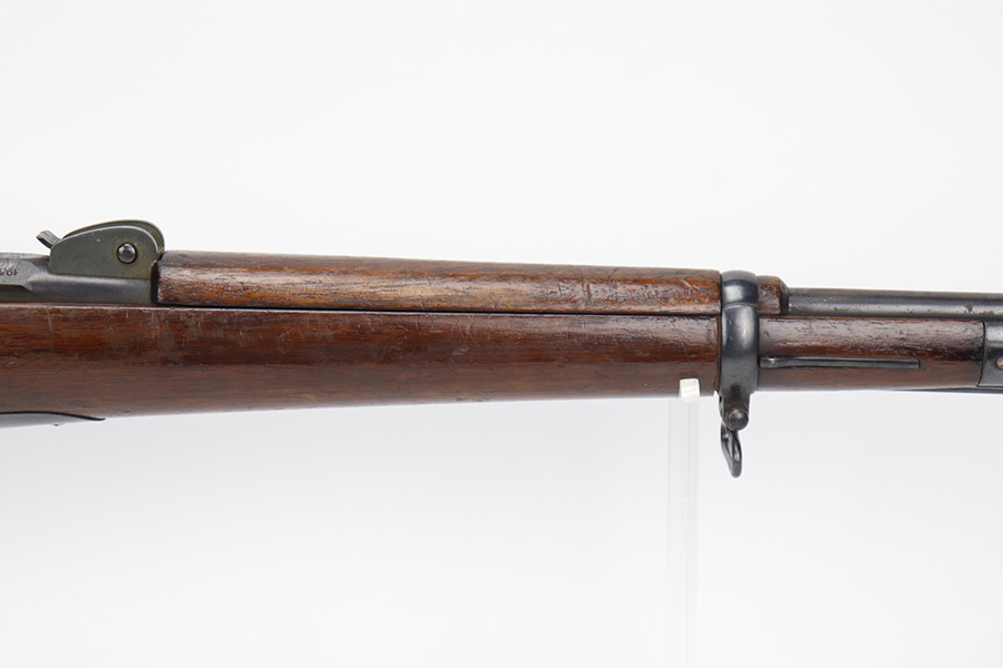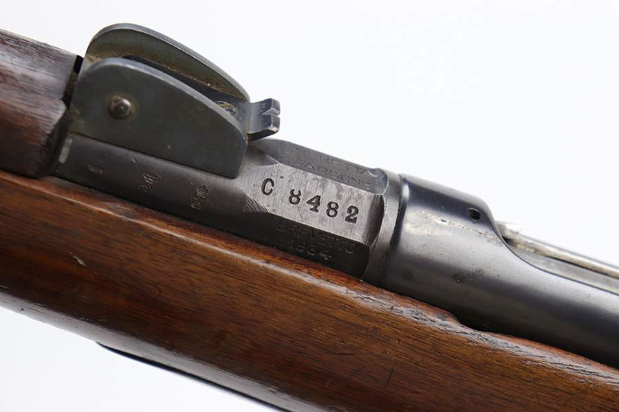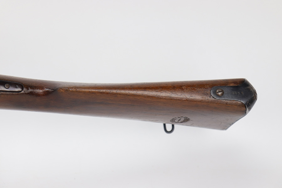 6/15/23 – This is a Beretta Model 1934 Training Carbine, manufactured in 1939 and chambered in .22 LR. All matching with the proper Italian proofs throughout. The metal parts have retained about 95% of their original bluing. Most of the actual finish loss is on the butt plate, where there is spotty oxidation. Beyond that, most of the wear is light spotty discoloration throughout and some handling marks here and there. The wood furniture has no major damage but shows obvious signs of wear, mostly scratching. Comes with original cleaning rod. Mint bore.