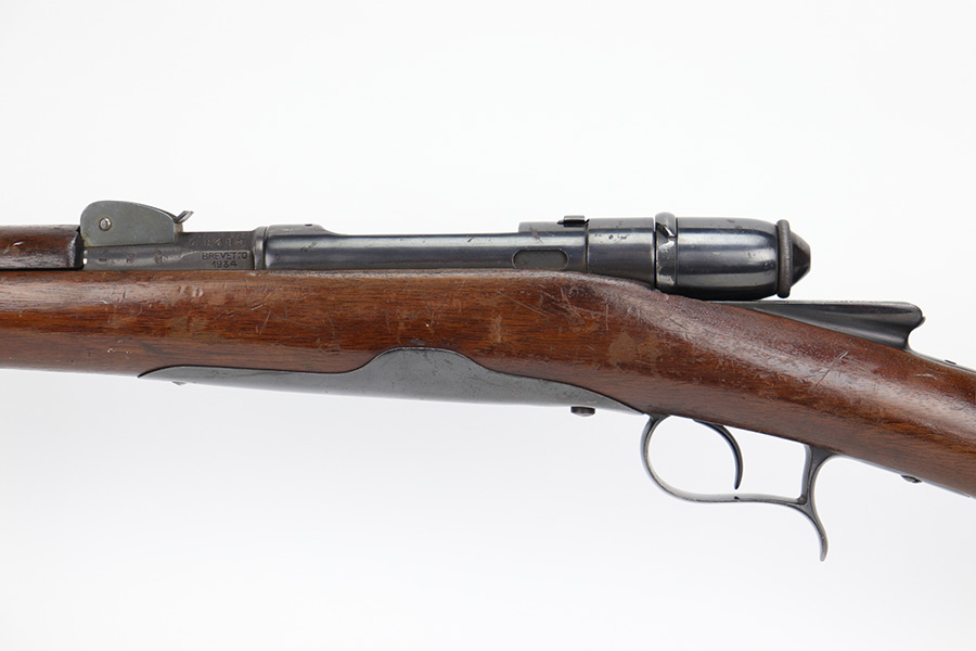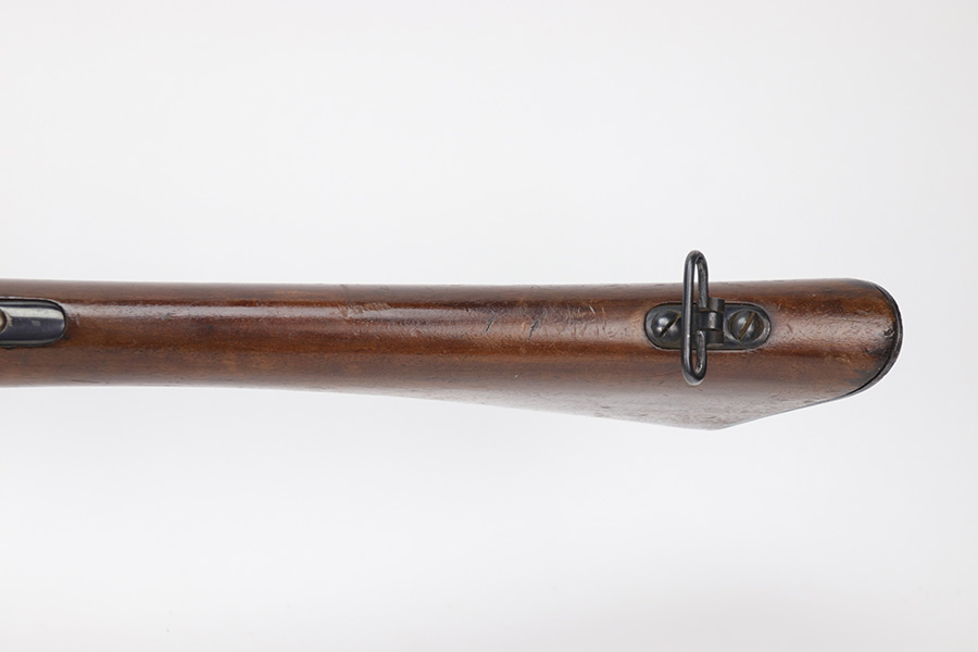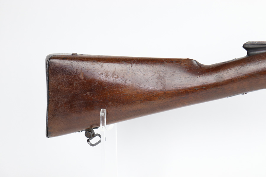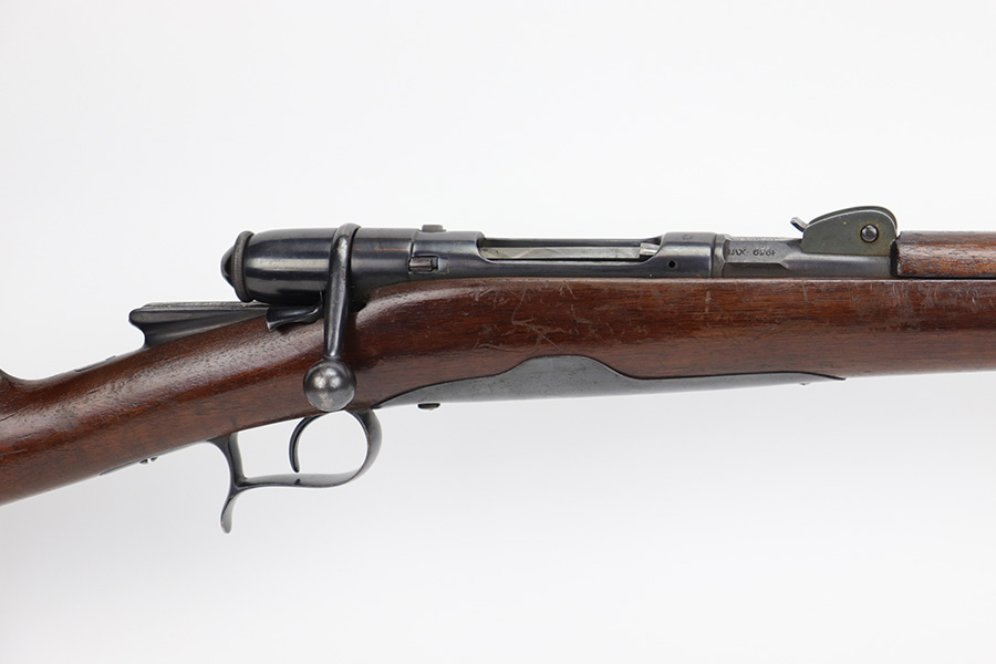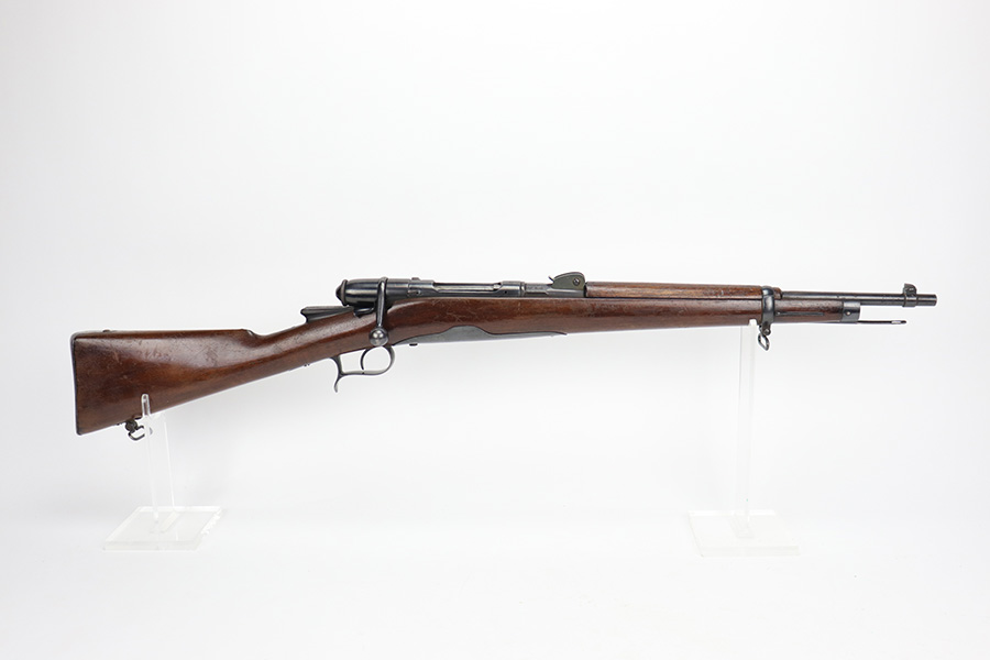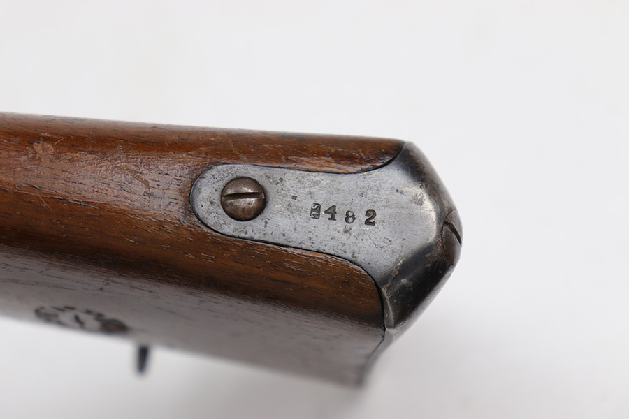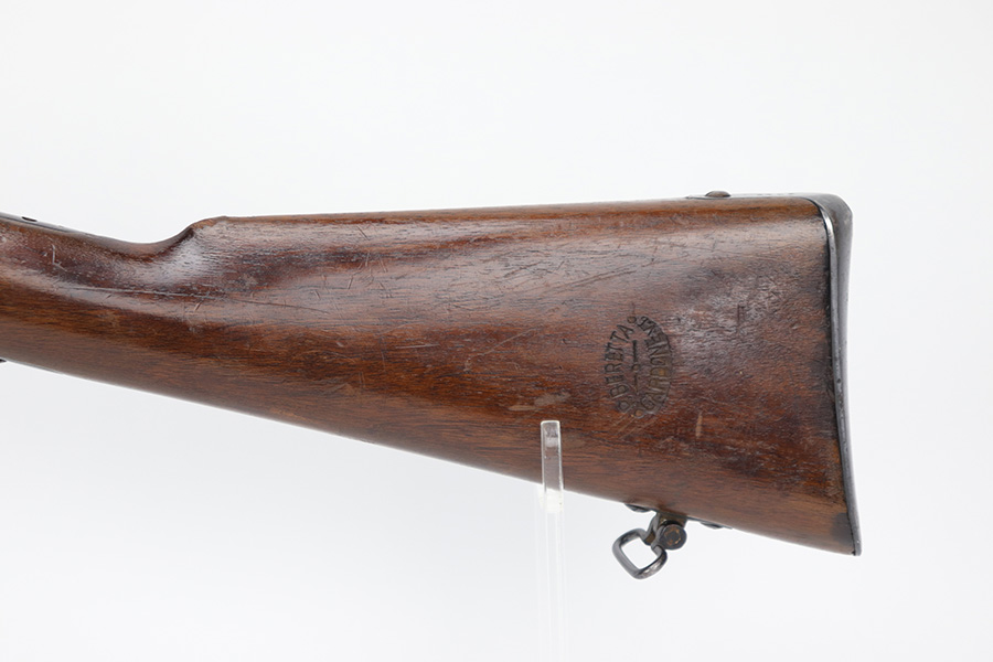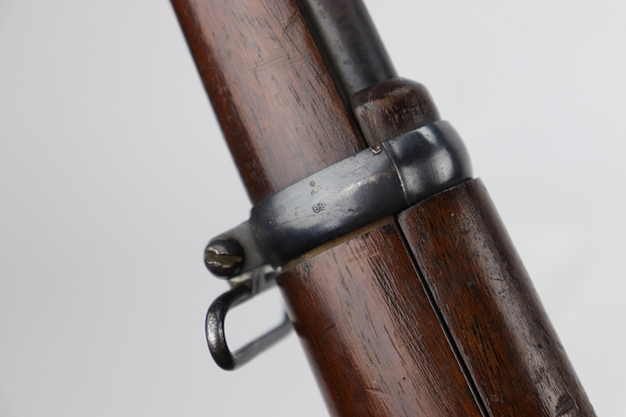 6/15/23 – This is a Beretta Model 1934 Training Carbine, manufactured in 1939 and chambered in .22 LR. All matching with the proper Italian proofs throughout. The metal parts have retained about 95% of their original bluing. Most of the actual finish loss is on the butt plate, where there is spotty oxidation. Beyond that, most of the wear is light spotty discoloration throughout and some handling marks here and there. The wood furniture has no major damage but shows obvious signs of wear, mostly scratching. Comes with original cleaning rod. Mint bore.