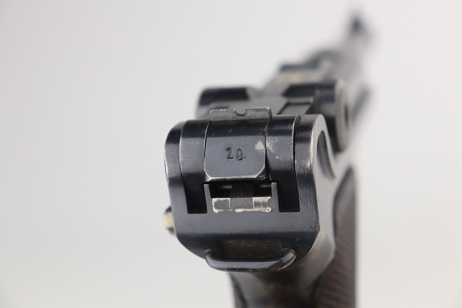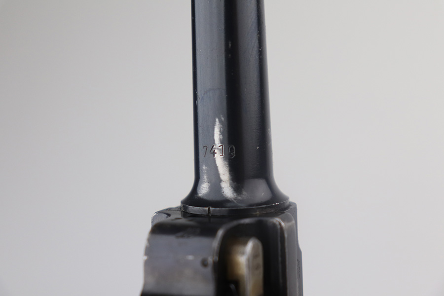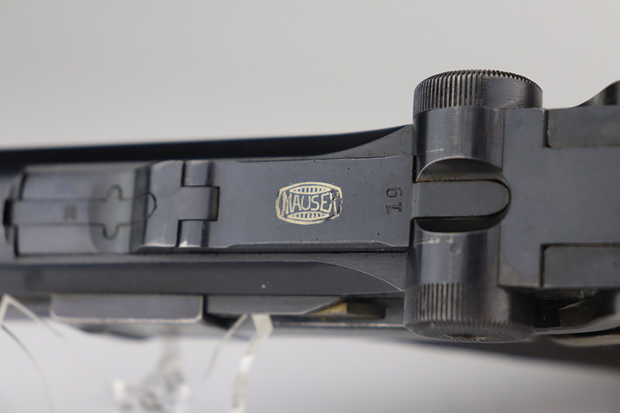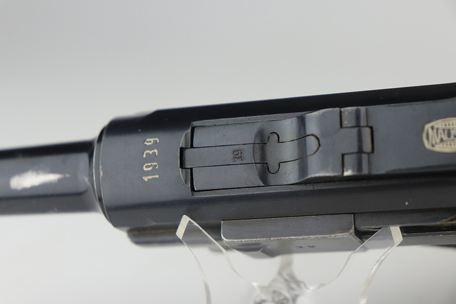 12/6/21 – This is a nice example of a 1939 Mauser Luger sold in the commercial market in 1939. The gun is all matching, has the Mauser banner logo on the toggle, and has a commercial “Crown U” proof. The gun comes with one original matching magazine. It has retained roughly 85% of its original finish. There is spotty wear and oxidation on the straps. Minor wear on the side plate, around the muzzle, and side rails. Spotty wear on the barrel. Comes with nice un-numbered grips. The bore is shiny with strong rifling with minor freckling throughout.