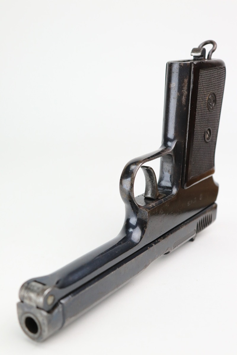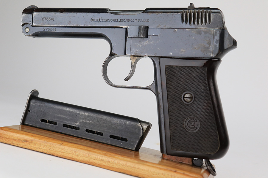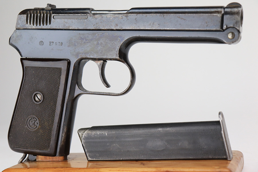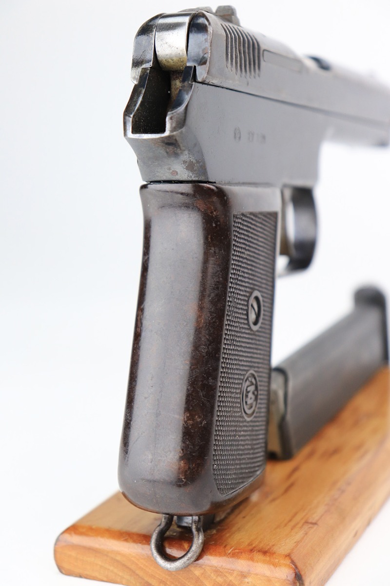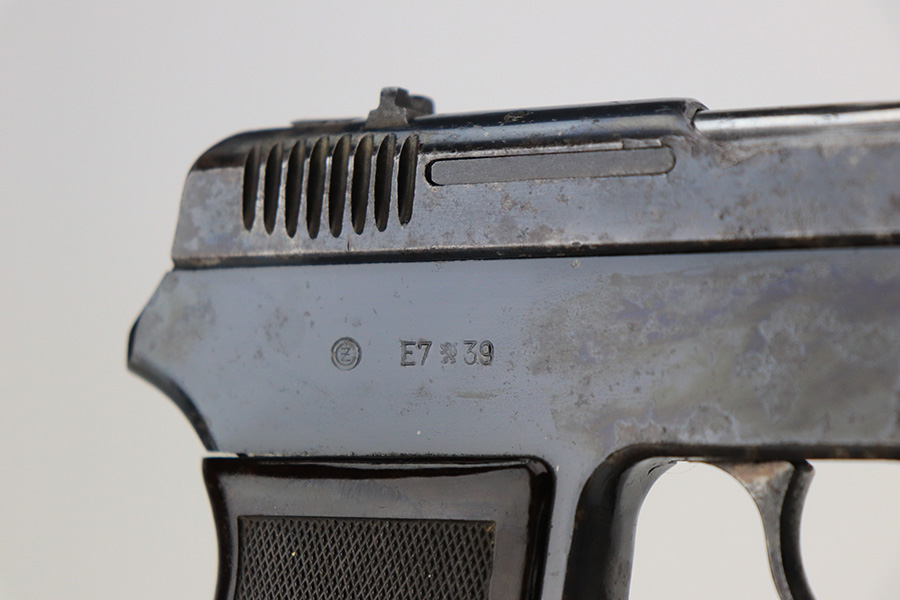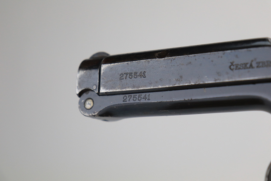 5/2/22 – This is a nice example of a CZ Model 38 issued to the Czech military in 1939. The gun is all matching and has the proper Czech lion proofs throughout. It has retained about 90% of its original high polish finish. While there isn’t a ton of actual finish loss, there is noticeable spotty oxidation and splotchy discoloration throughout. Comes with an excellent period-correct bakelite grip (no cracks or chips) and a magazine that is marked “SA” on the bottom, indicating it ended up in Finland at some point. The bore has decent rifling with tiny pits throughout.