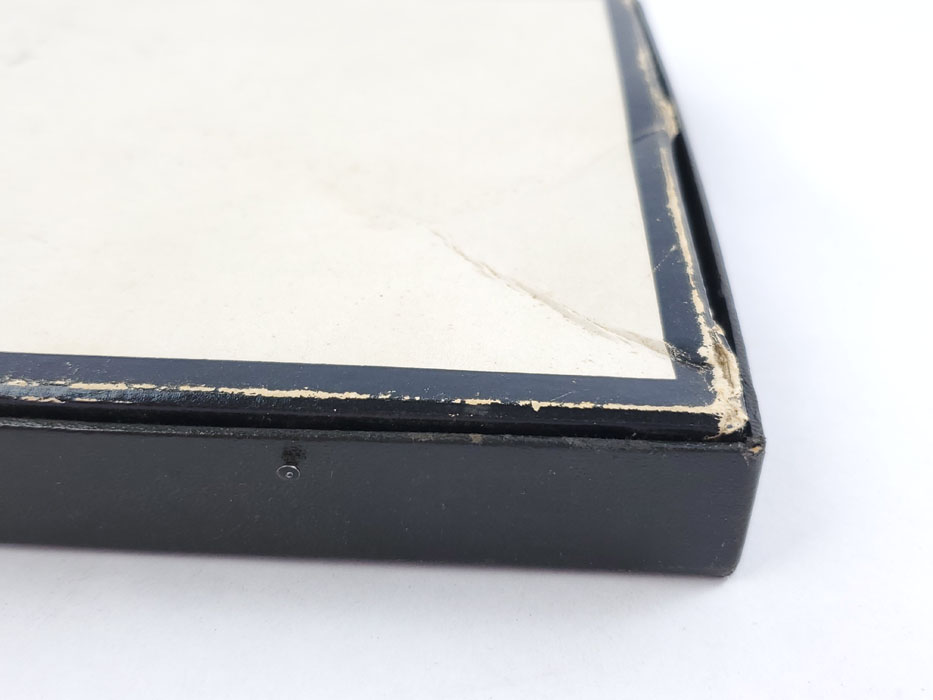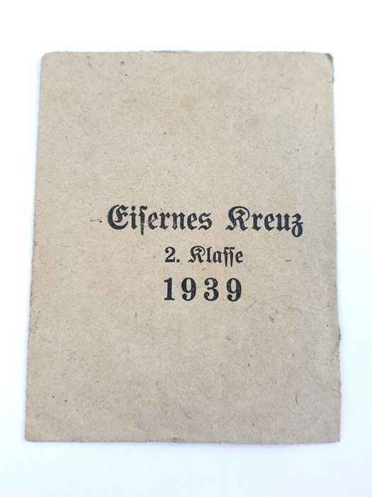 5/13/20 – This is an original 1939 Iron Cross 2nd Class with the original ribbon, lapel button, and envelope. They all come in a glass topped presentation box. The items must have been in this presentation box for a while because they leave an imprint in the cushioning underneath. The medal is in great condition with a little bit of patina around the edges of the cross. The ribbon is in minty condition as is the envelope. The box has an indent / weak point in one corner. See photos.