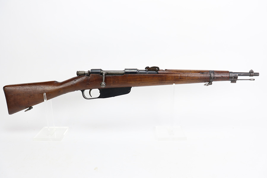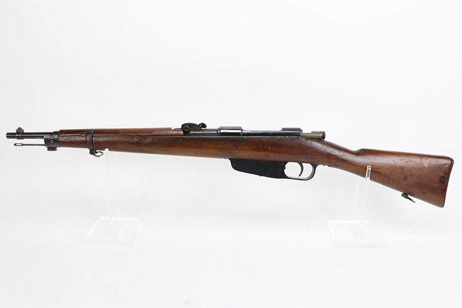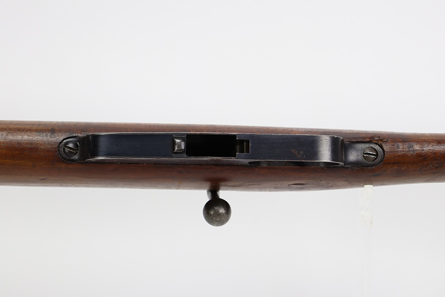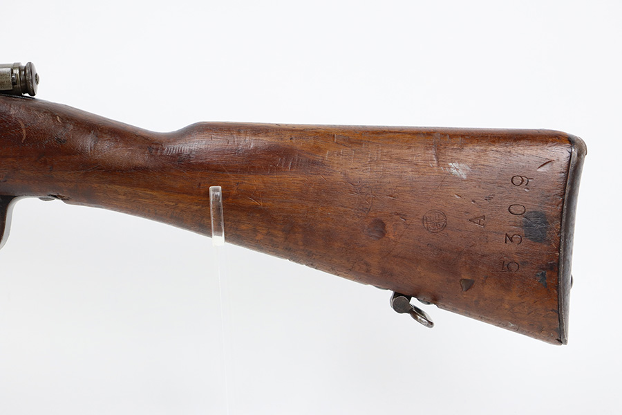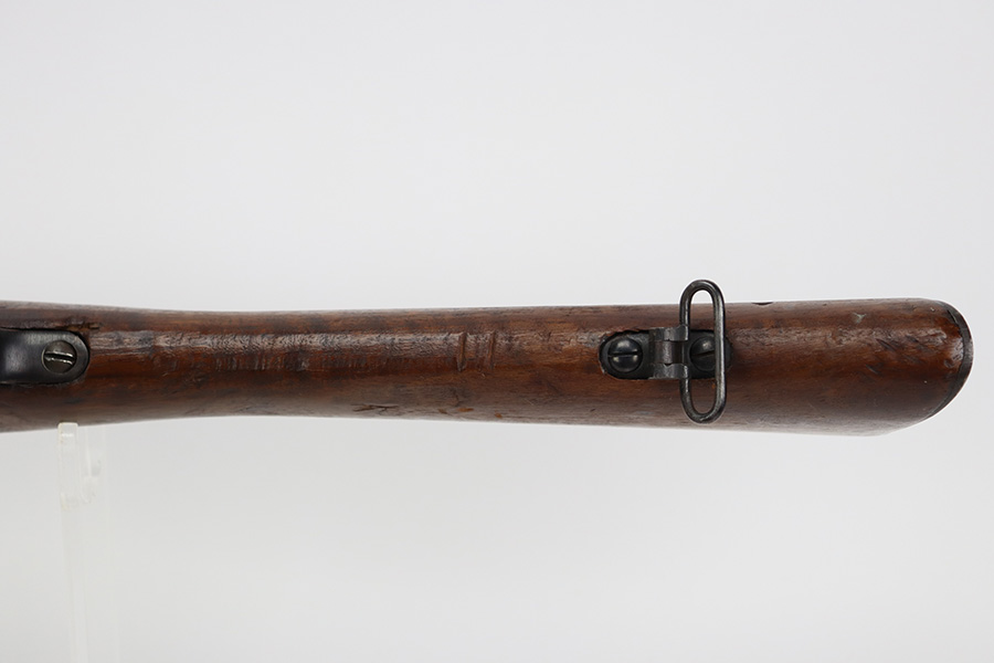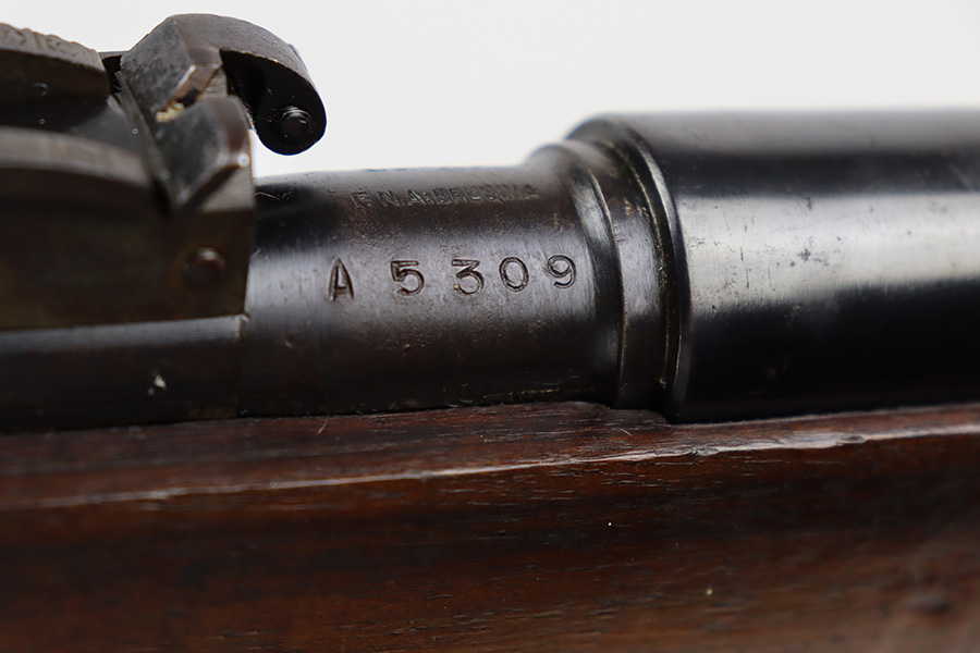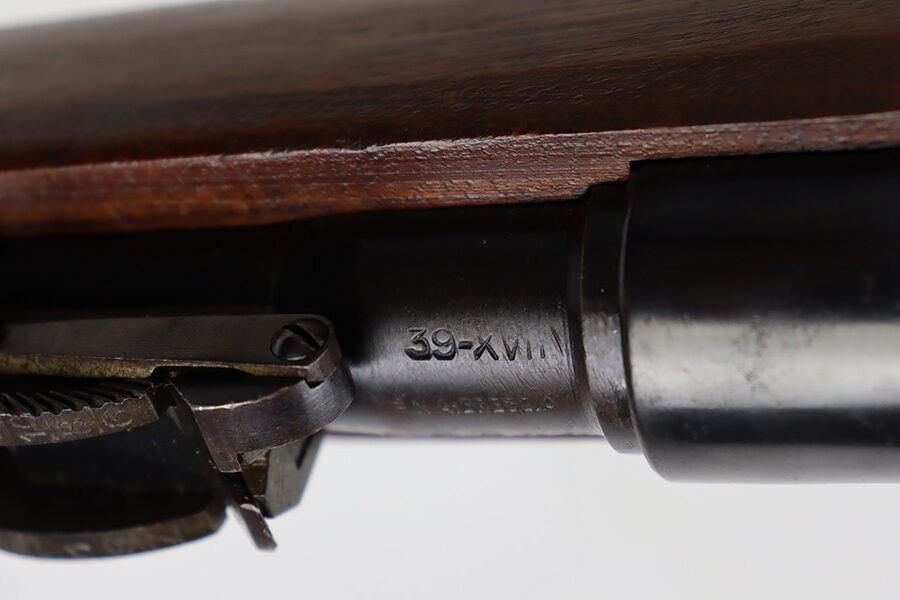 8/25/23 – This is a nice example of a Carcano Carbine, issued to the Italian military in 1939. Only numbered parts are the receiver and stock, which are matching. The metal parts have retained about 95% of their finish. There are some light scratches here and there and some spotty wear around the muzzle and front barrel band. The top of the receiver appears to be buffed and refinished. Some light surface rust on the sling swivel. The wood furniture shows minor dings and scratches throughout. Excellent, shiny bore with great rifling.