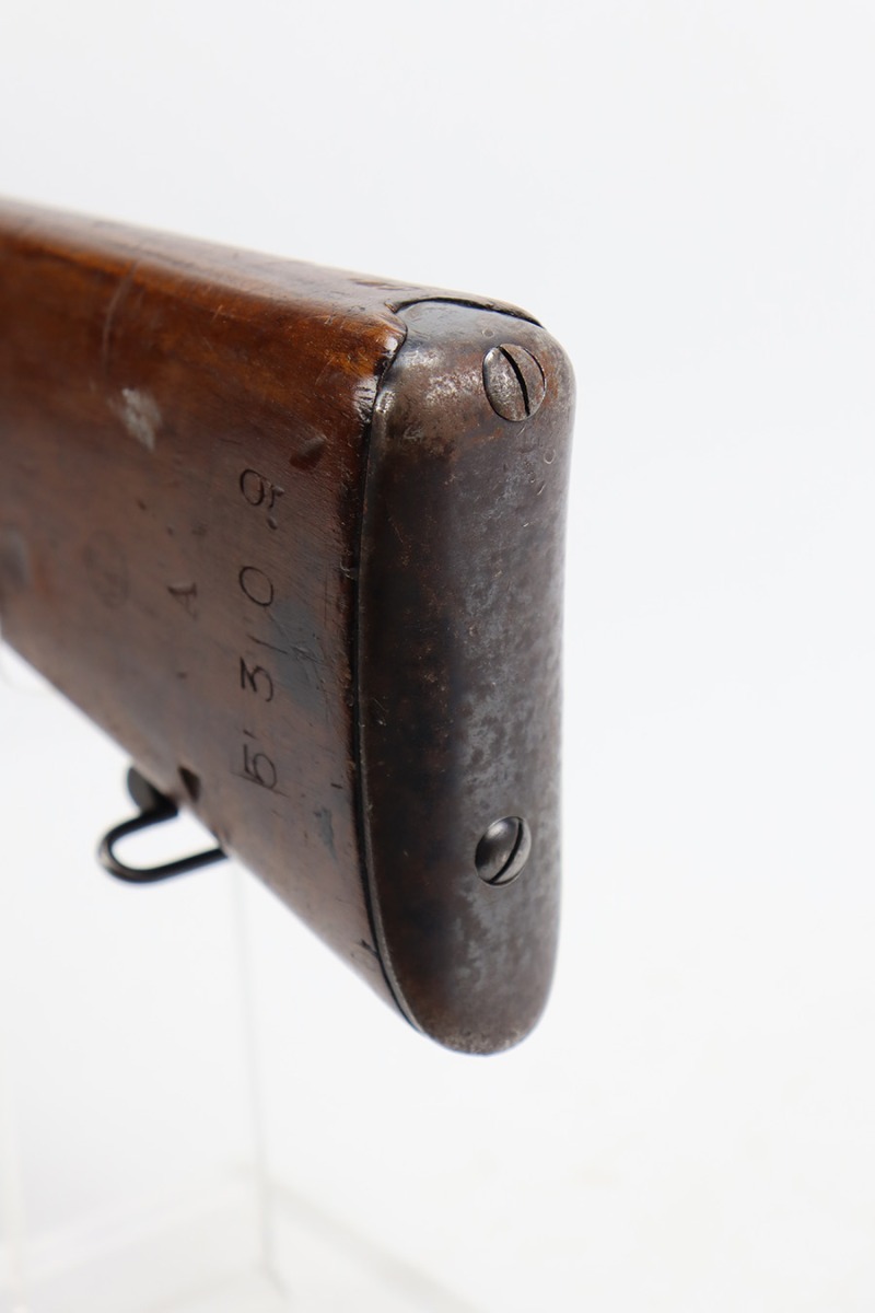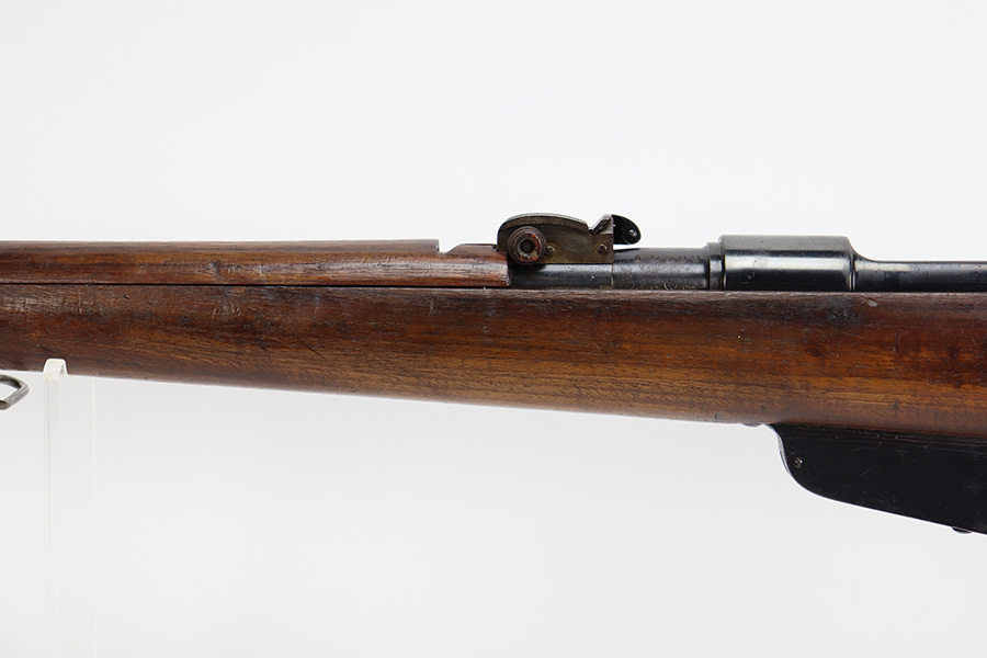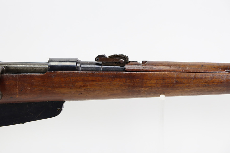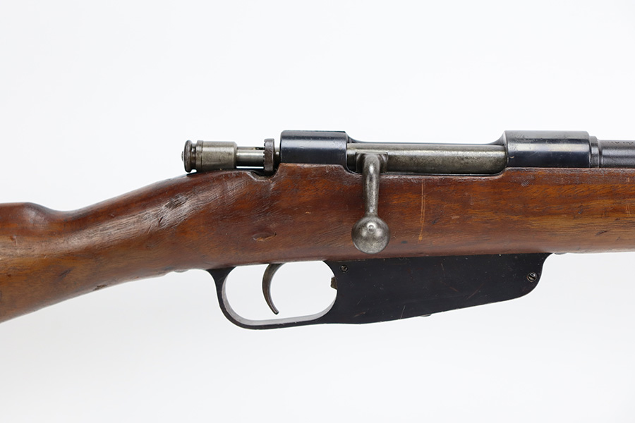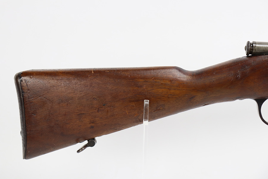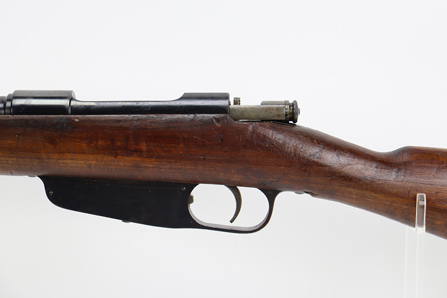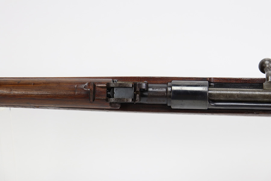 8/25/23 – This is a nice example of a Carcano Carbine, issued to the Italian military in 1939. Only numbered parts are the receiver and stock, which are matching. The metal parts have retained about 95% of their finish. There are some light scratches here and there and some spotty wear around the muzzle and front barrel band. The top of the receiver appears to be buffed and refinished. Some light surface rust on the sling swivel. The wood furniture shows minor dings and scratches throughout. Excellent, shiny bore with great rifling.