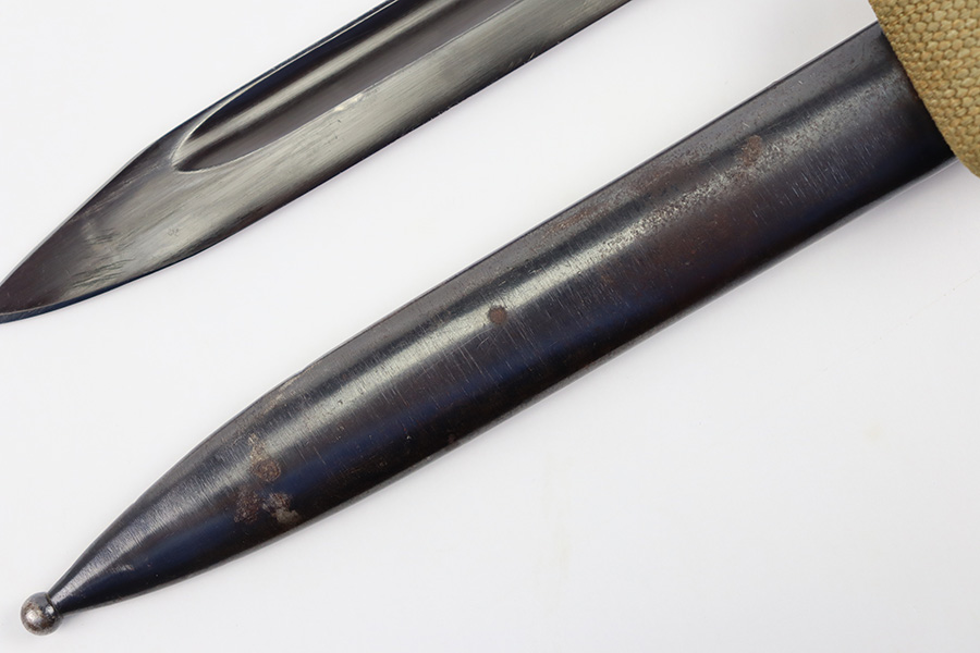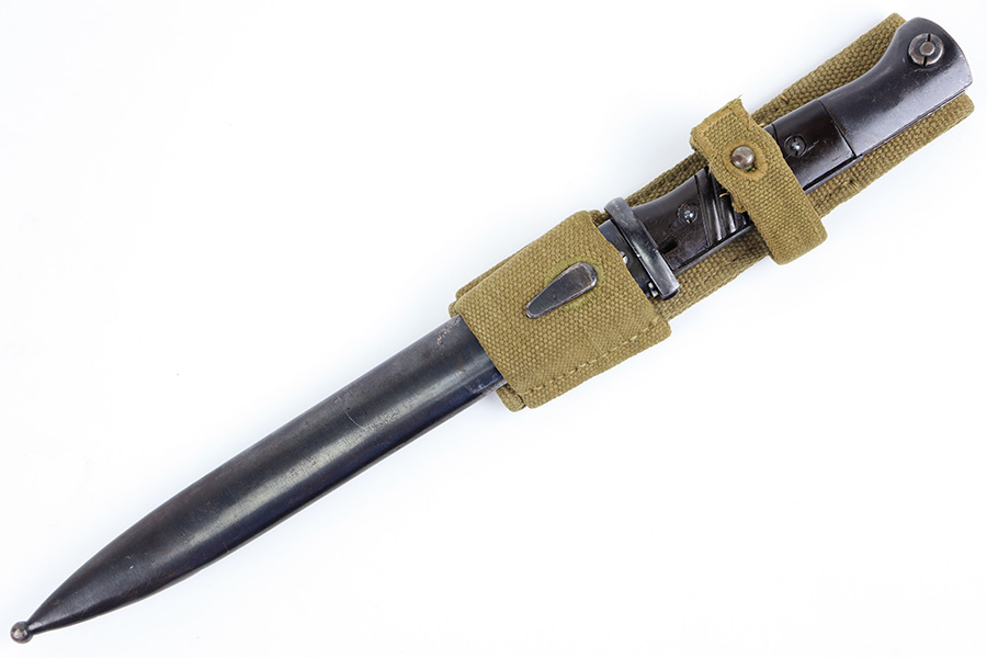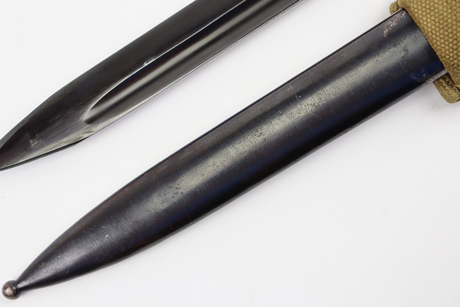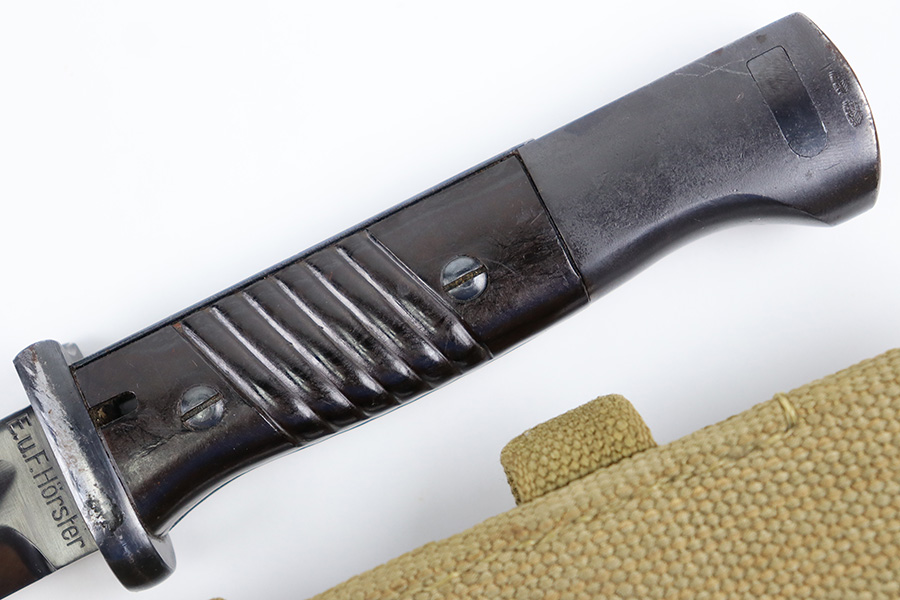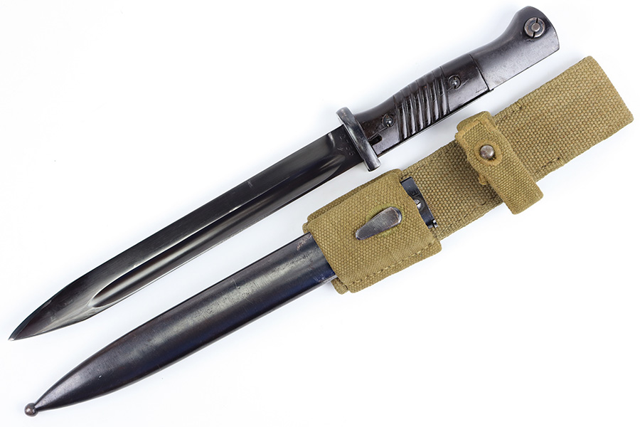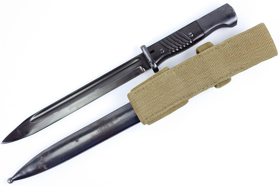 SOLD – 1939 K98 Bayonet with Canvas Frog, Unknown Scabbard