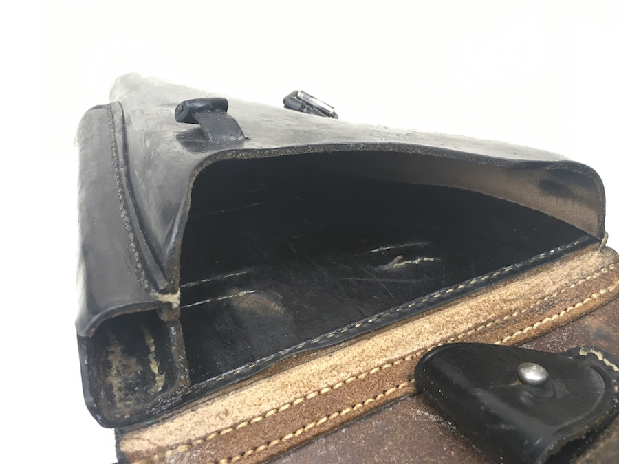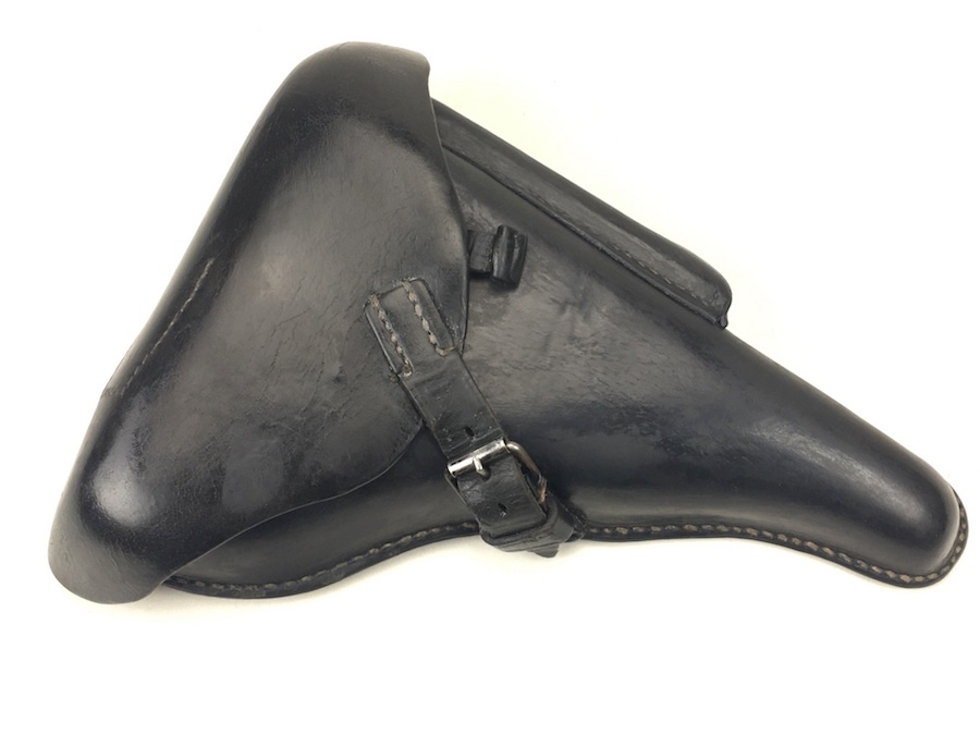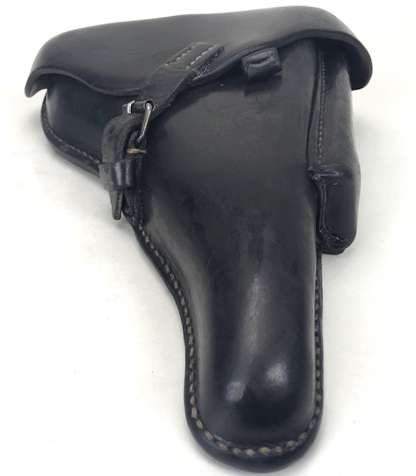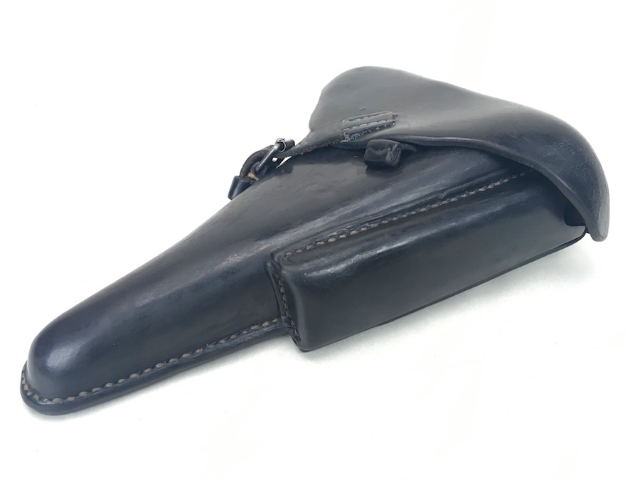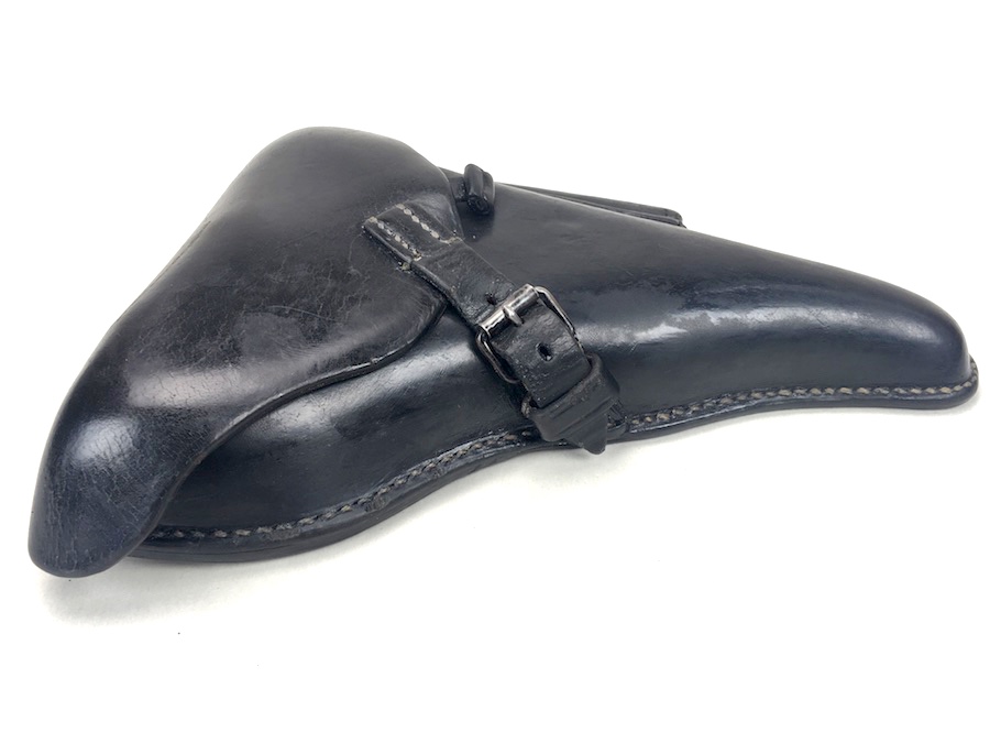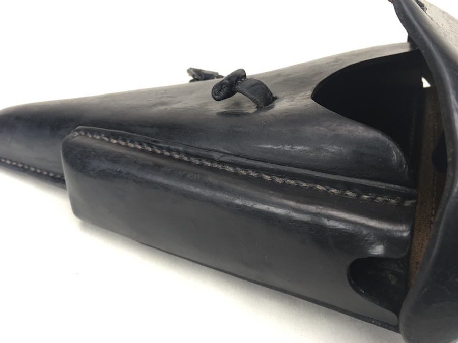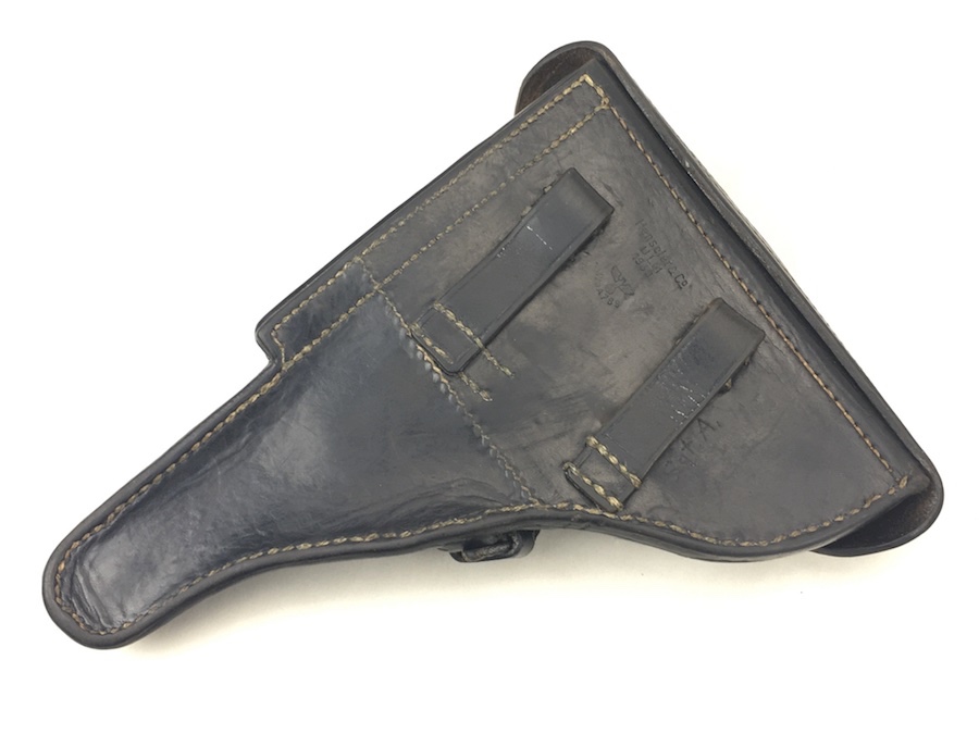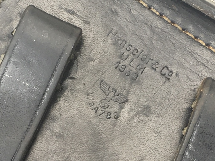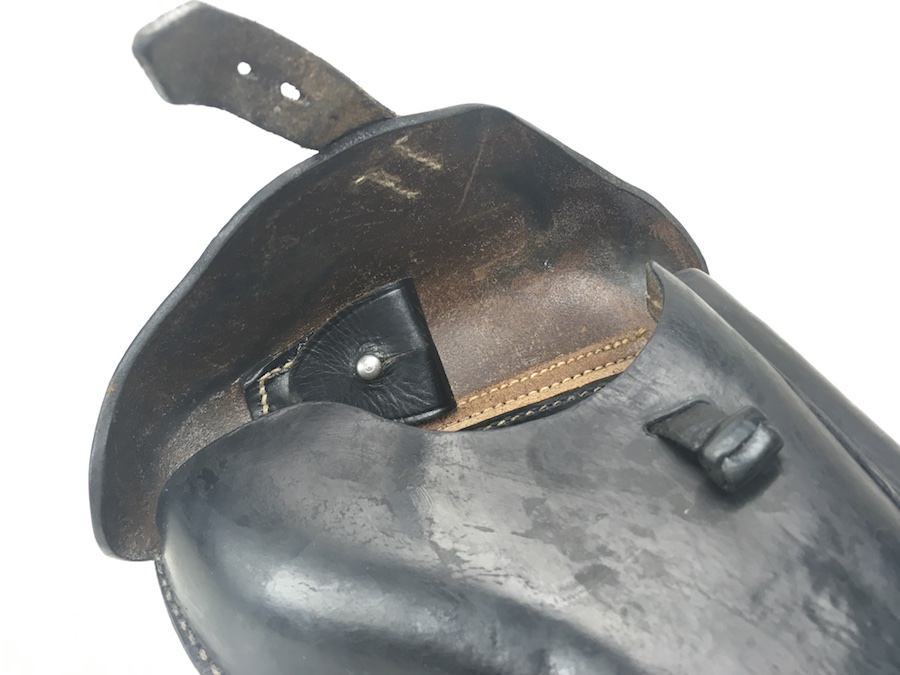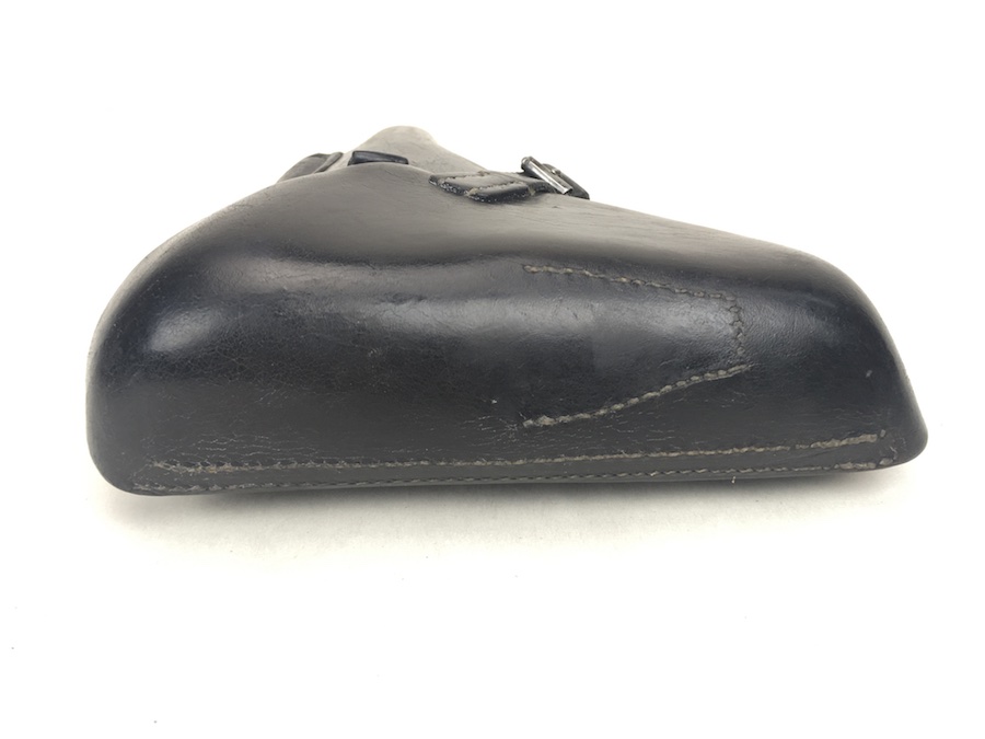 11/6/19 – This is an original 1939 dated Luger holster from WW2. The back of the holster is maker stamped “HENSELER & CO” with a waffen WaA789 military proof and 1939 date stamp. The leather is lightly worn and shows signs of use. The leather is still firm and pliable with minor surface scuffs. The main leather is lightly wrinkled with normal wear. The stitching is all tight and original with. Clean interior with secure lift strap. A very nice holster with a little character. Guaranteed original.