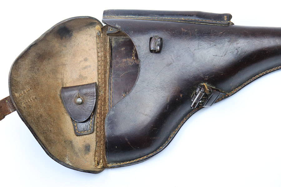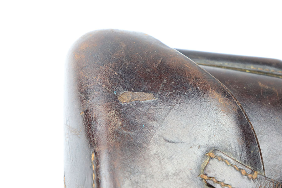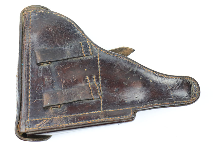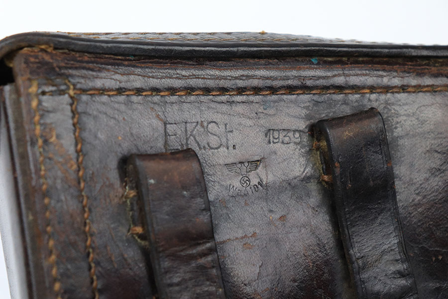 6/18/21 – This is an original 1939 Luger holster from WW2. The holster is in great overall condition with a fairly unusual maker stamp “E.K.St.” and 1939 date. Also waffen proof stamped on the back leather. All original stitching intact. No major leather issues outside of typical signs of use and aging.