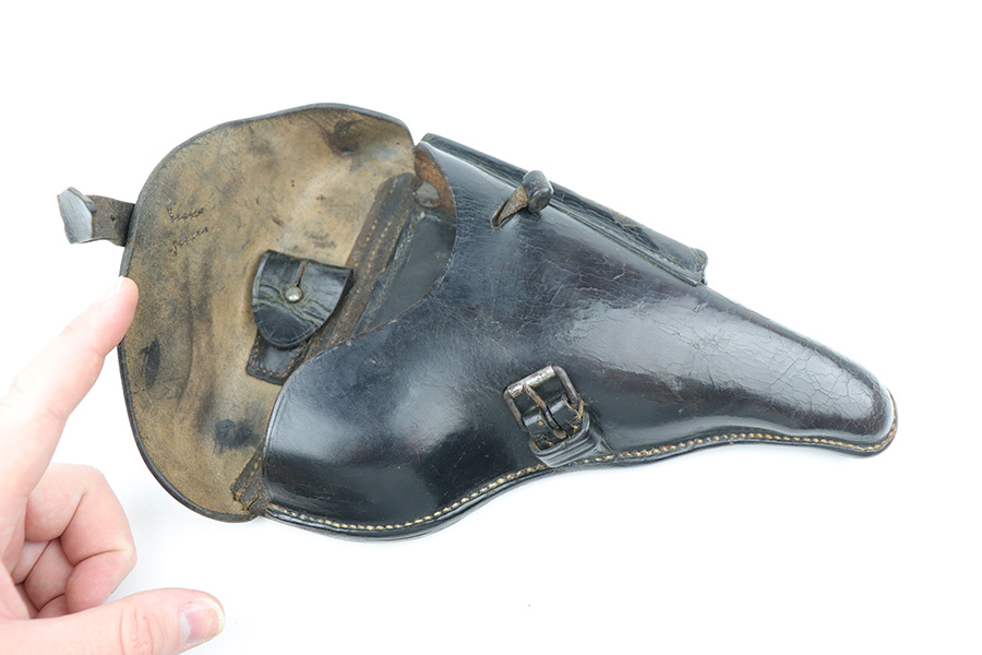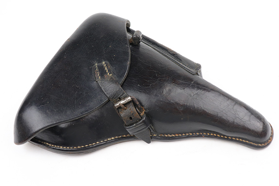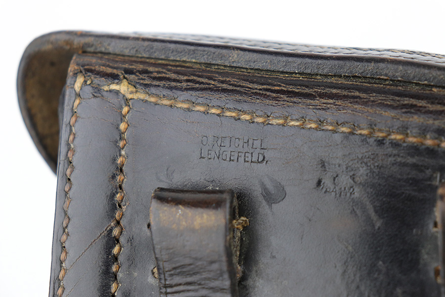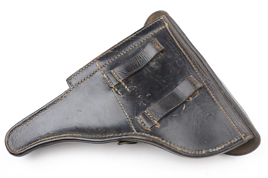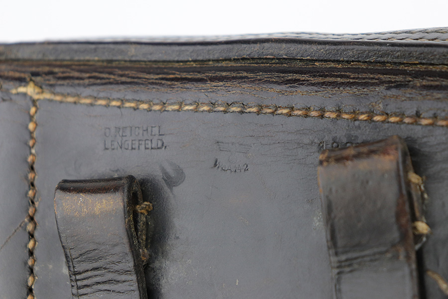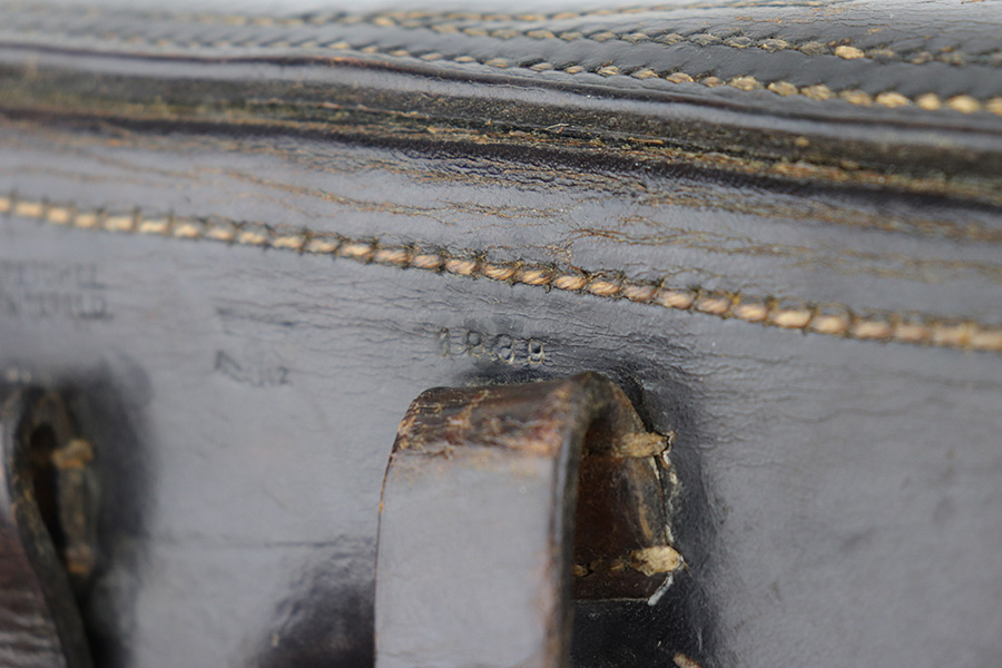 8/30/21 – This is a very nice 1939 dated Luger holster from WW2. The holster is maker stamped, waffen proofed, and dated on the back leather. The leather is in great overall condition with some mild surface cracking on the front leather, but this doesn’t go deep into the leather. The interior leather is fairly clean. No stitching issues.