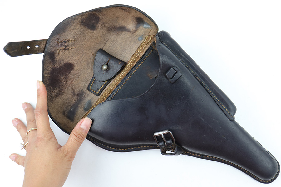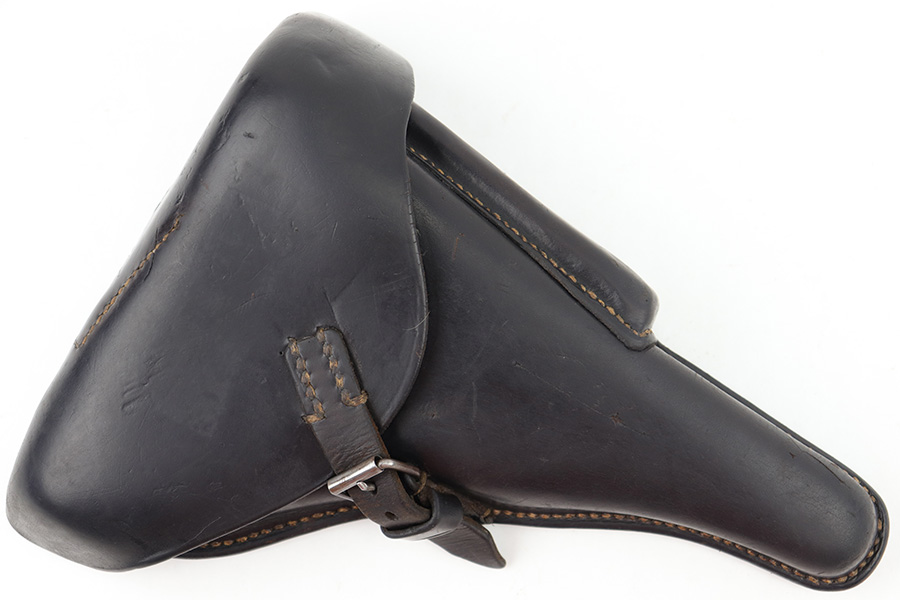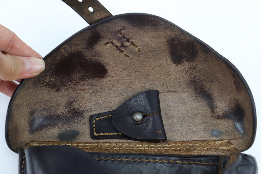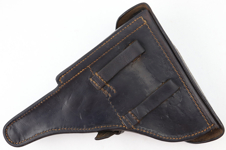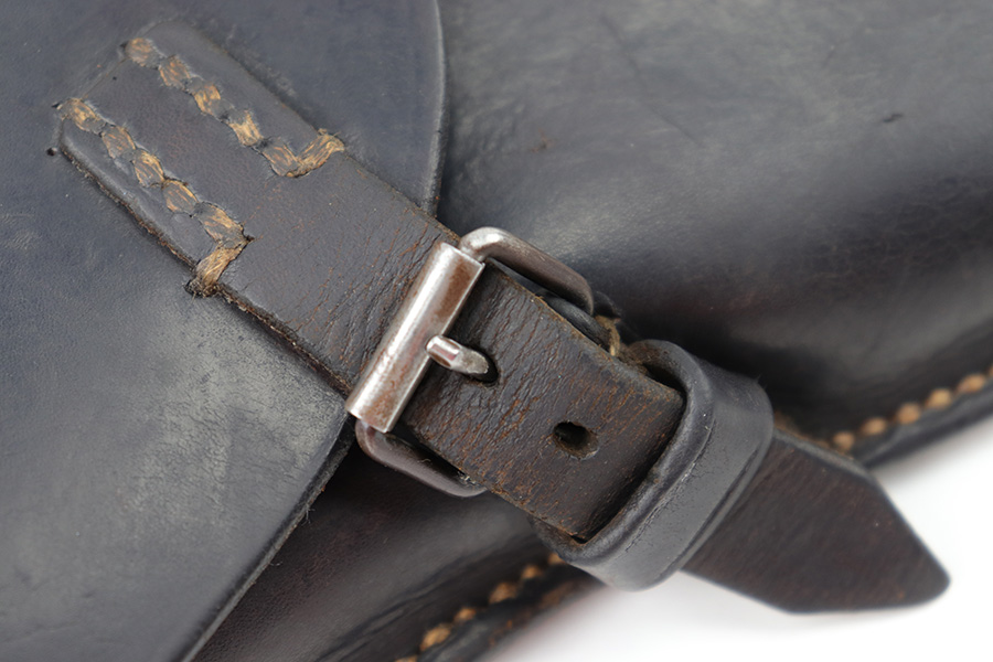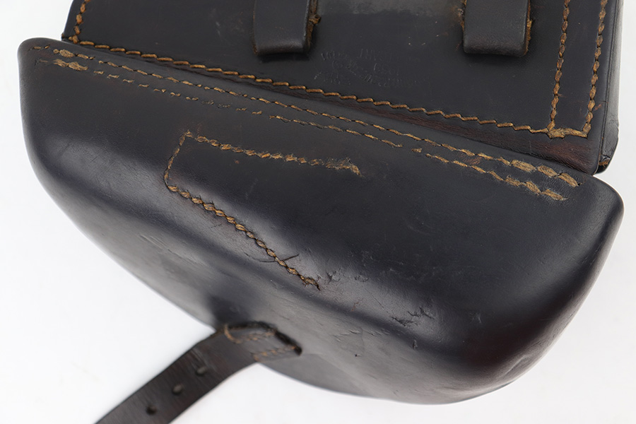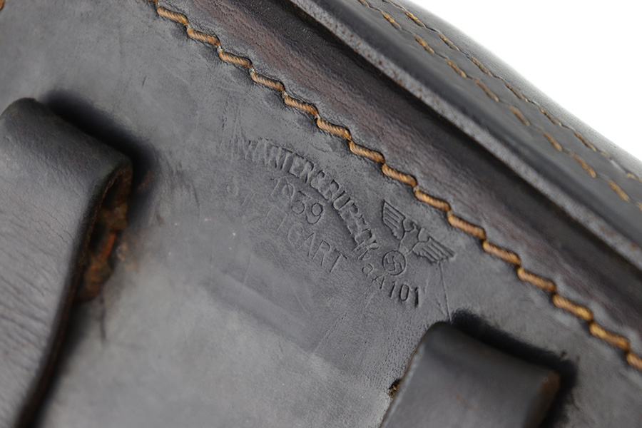 7/24/23 – This is an original 1939 dated Luger holster from WW2. The holster is maker stamped, date stamped, and waffen eagle military proof stamped on the back leather. The leather is in great overall condition with normal pliability and typical signs of use and aging throughout. No major issues. The stitching is all original with no major flaws. A very nice straightforward example.