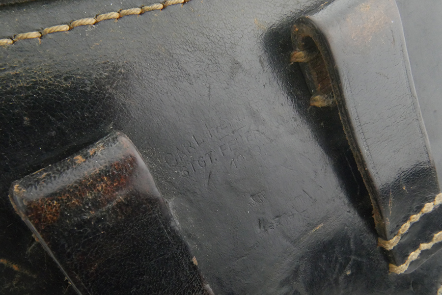 6/6/24 – This is a very nice 1939-dated Luger holster made by Carl Hepting. The holster is dated, maker marked, and has a waffen proof, but the markings are a bit faint (still visible). It generally has soft, pliable leather with no stitching issues.