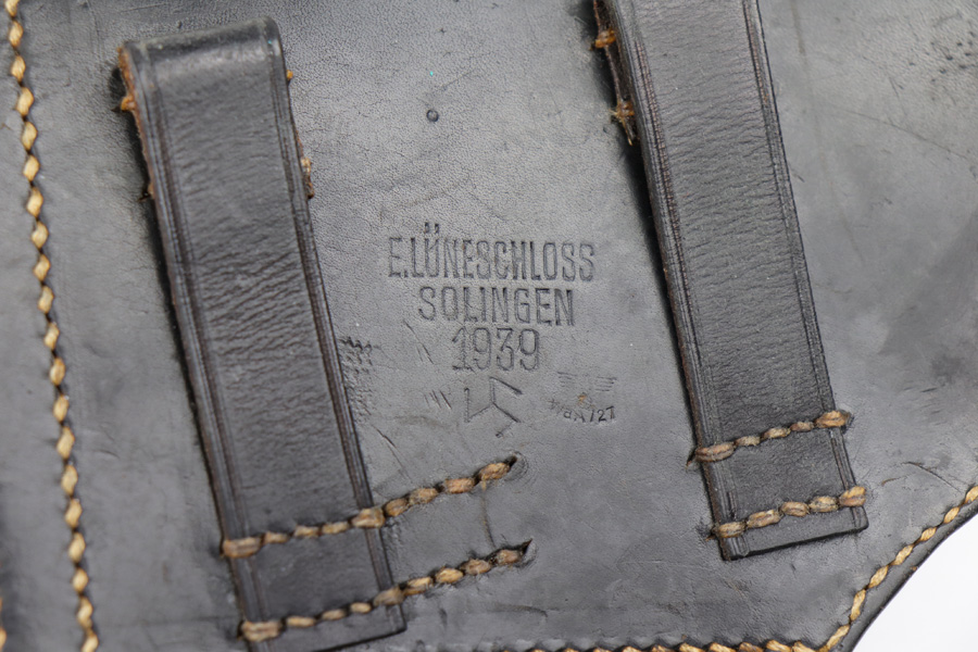 7/18/19 – This is an excellent all original 1939 luger holster. The holster is maker stamped and dated 1939 on the back leather. Waffen military proof stamped as well WaA727. All original stitching in tact, and the leather doesn’t have any notable flaws. The only notable flaws are some normal aging and use wear.