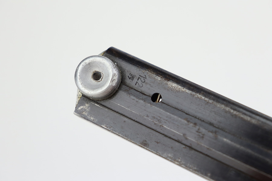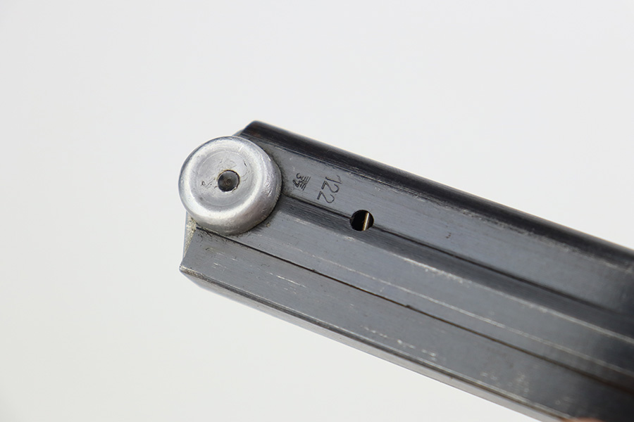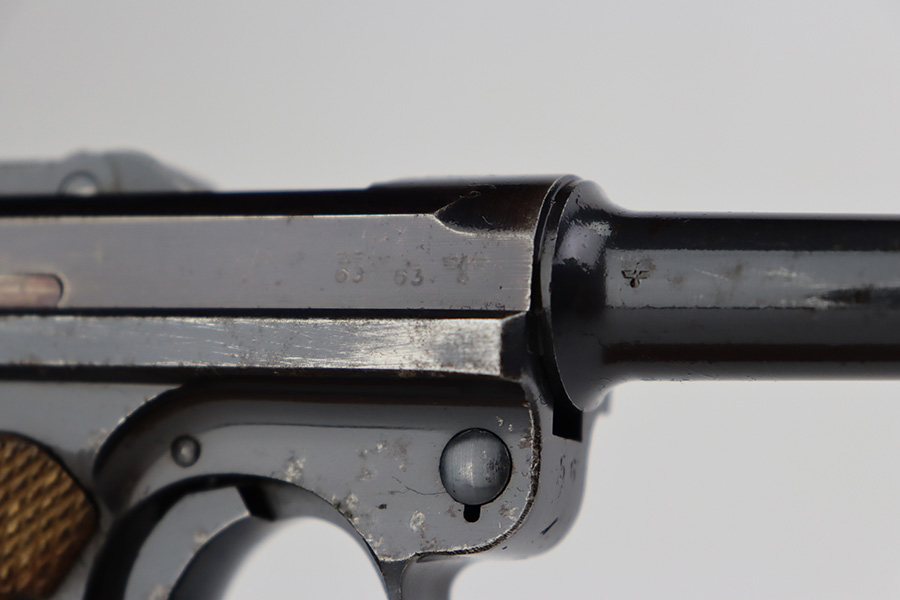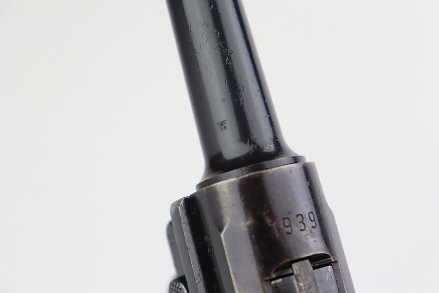 7/13/23 – This is an original Army Mauser Luger rig from 1939 that comes to us directly from the son of the veteran who captured it. The pistol has all matching numbers with 85-90% of the original blue remaining. Some finish loss on the sideplate, muzzle, right side rail and bottom of the straps. Also some pinpricking and oxidation on the sideplate, rail, and back strap. Shiny bore with minor frost. All numbered parts match, but grips and firing pin are unnumbered. Grips are in good condition aside from the common chip under the safety. Listing includes a total of two magazines, both period original but mismatched. Comes with a pebble grain P.38 holster that has the last name of the vet that captured it written inside. The listing is accompanied by some basic documents tied to Gust Balakas, and comes to us from his son. Balakas served in Basic Tng Infantry and as a hoist operator, and the listing includes photocopies of his discharge paperwork, death certificate and obituary.